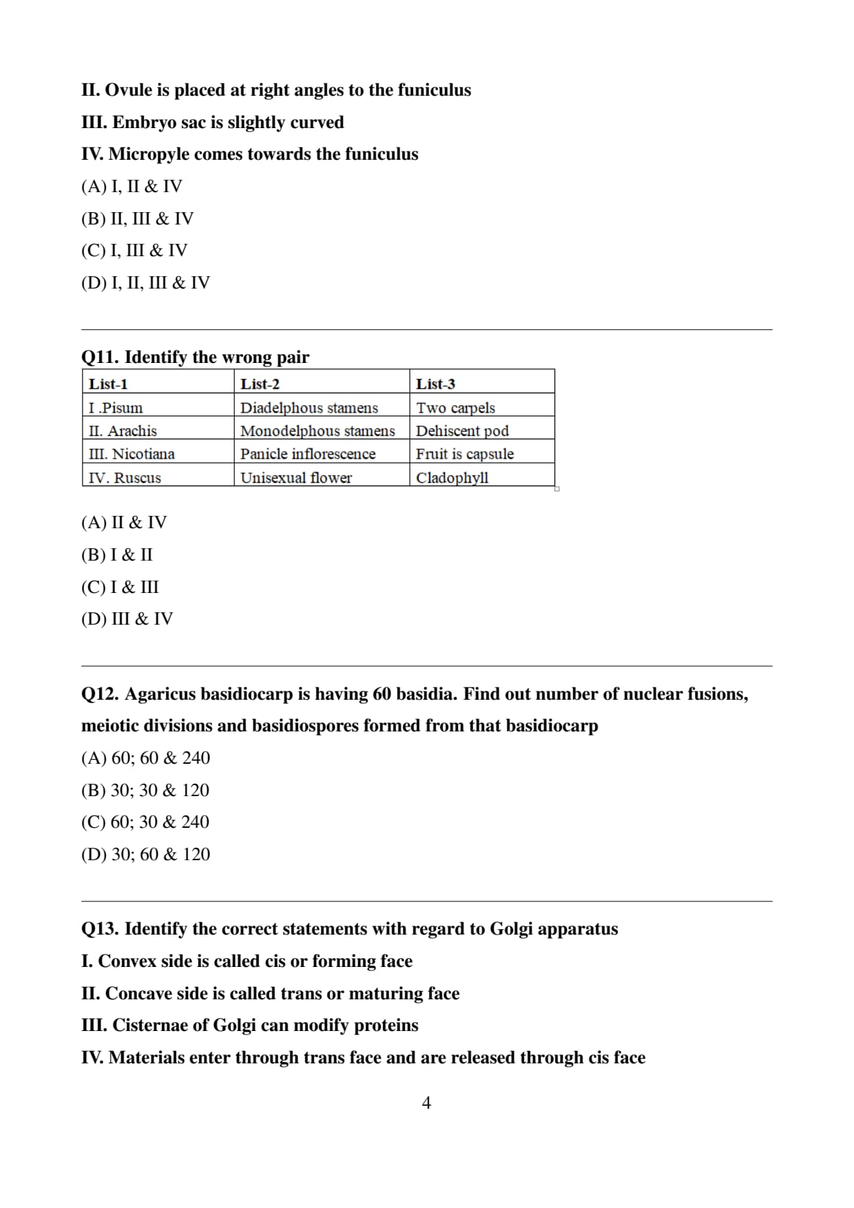 3. The embryo sac may be slightly curved in such ovules (III is accepted as true in many leguminous ovules), and the micropyle often faces or comes towards the funiculus due to the curvature (IV true).