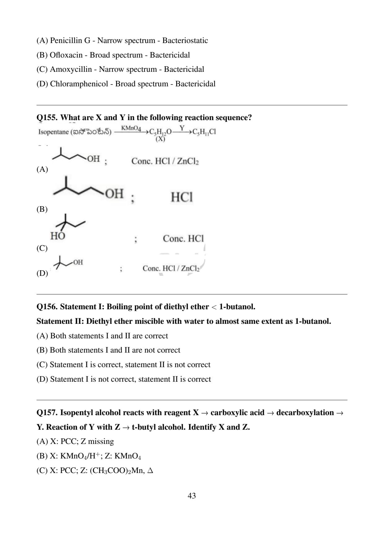 Statement I: Boiling point of diethyl ether \(<\) 1-butanol.
