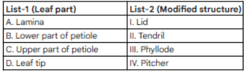 Hence, the correct matching is \(A\!-\!IV,\ B\!-\!III,\ C\!-\!II,\ D\!-\!I\), which corresponds to option (C).