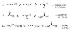1. I: -OH (hydroxyl group) in alcohols has higher boiling point than H\(_2\)O due to stronger hydrogen bonding, correct (e.g., ethanol 78°C vs water 100°C, but context implies alcohols).