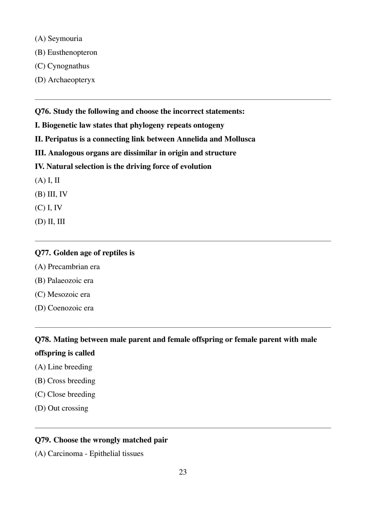 | Zoology | Moderate | Human Physiology, Reproduction, Genetics, Structural Organisation in Animals |