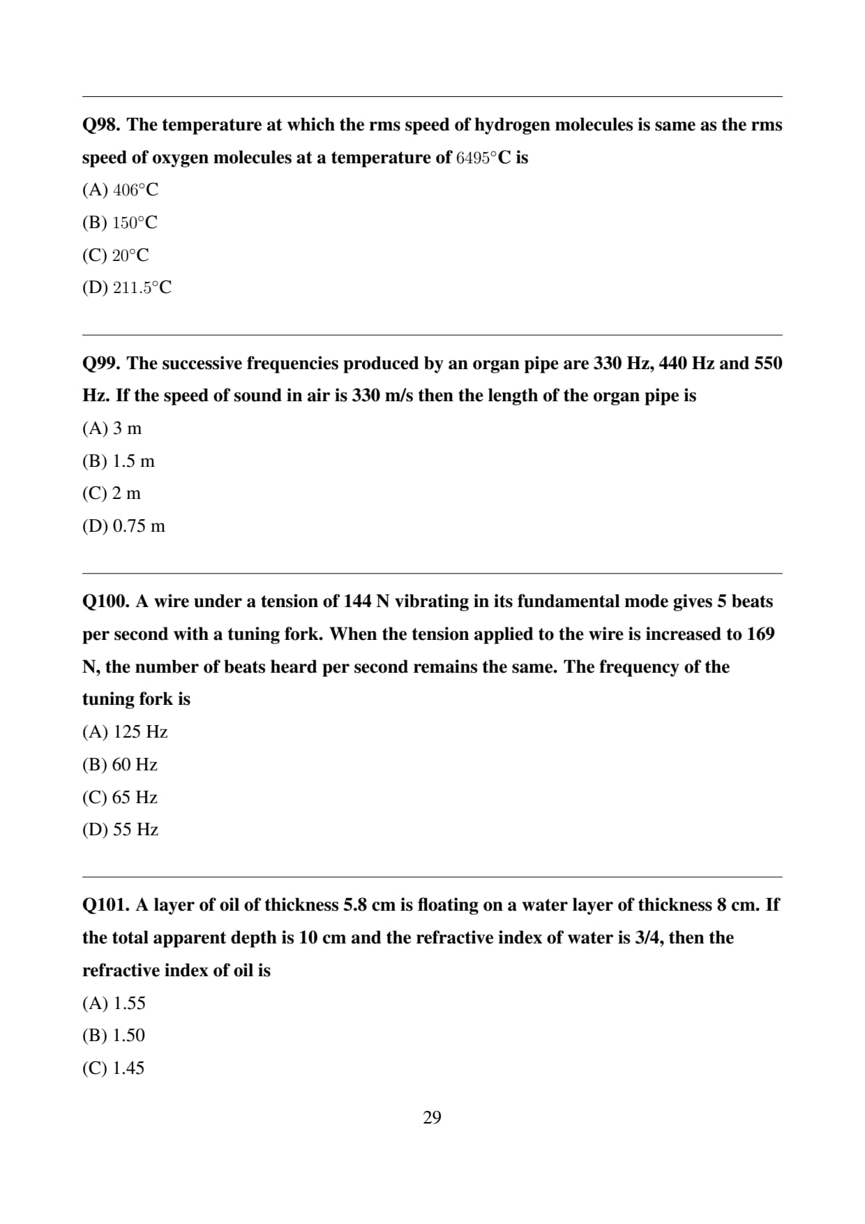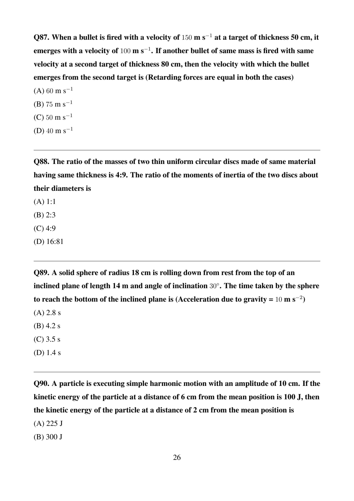 | Physics | Moderate to Tough | Thermodynamics, Work-Energy-Power, Laws of Motion, Oscillations |