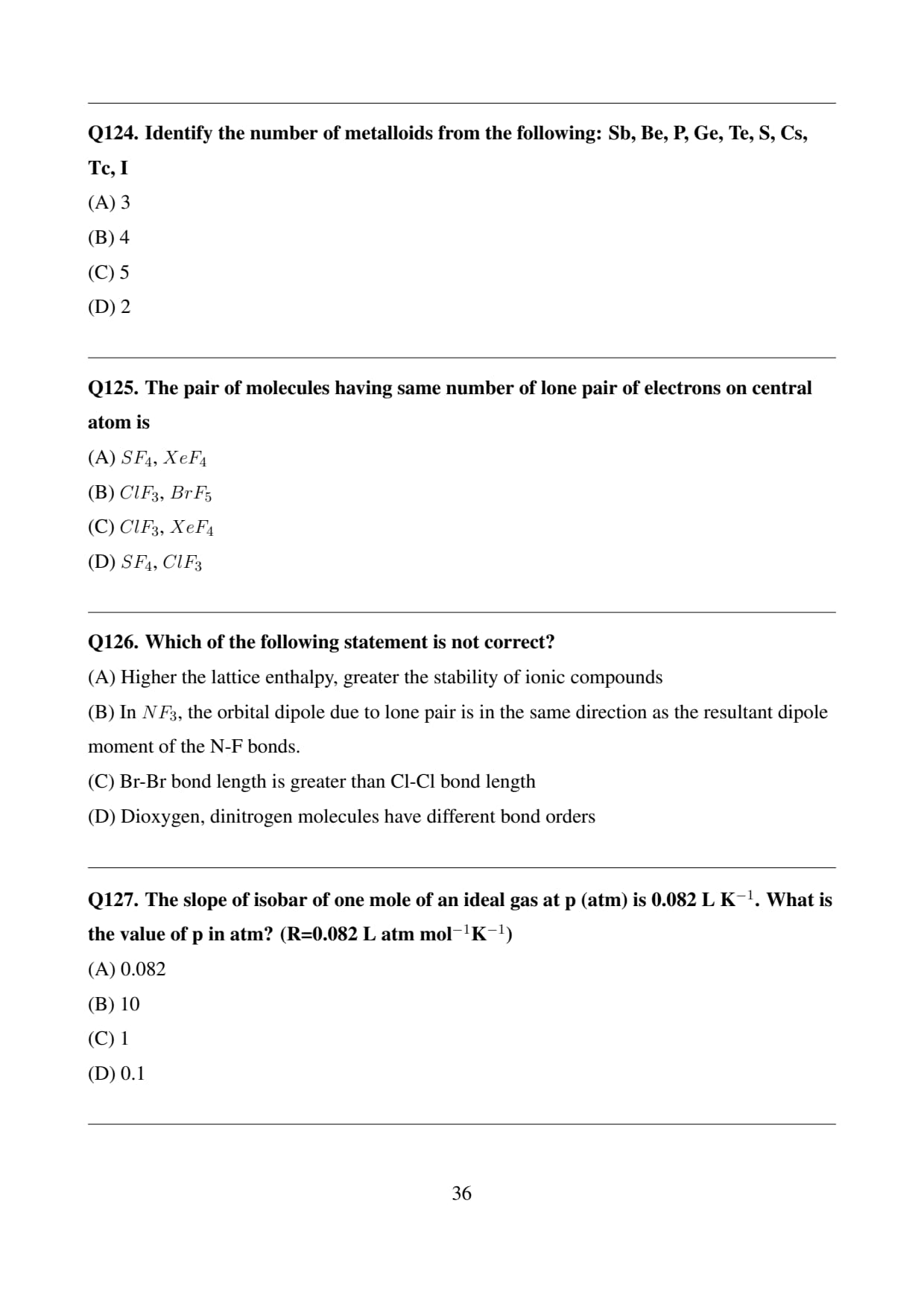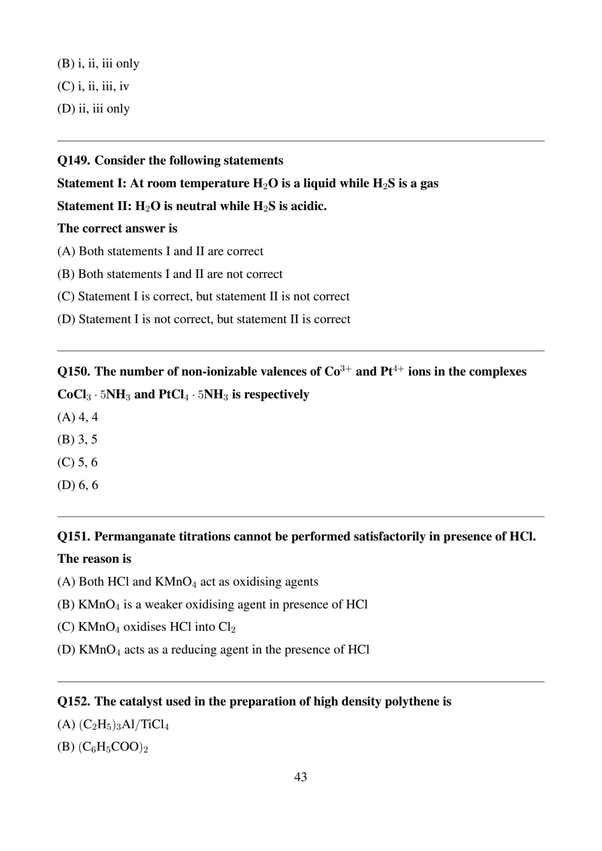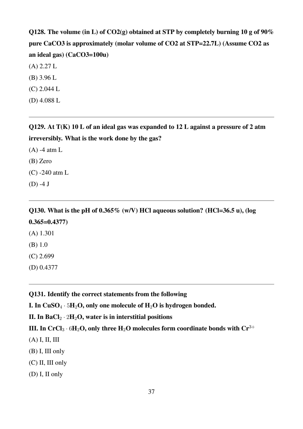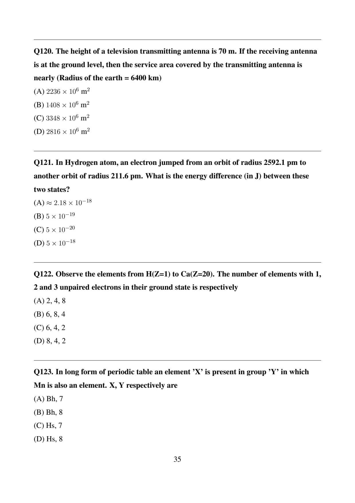 | Chemistry | Easy to Moderate | Atomic Structure, Chemical Bonding, Thermodynamics, Organic Chemistry (Hydrocarbons, Alcohols, Phenols) |