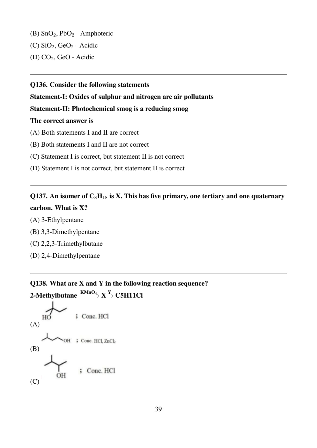 1. Cumene (C\(_6\)H\(_5\)CH(CH\(_3\))\(_2\)) undergoes oxidation with KMnO\(_4\)/KOH/\(\Delta\) to form benzoic acid (C\(_6\)H\(_5\)COOH, X) via cleavage of isopropyl group.