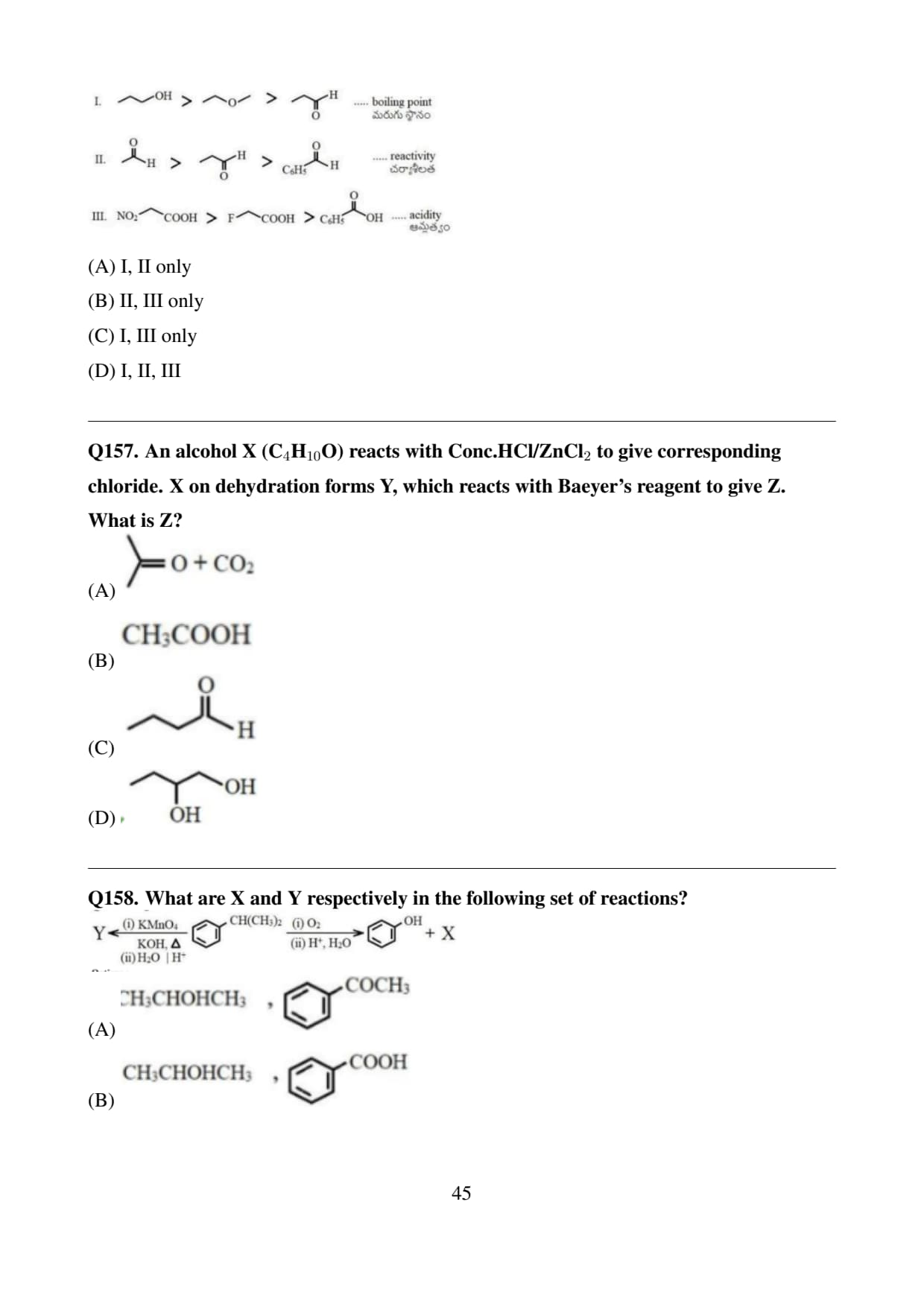 1. X (C\(_4\)H\(_{10}\)O) is an alcohol forming a chloride with HCl/ZnCl\(_2\), suggesting tertiary or secondary alcohol (primary is slow).
