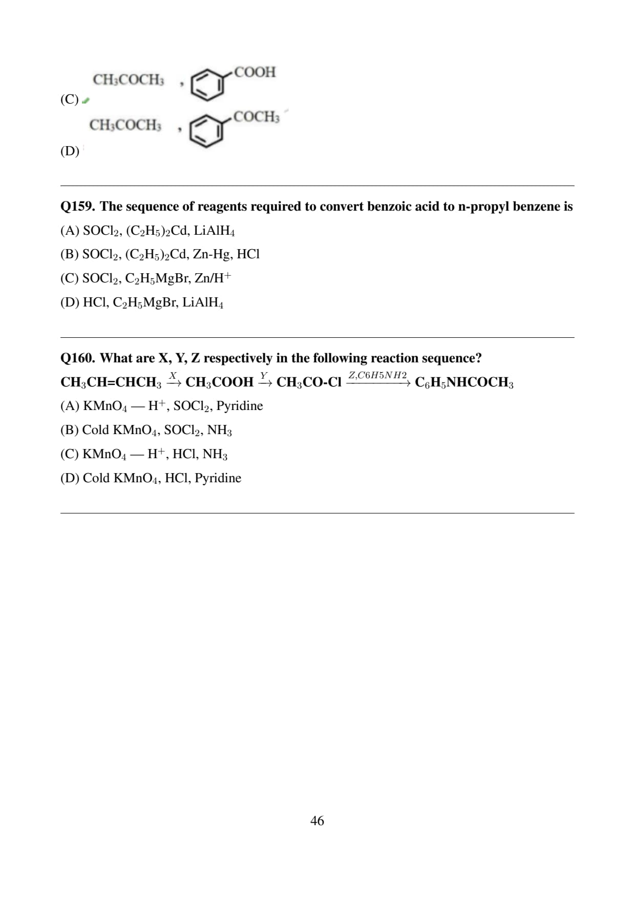 4. Analysis of options: Cold KMnO\(_4\) only forms vicinal diols and does not cleave the double bond to acids. HCl cannot convert carboxylic acids into acid chlorides. NH\(_3\) would lead to acetamide formation instead of acetanilide when reacting with acetyl chloride.