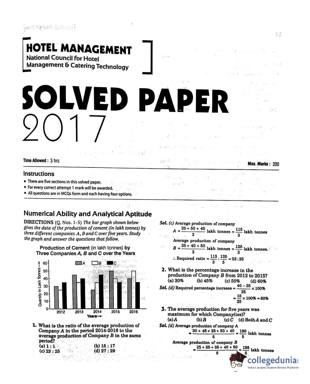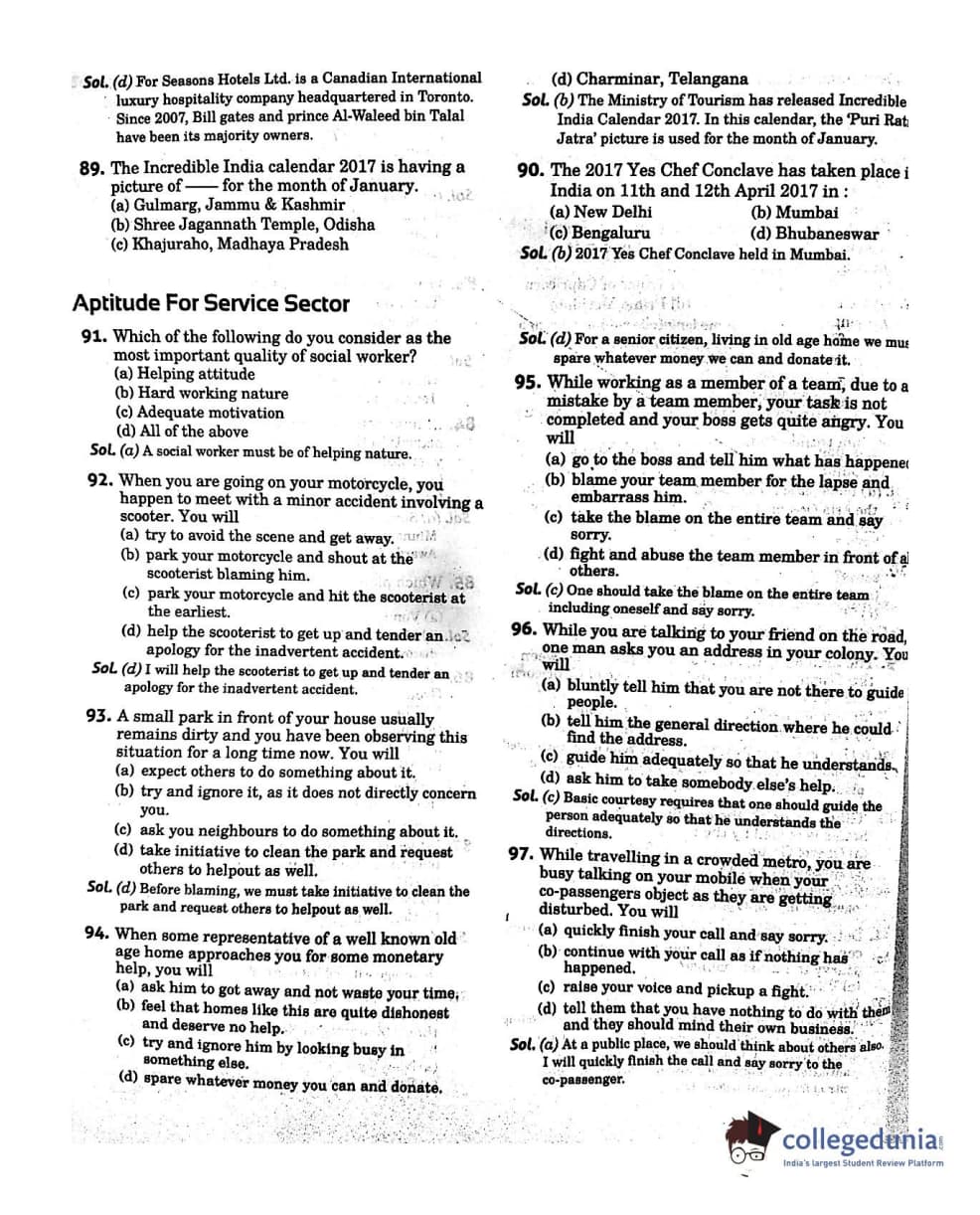 NCHMCT JEE 2017 General Knowledge Question paper with answer key pdf conducted on April 29, 2017 is available for download. The exam was successfully organized by National Council for Hotel Management & Catering Technology (NCHMCT). The question paper comprised a total of 200 questions.