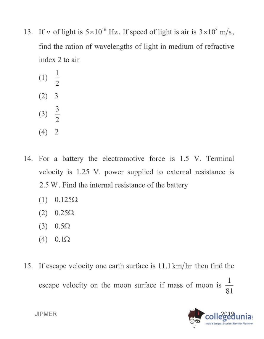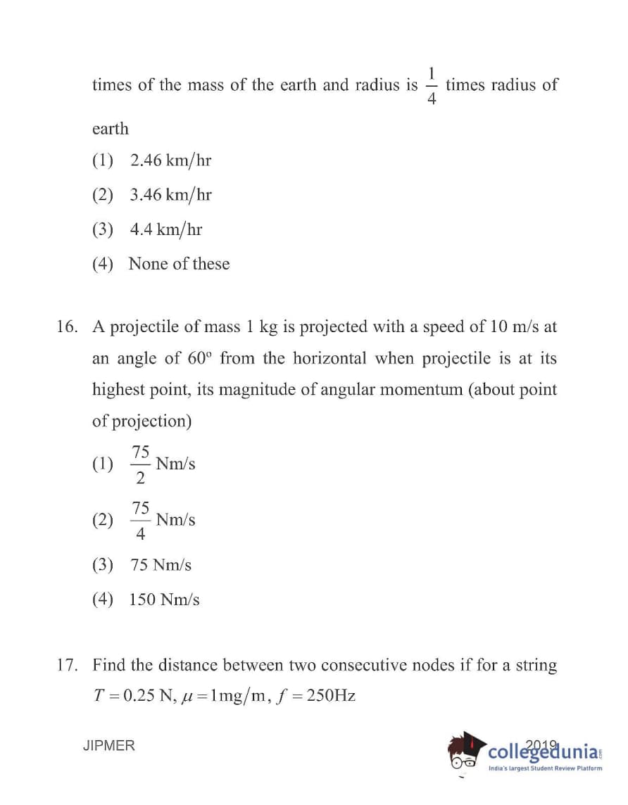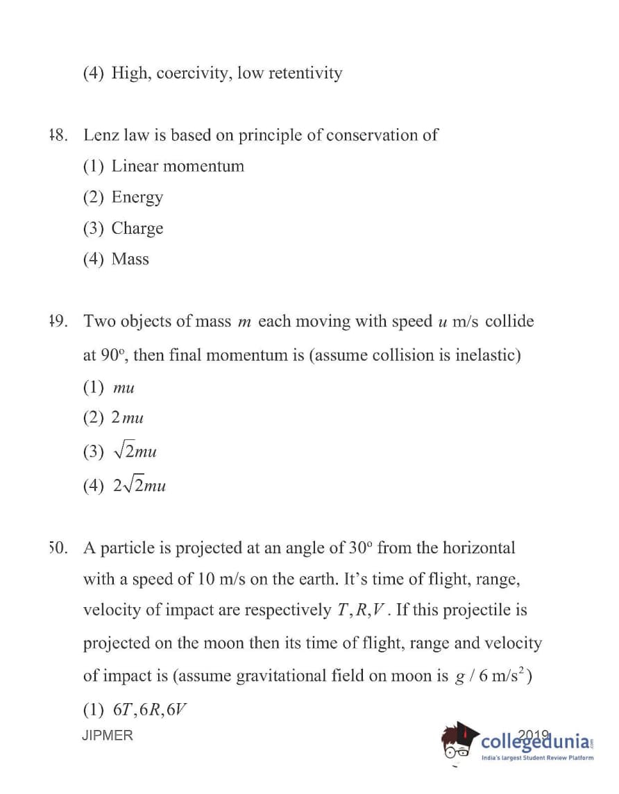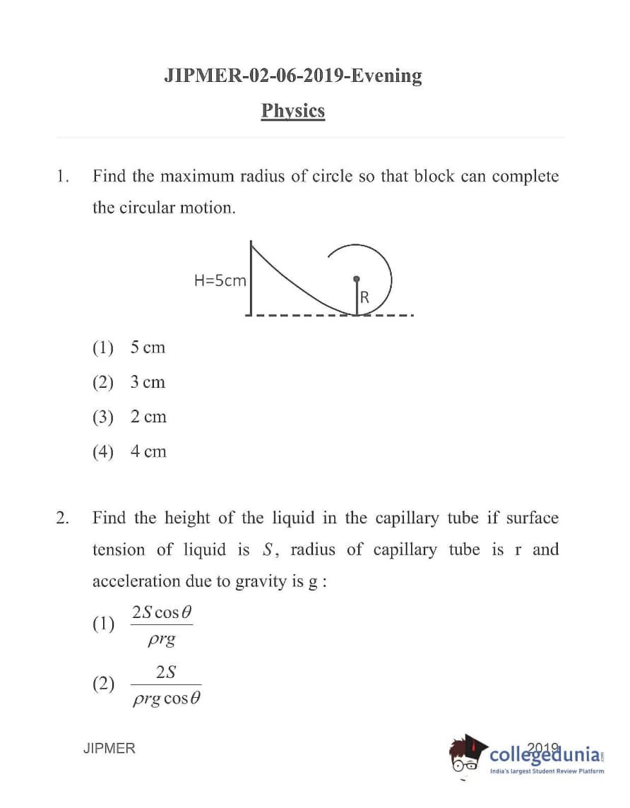 | JIPMER 2019 Physics Question Paper PDF | JIPMER 2019 Physics Answer Key PDF |