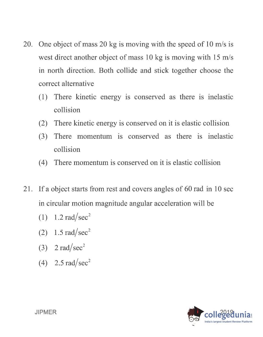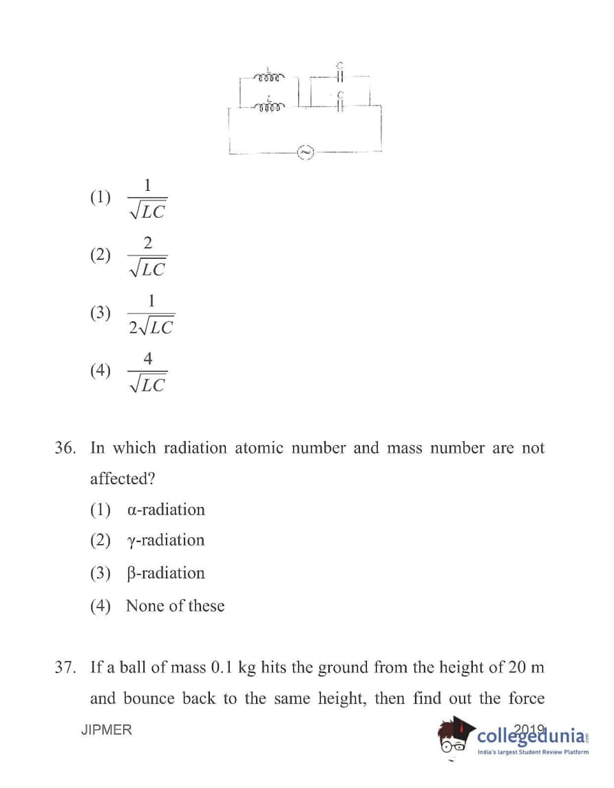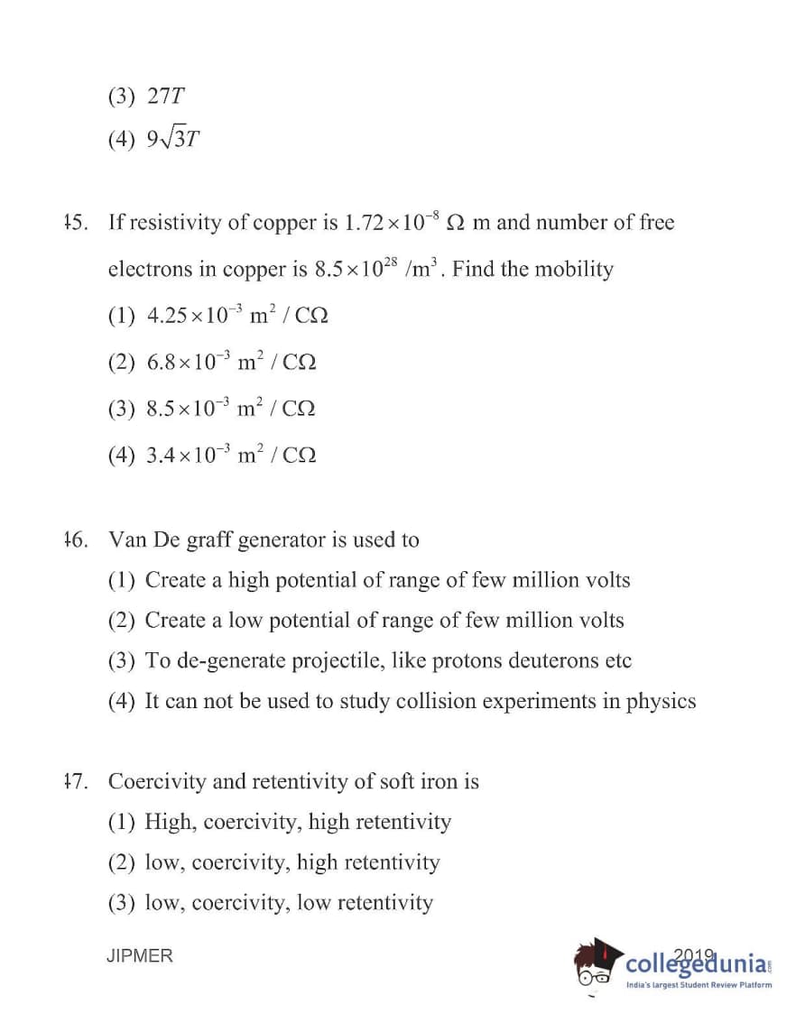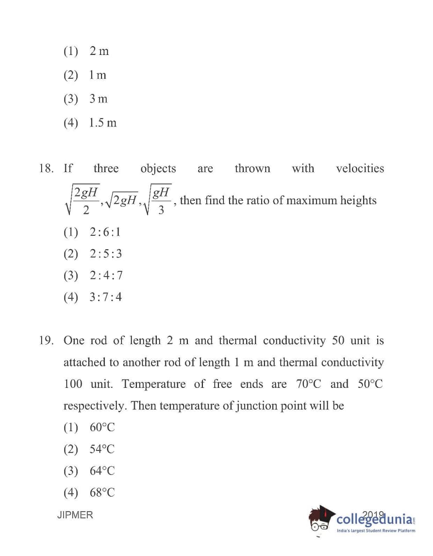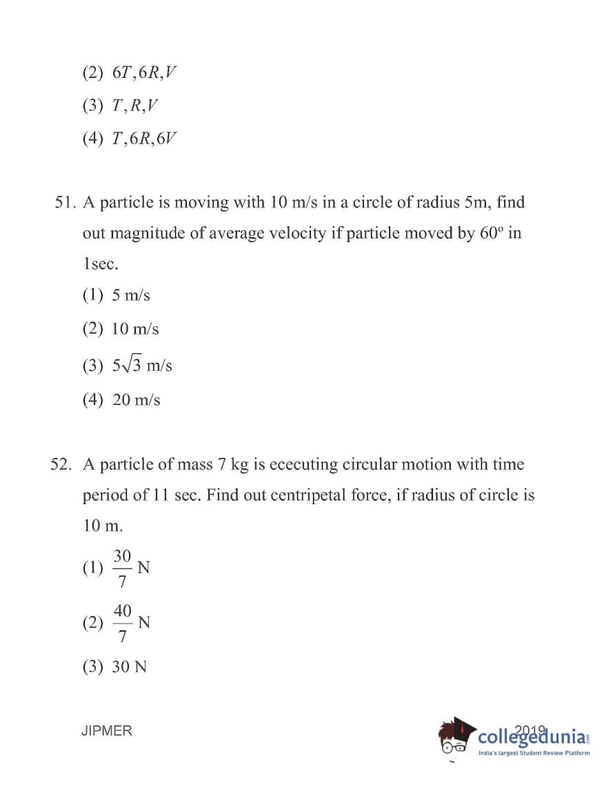 | JIPMER 2019 Physics Question Paper PDF | JIPMER 2019 Physics Answer Key PDF |