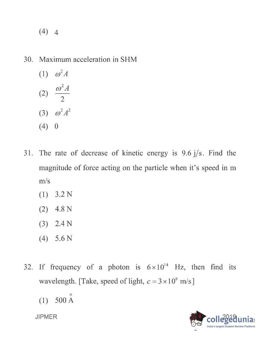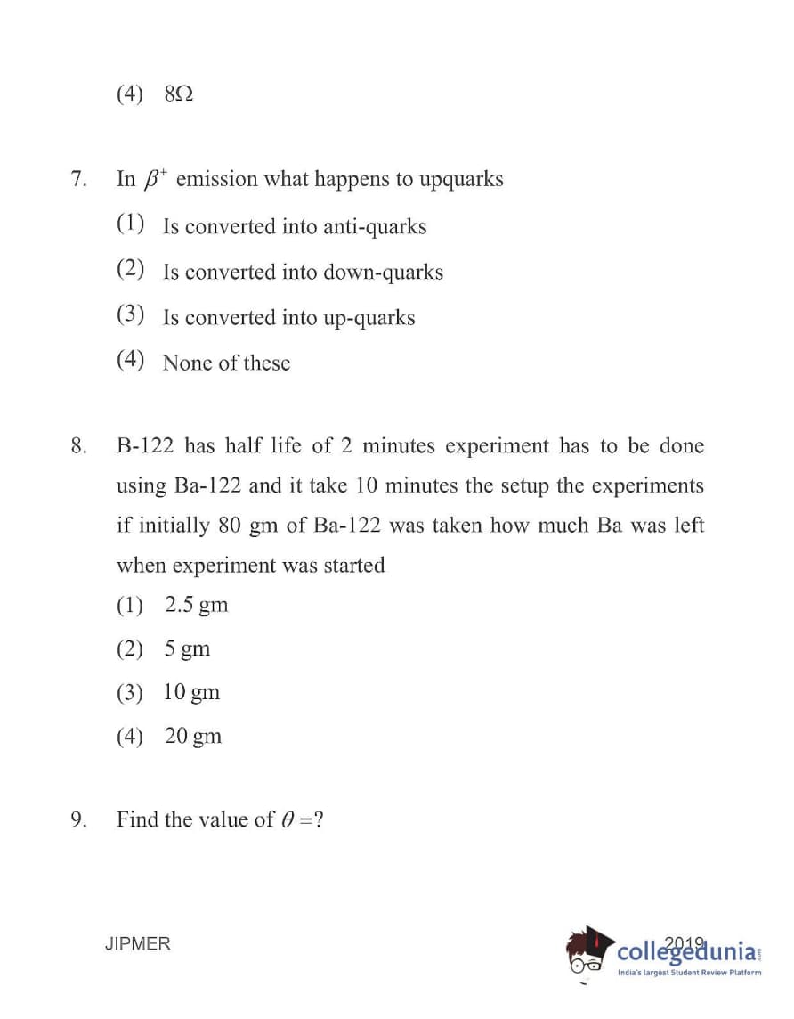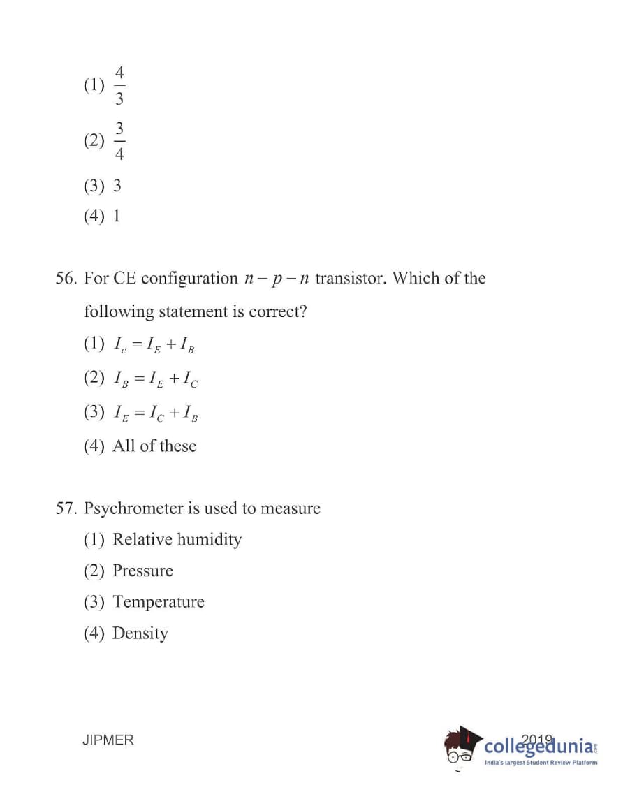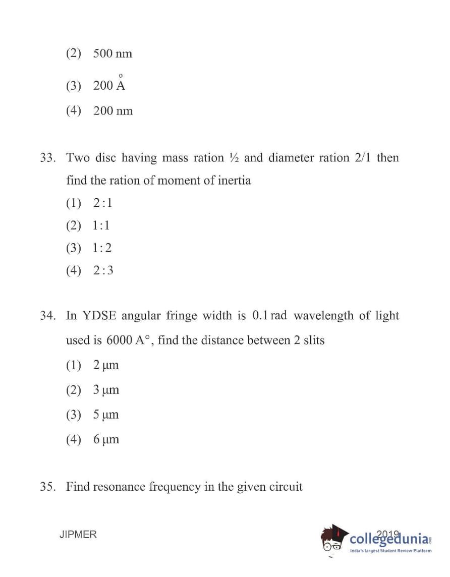 | JIPMER 2019 Physics Question Paper PDF | JIPMER 2019 Physics Answer Key PDF |