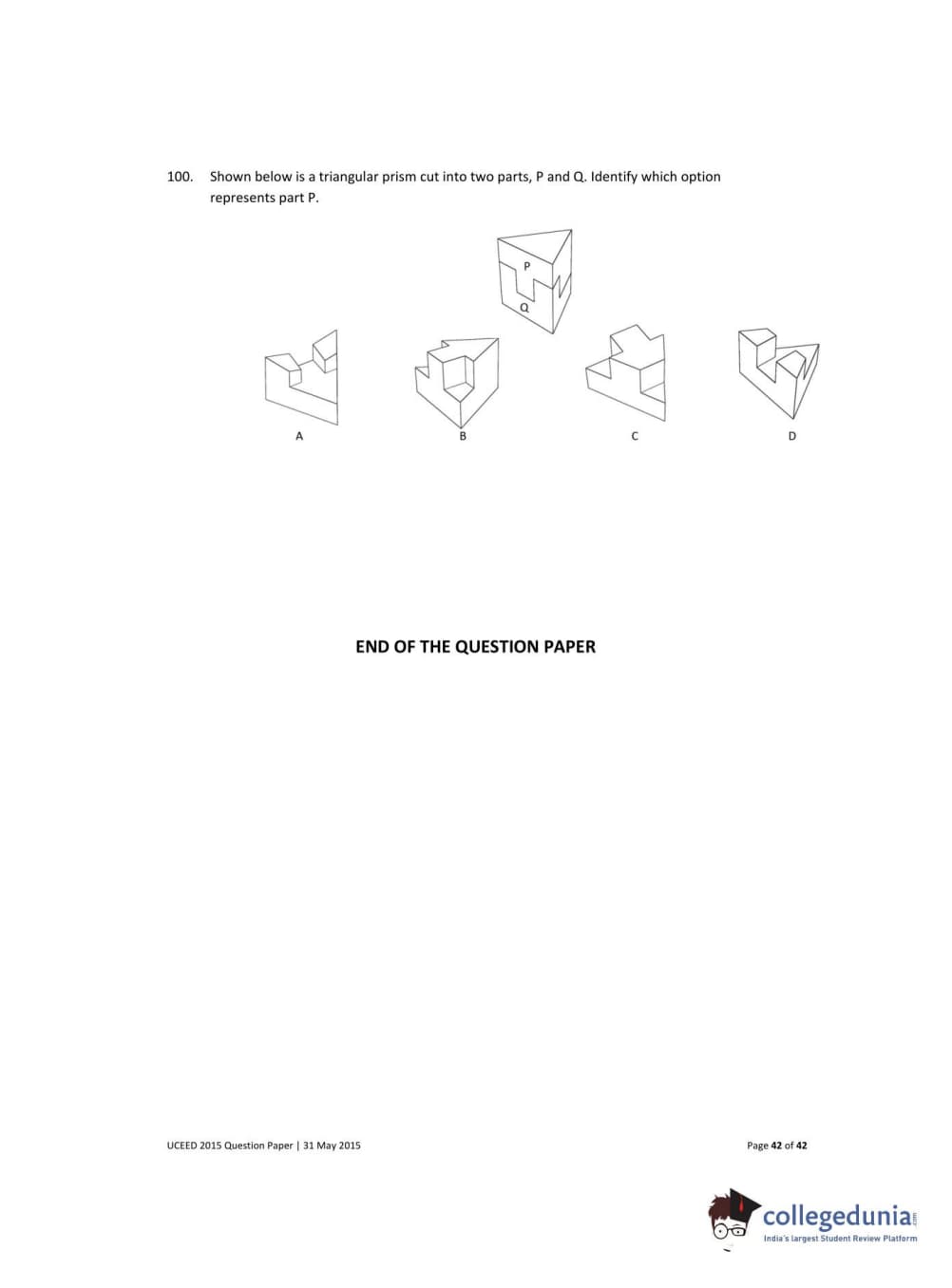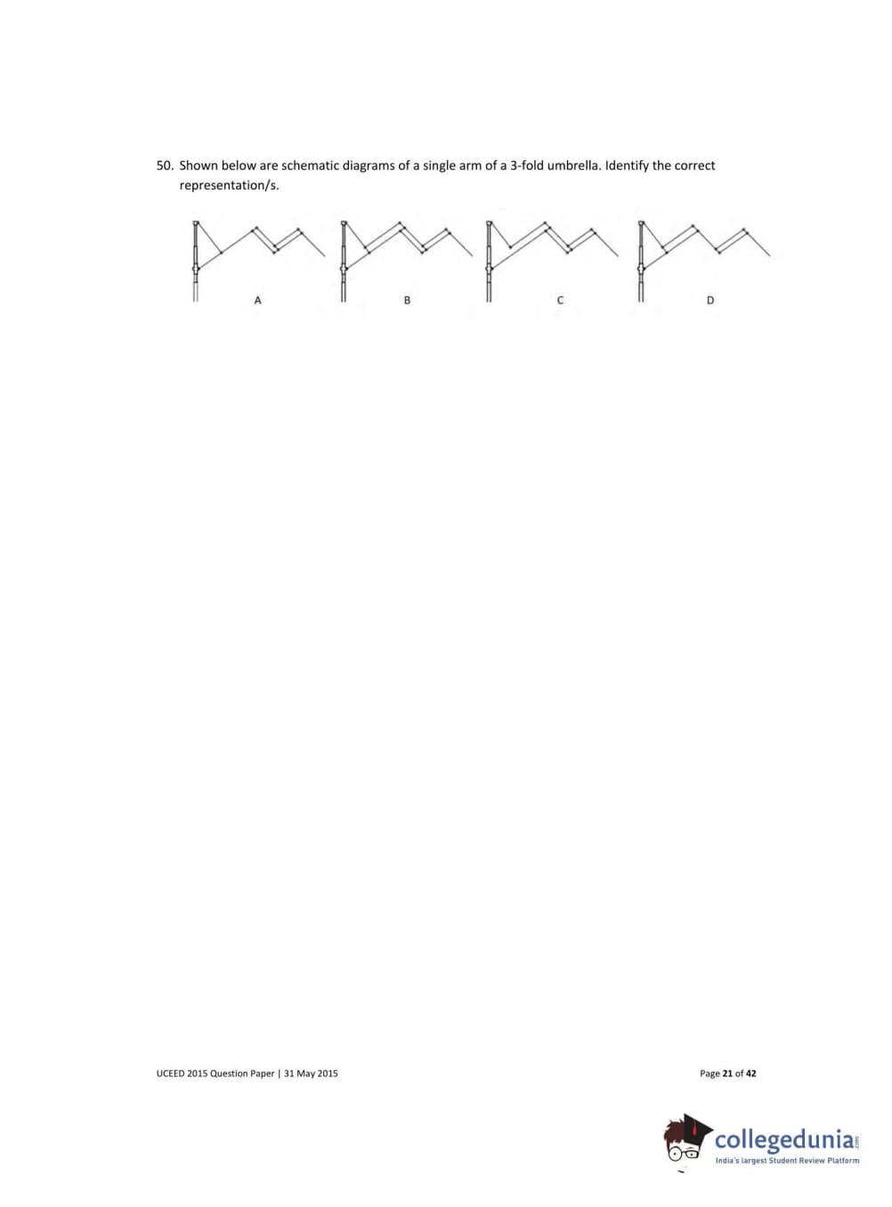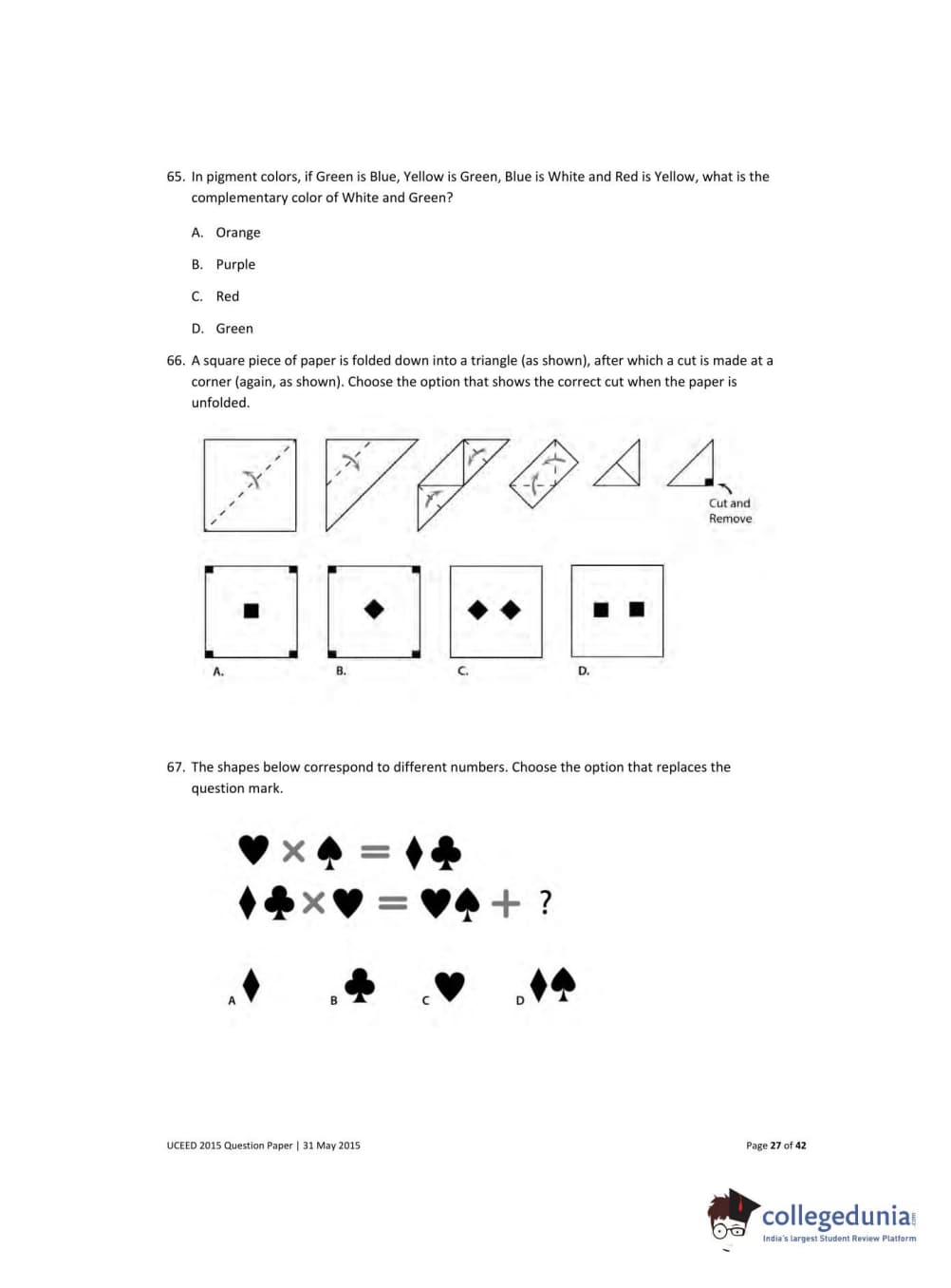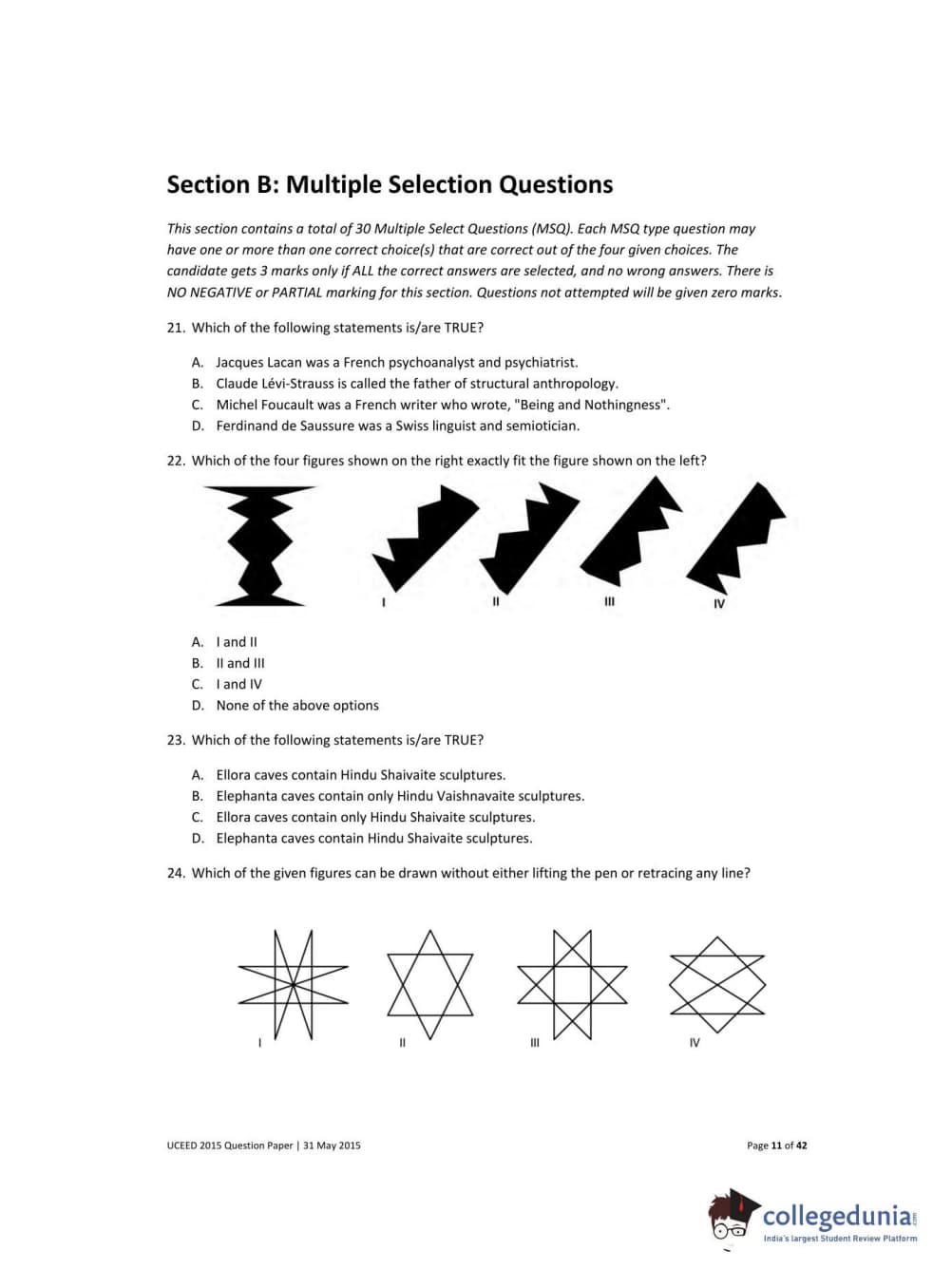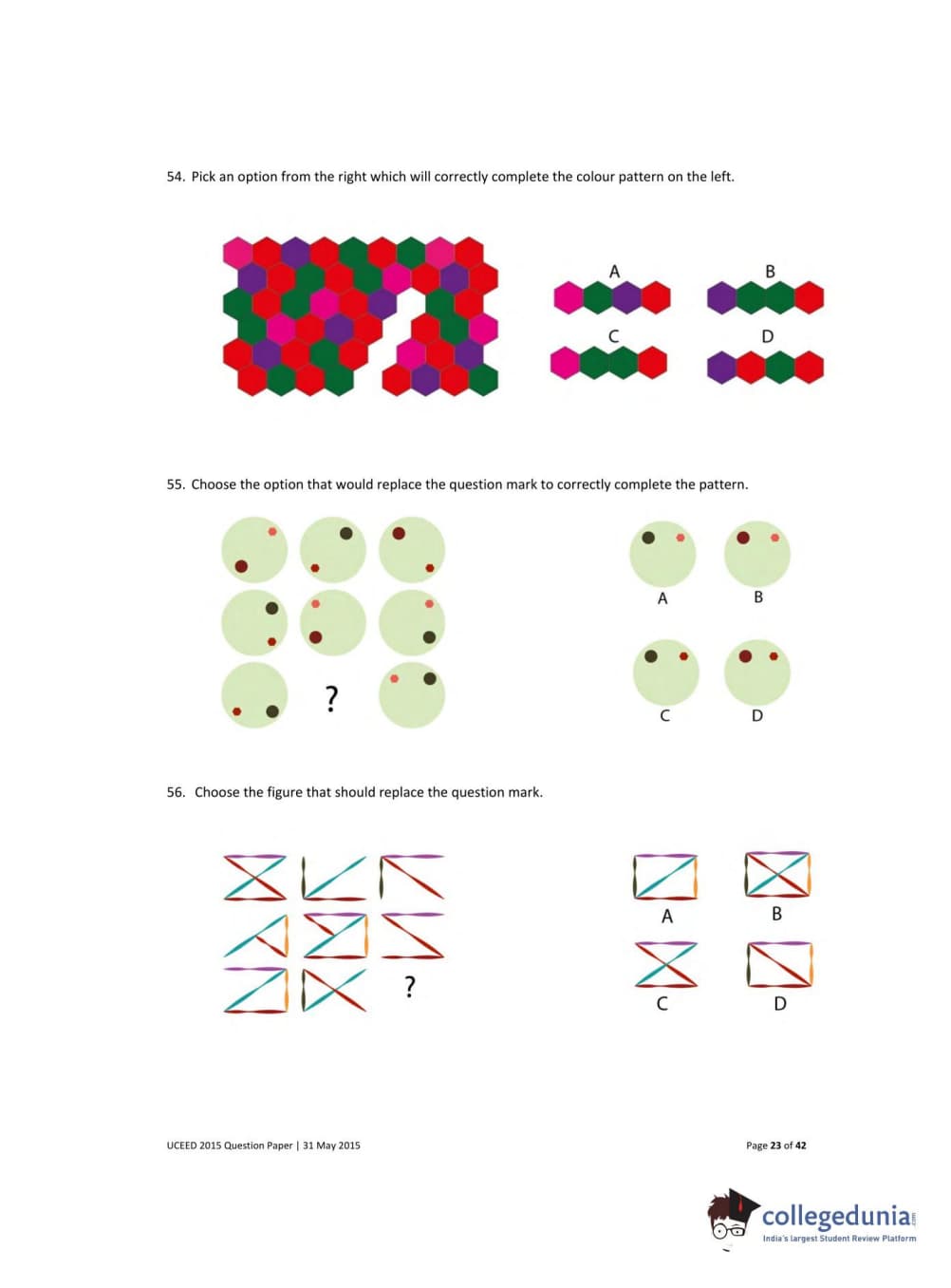 UCEED 2015 Question paper with answer key pdf conducted on May 31 is available for download. The exam was successfully organized by IIT Bombay. The question paper comprised a total of 100 questions divided among 3 sections.