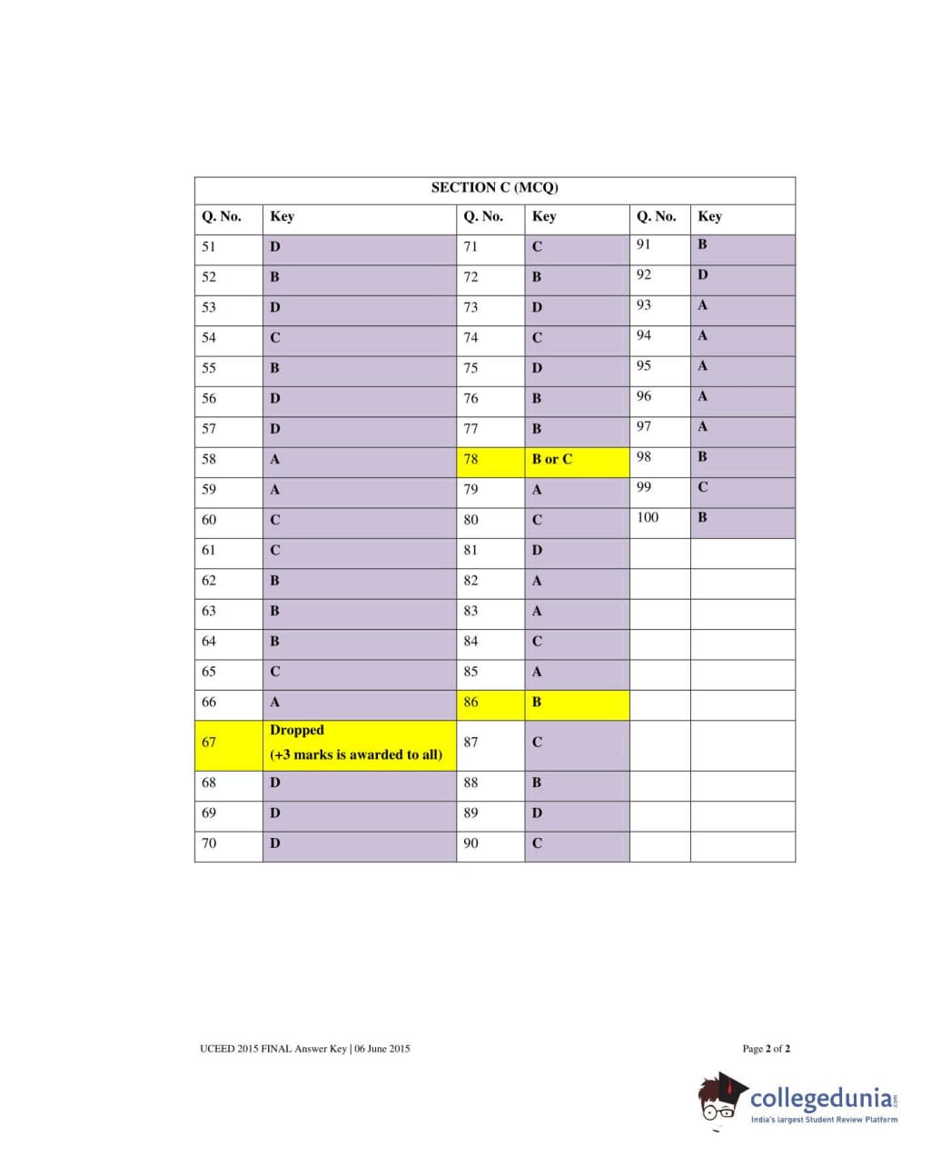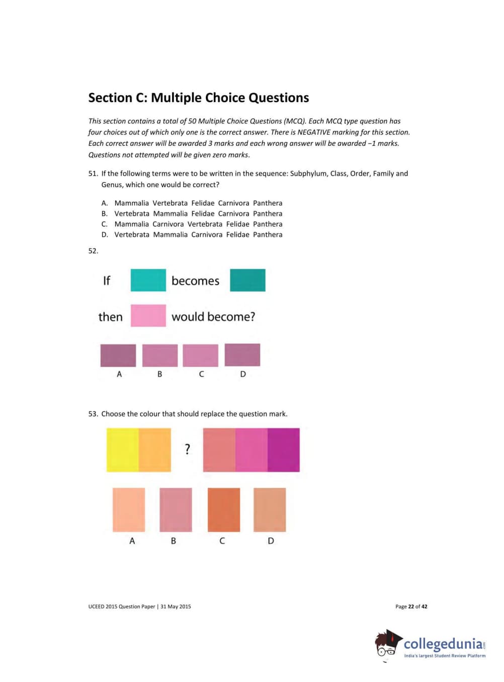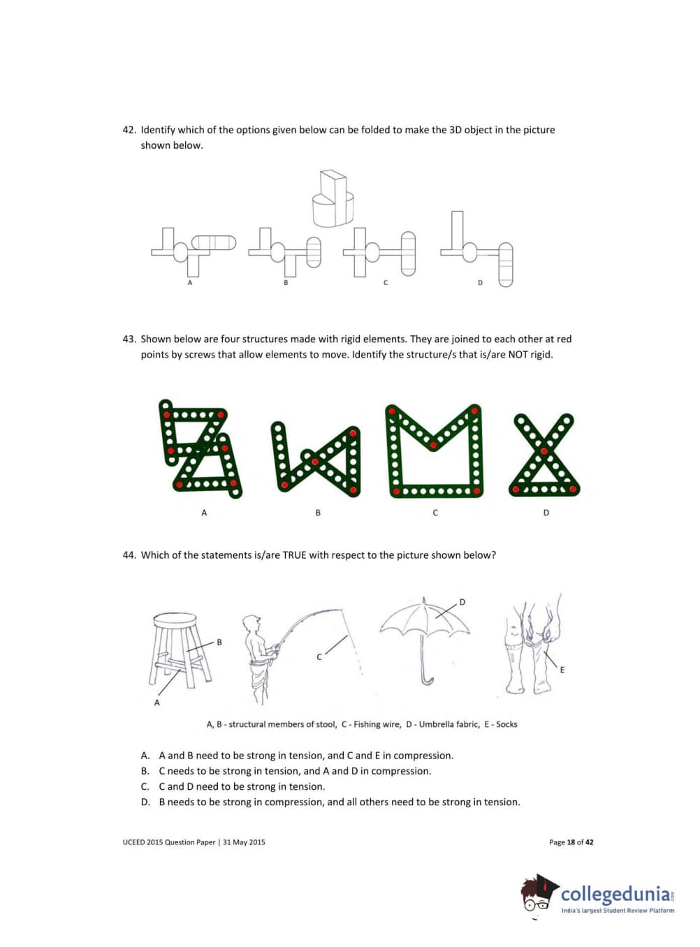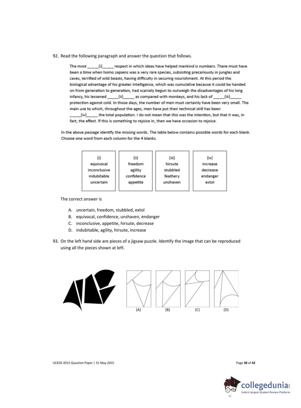 UCEED 2015 Question paper with answer key pdf conducted on May 31 is available for download. The exam was successfully organized by IIT Bombay. The question paper comprised a total of 100 questions divided among 3 sections.