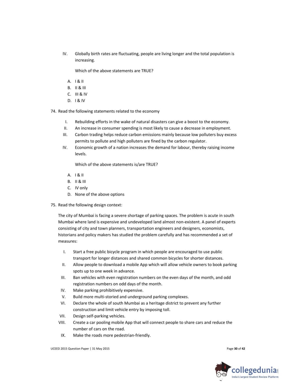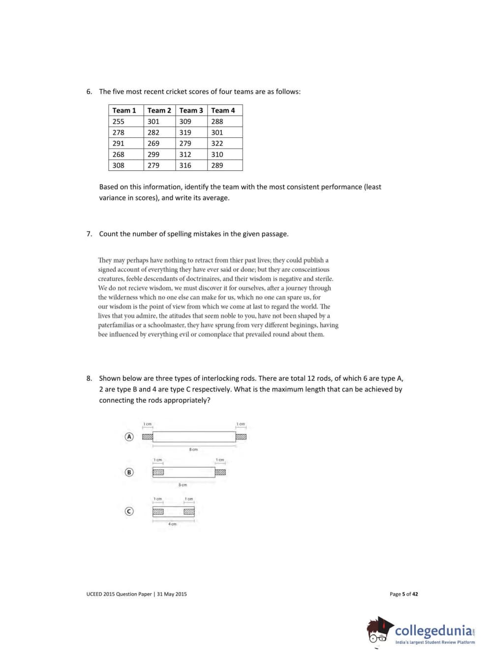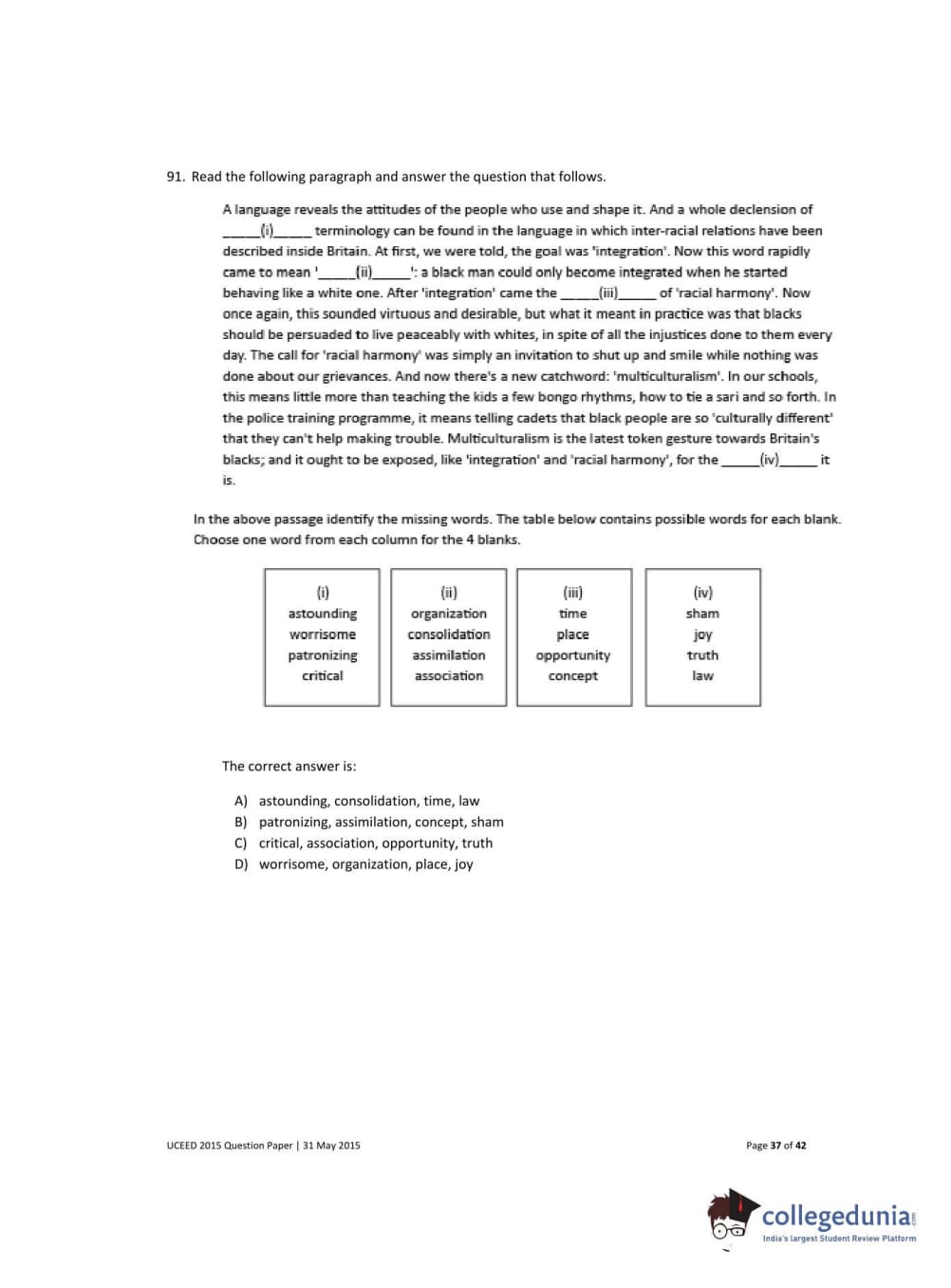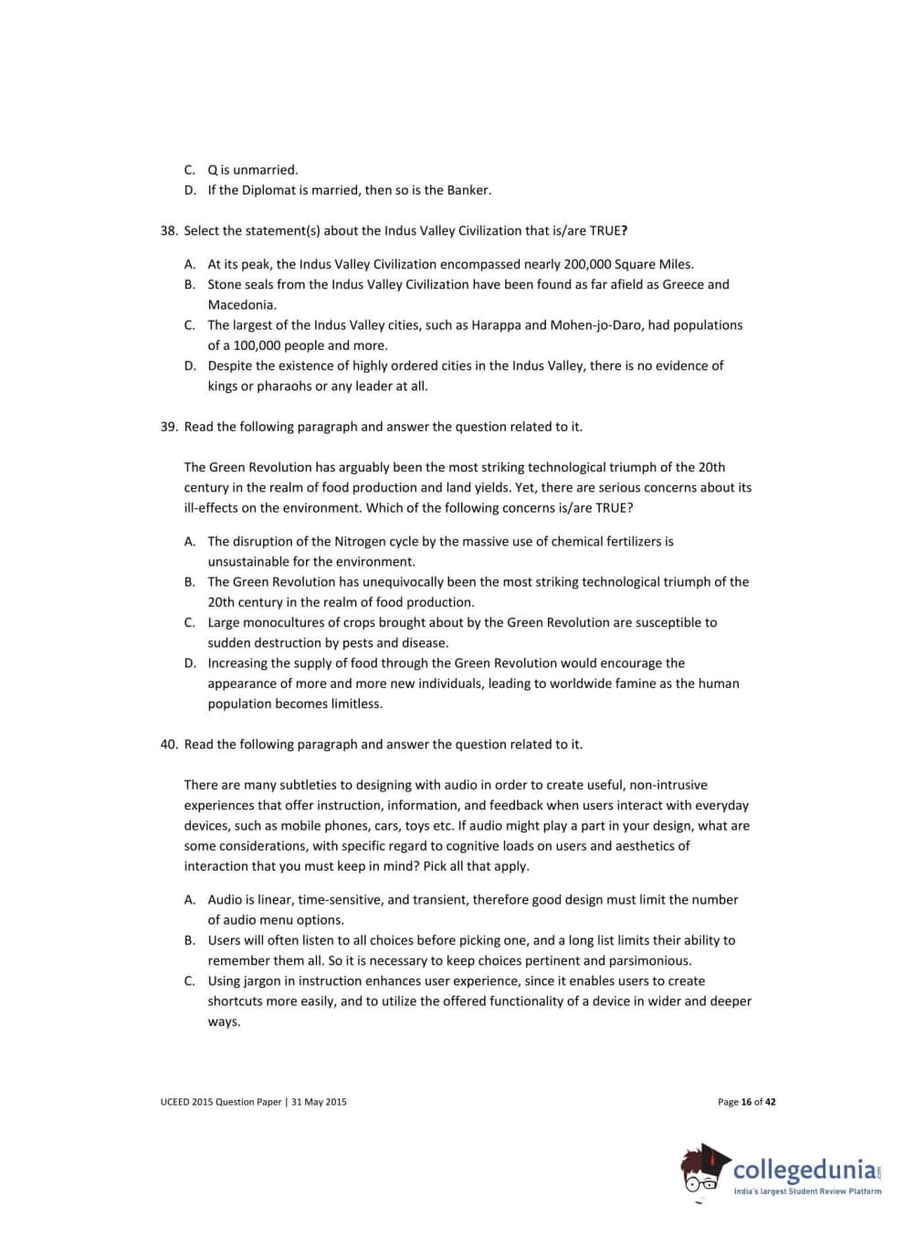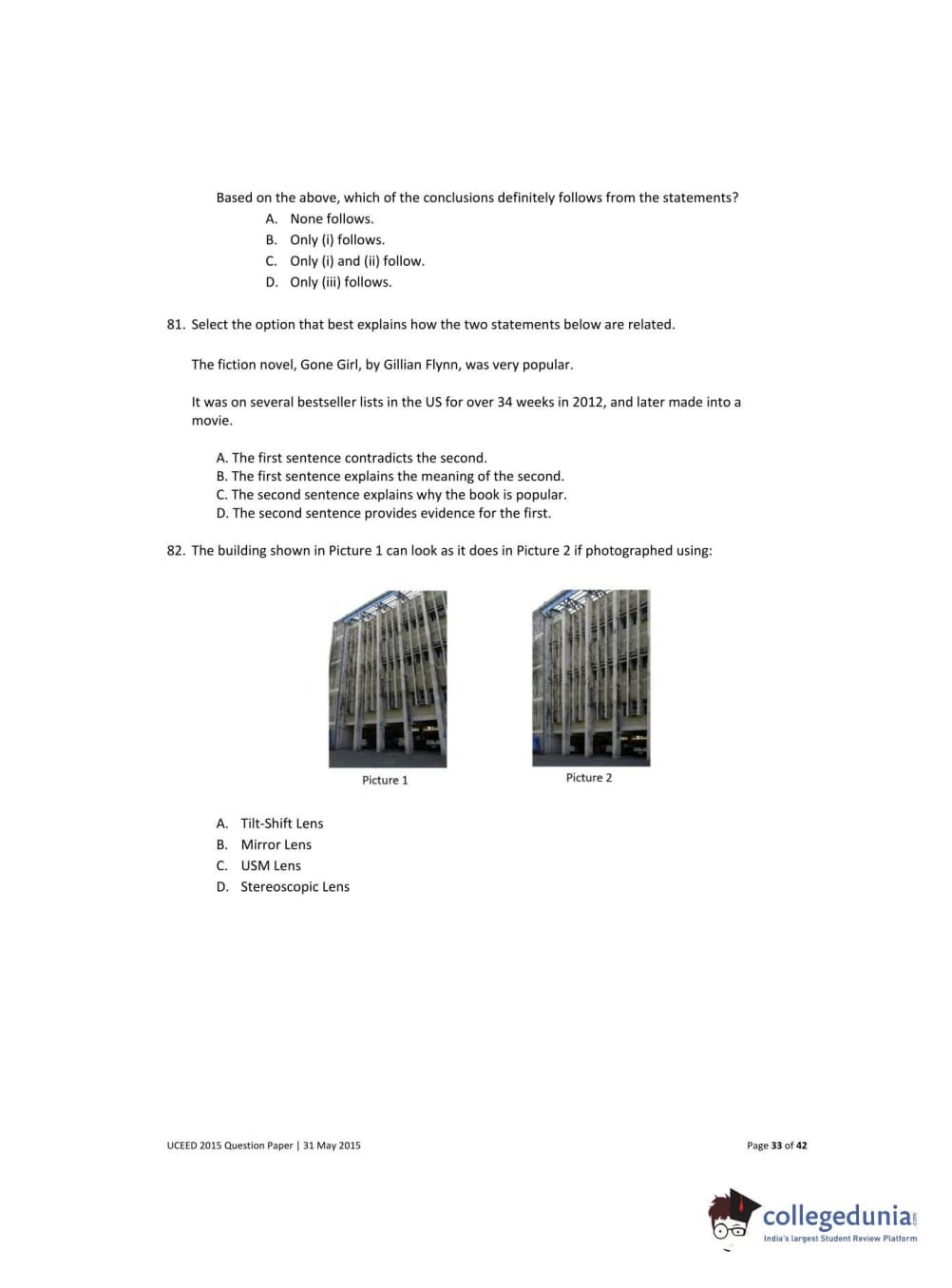 UCEED 2015 Question paper with answer key pdf conducted on May 31 is available for download. The exam was successfully organized by IIT Bombay. The question paper comprised a total of 100 questions divided among 3 sections.