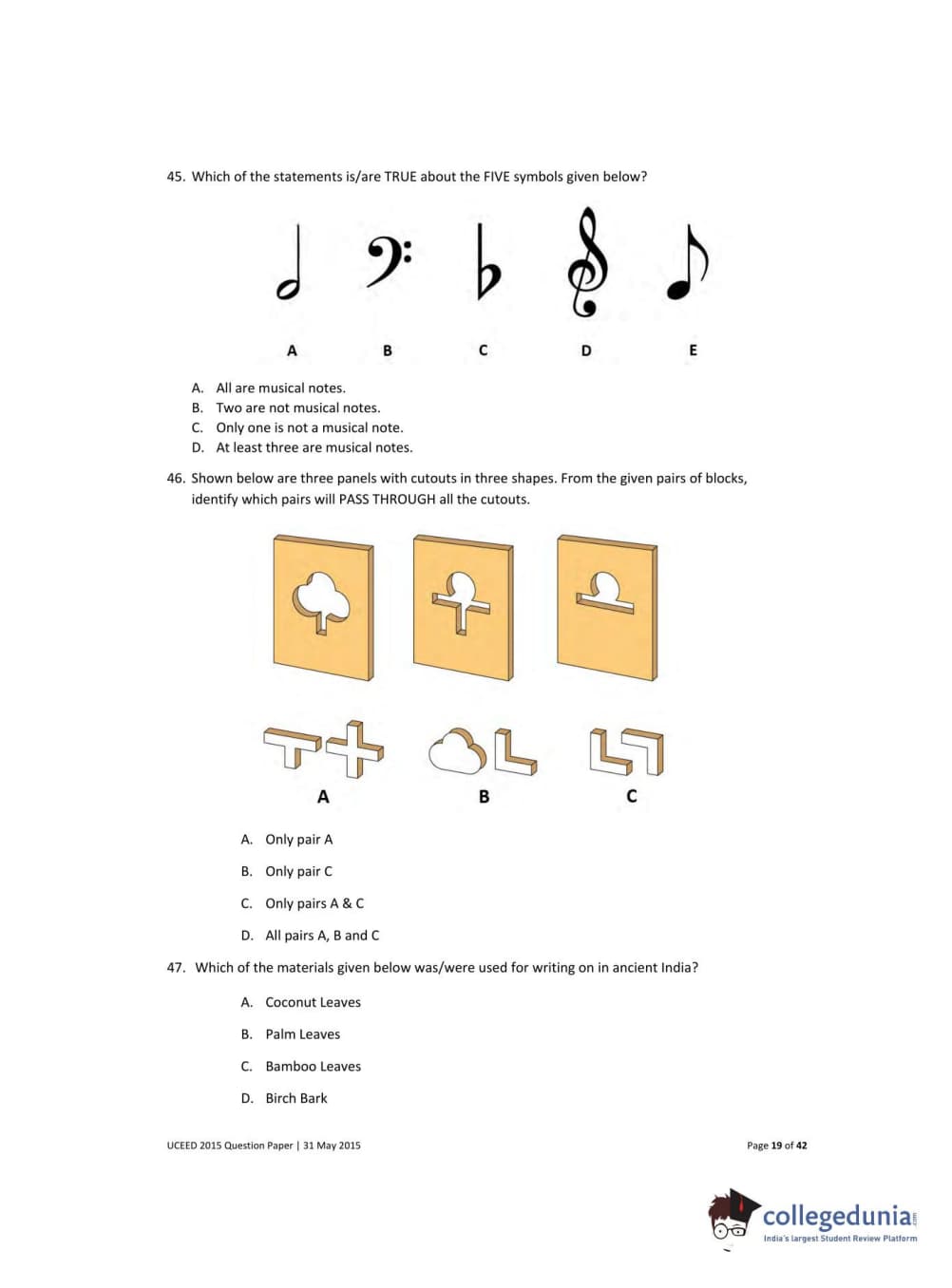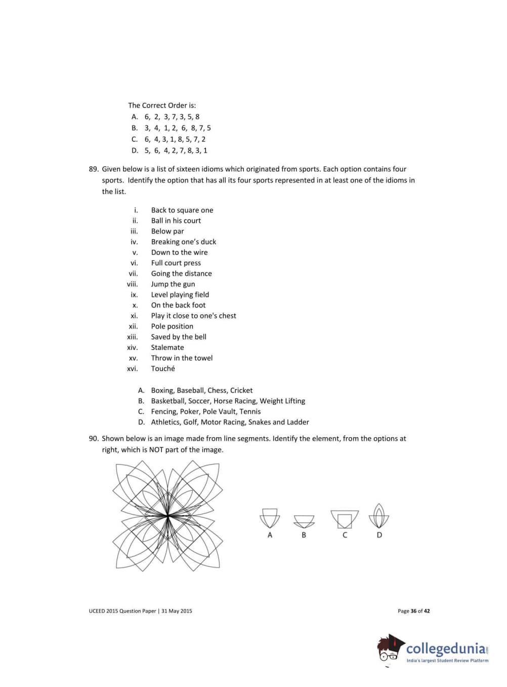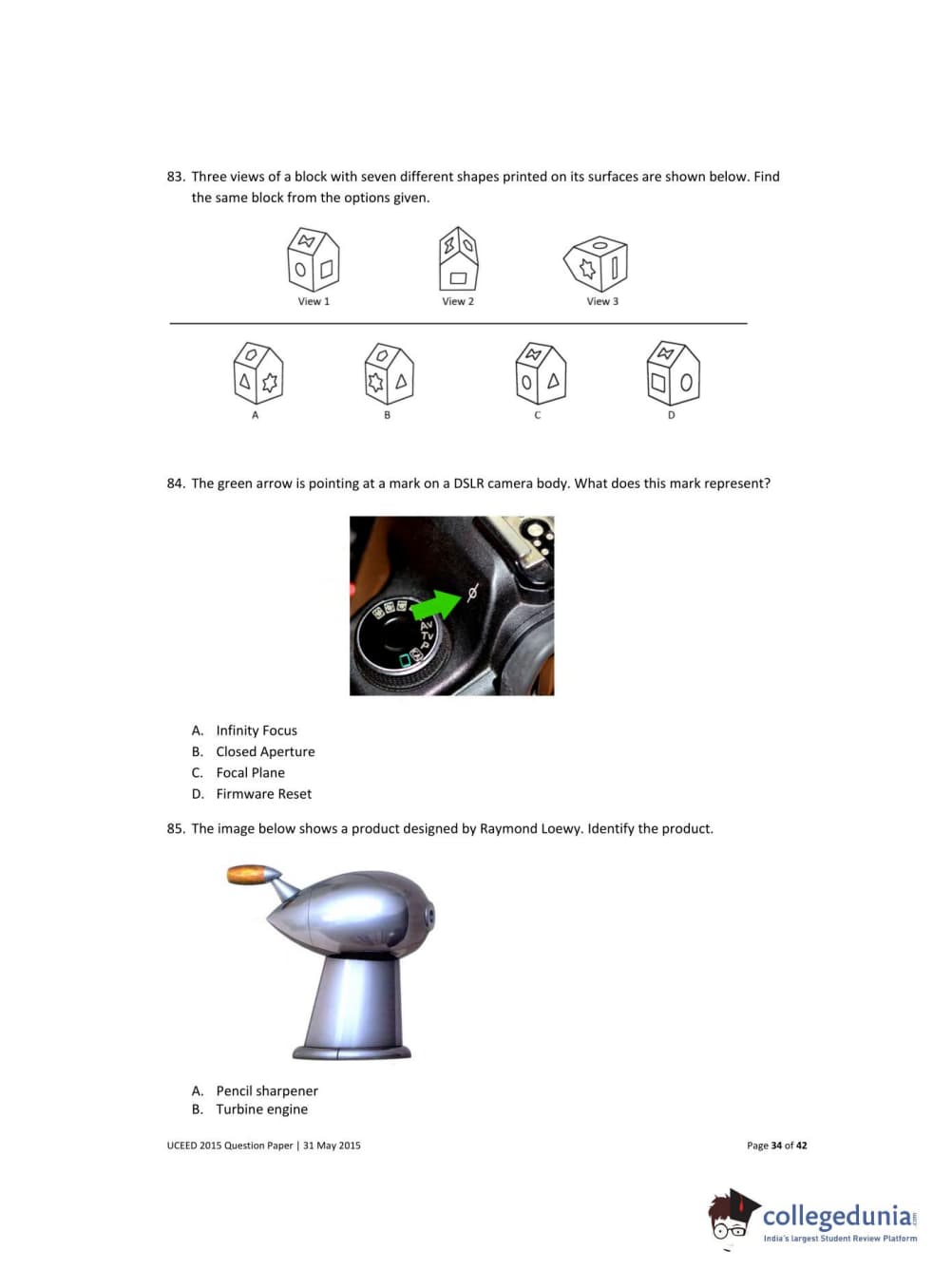 UCEED 2015 Question Paper with Answer Key PDFs
