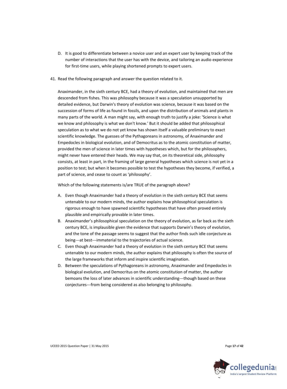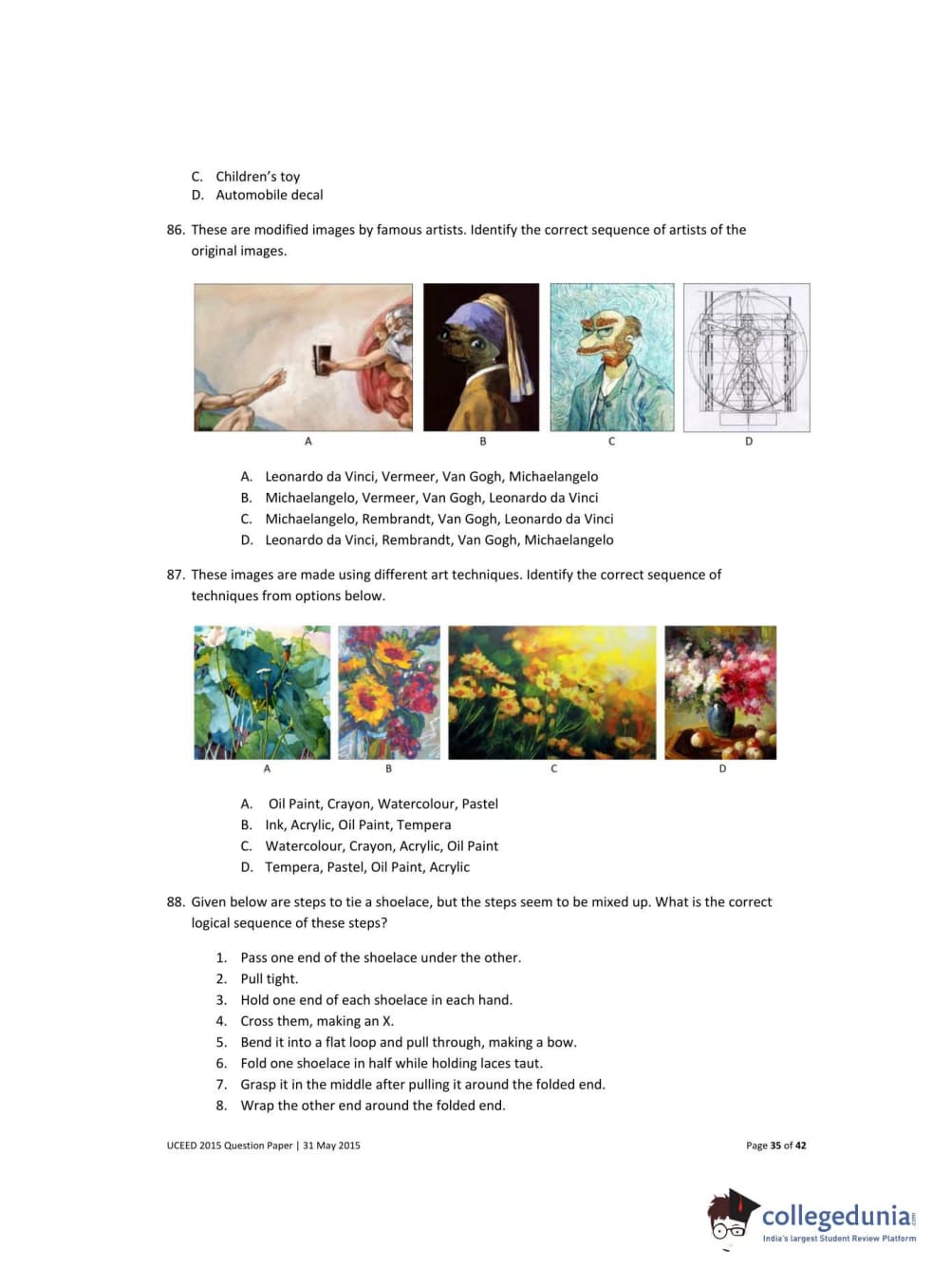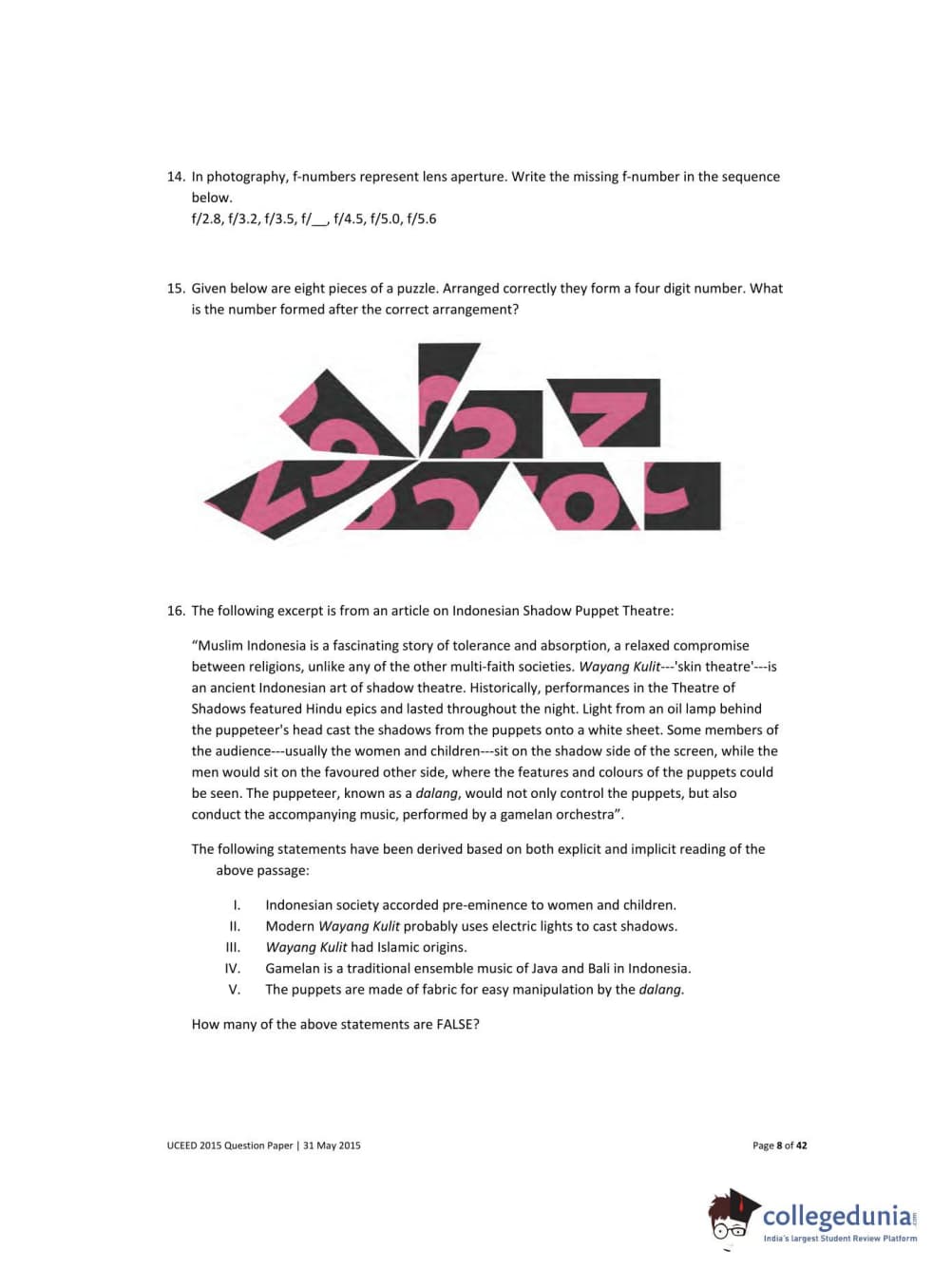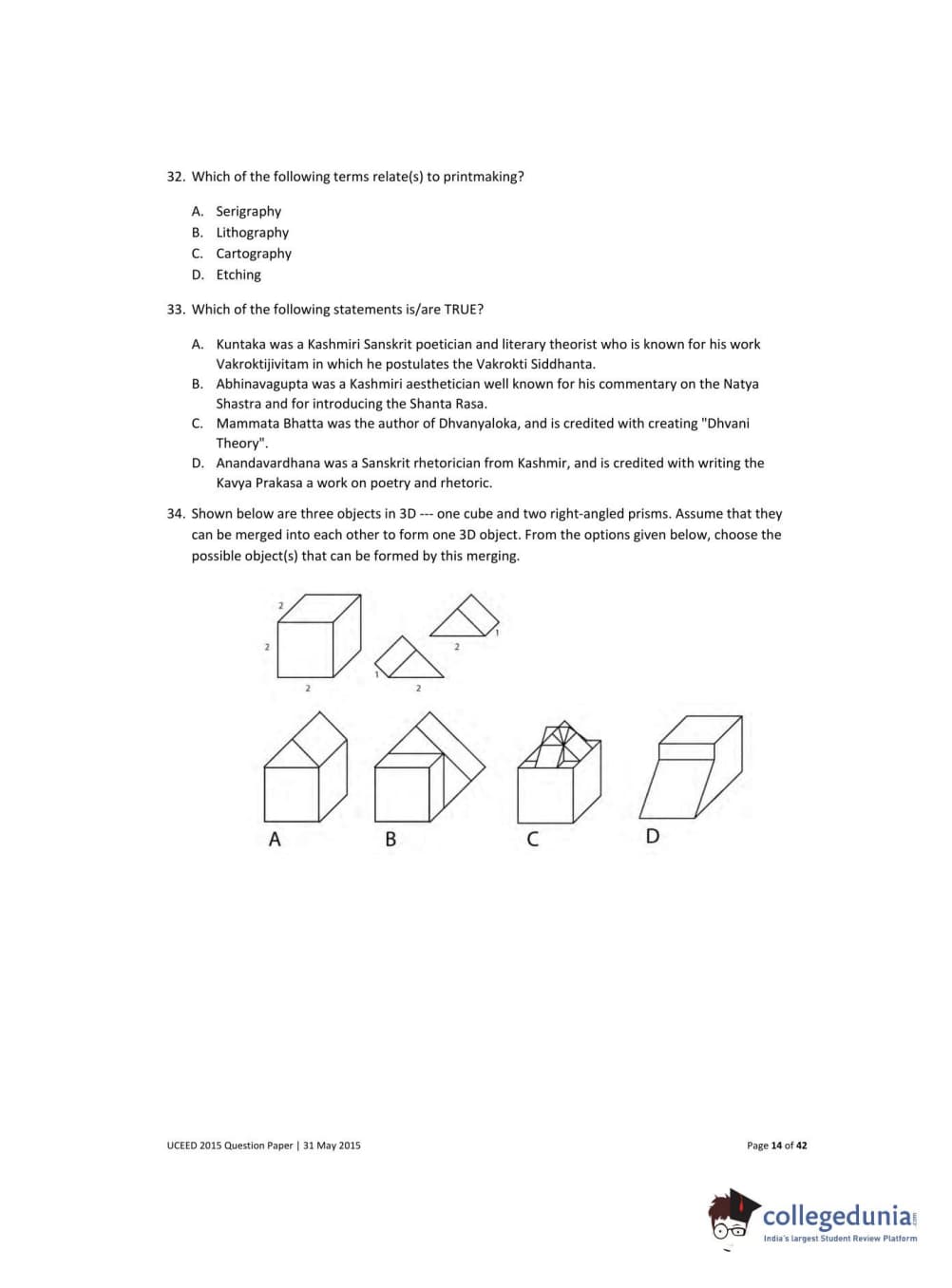 UCEED 2015 Question Paper with Answer Key PDFs