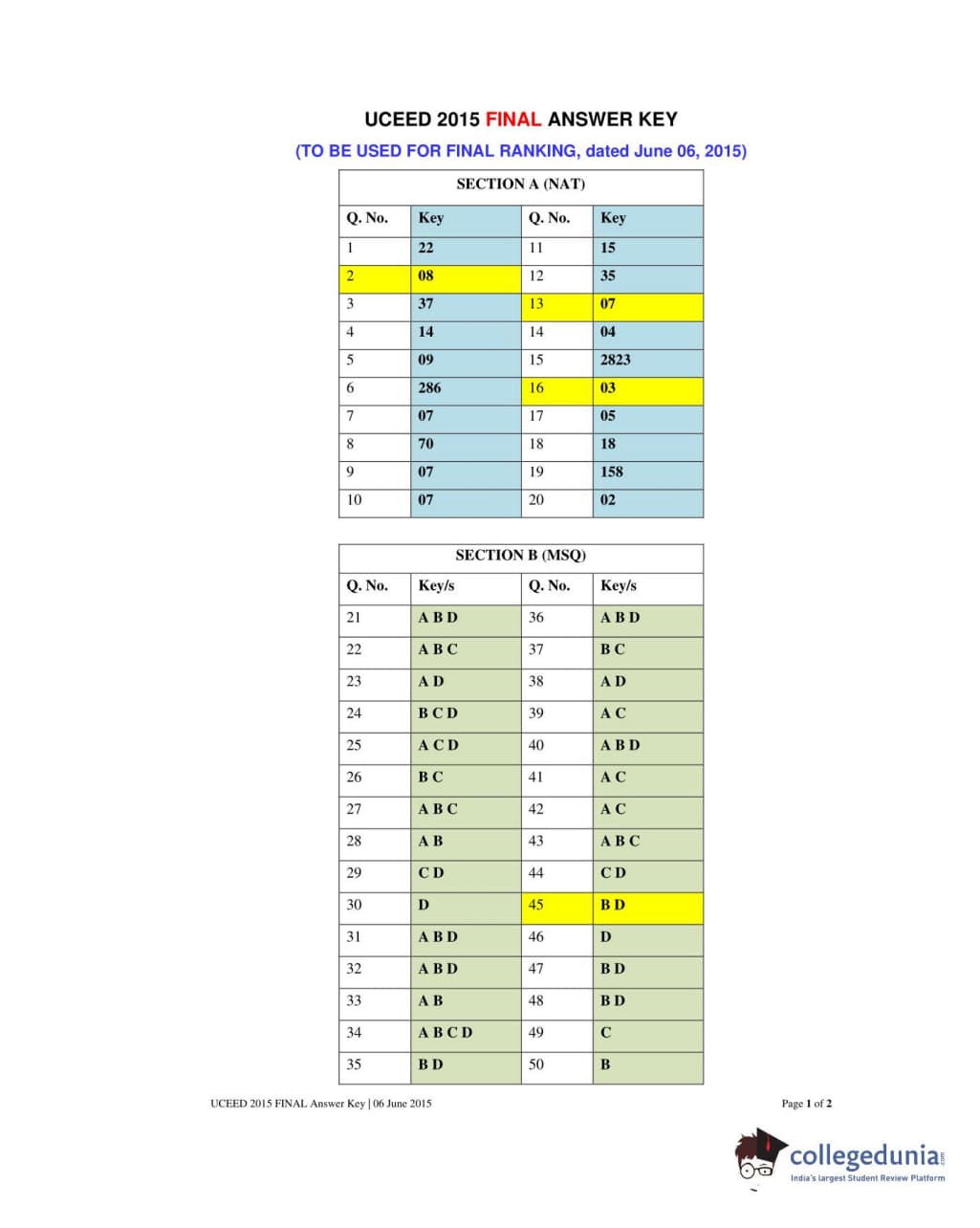 | UCEED 2015 Question Paper PDF | UCEED 2015 Answer Key PDF |
