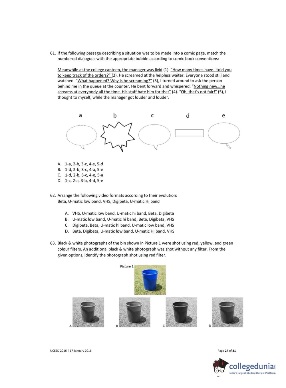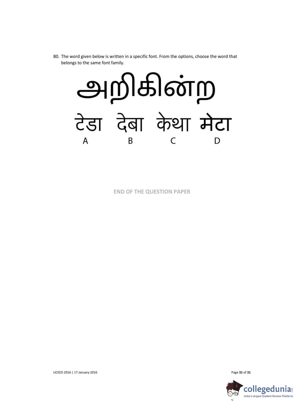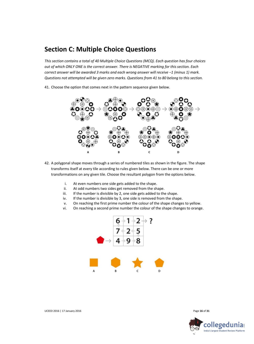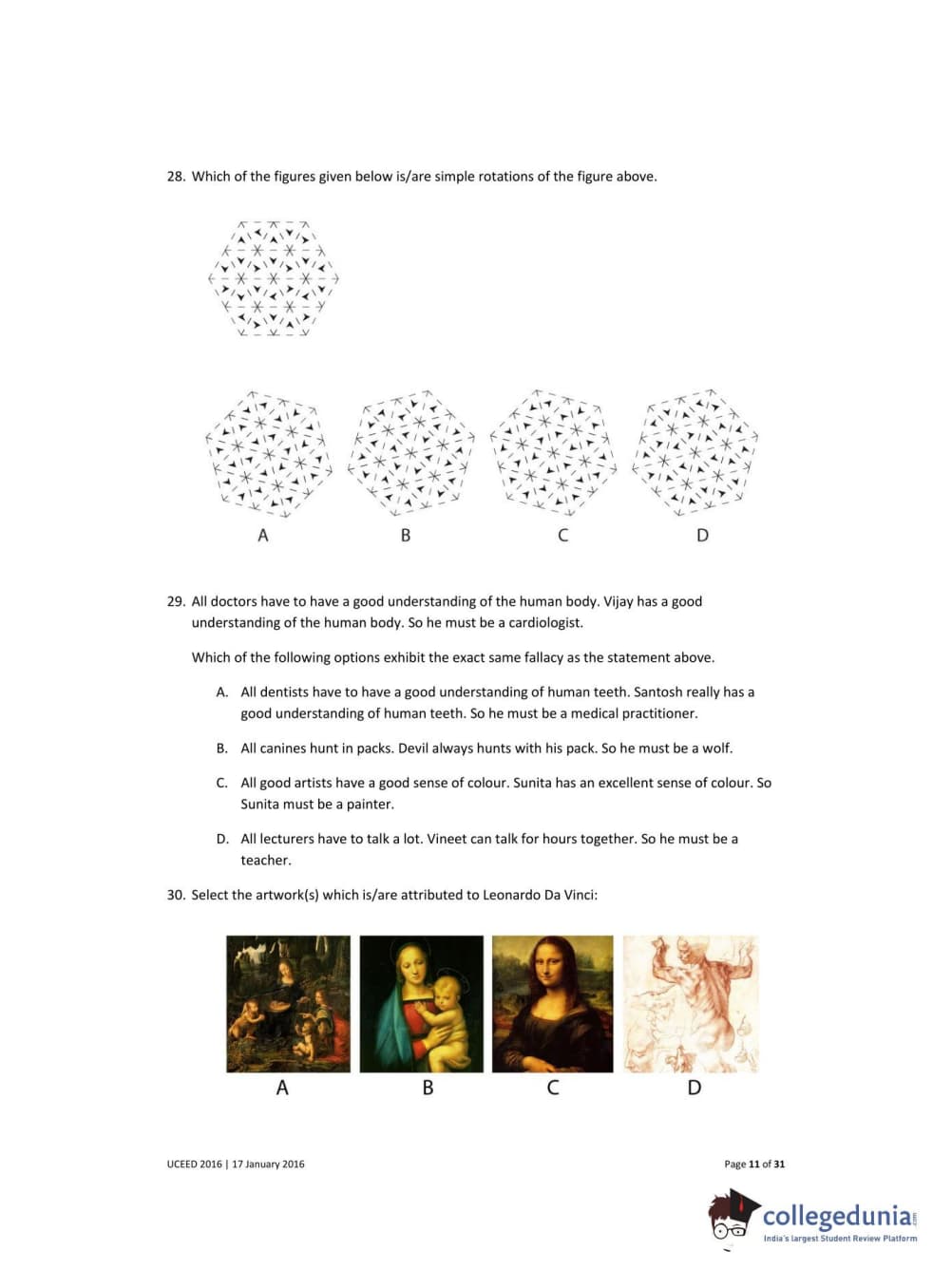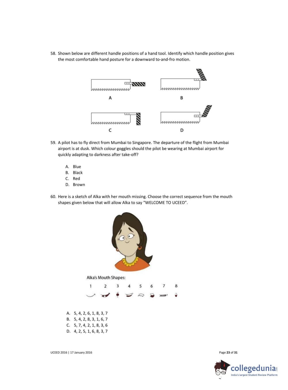 UCEED 2016 Question Paper with Answer Key PDFs