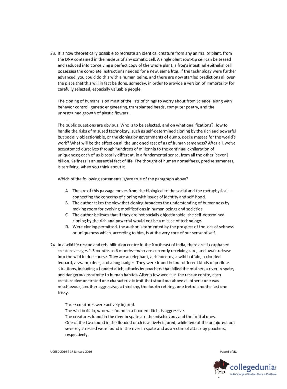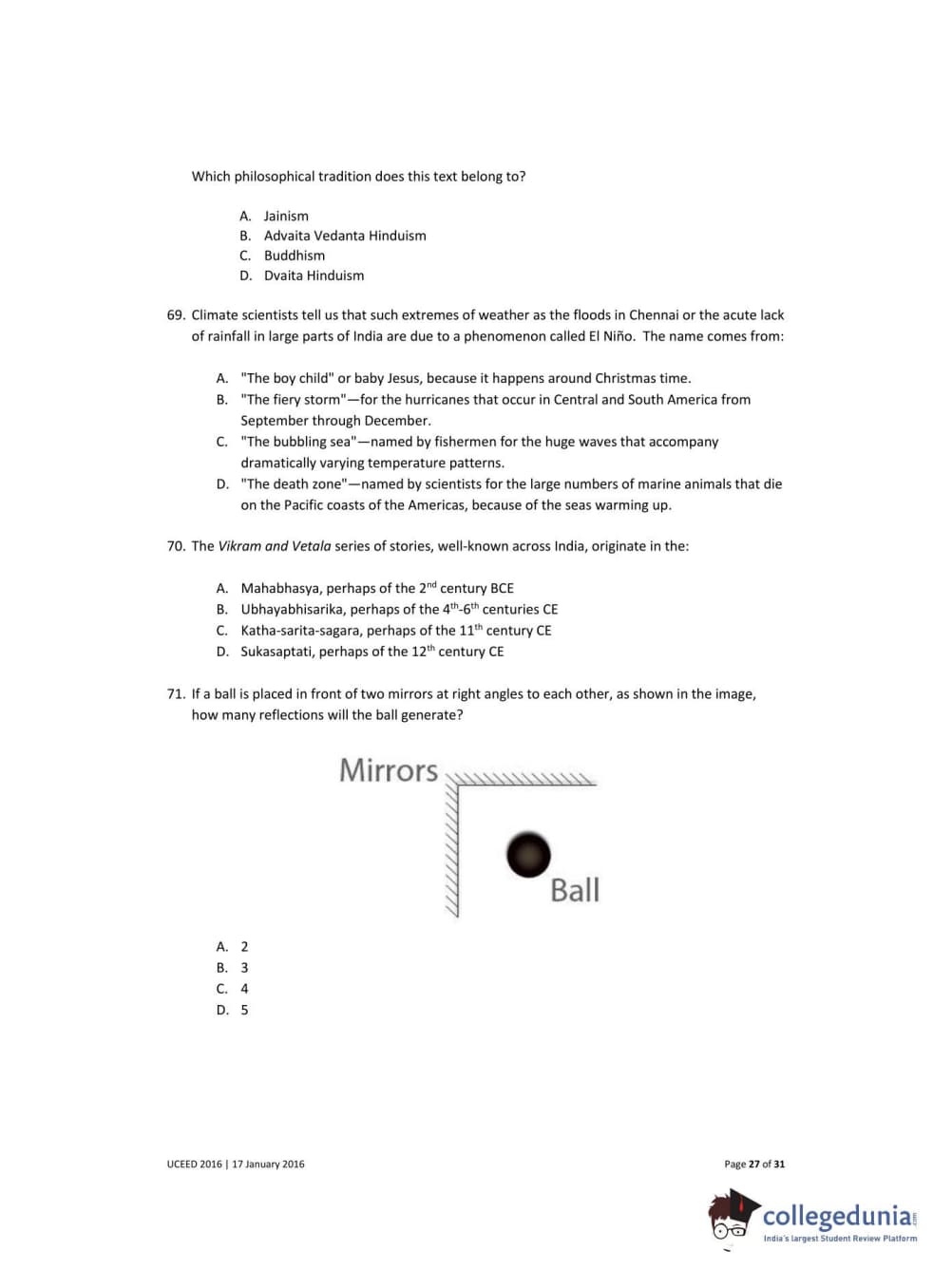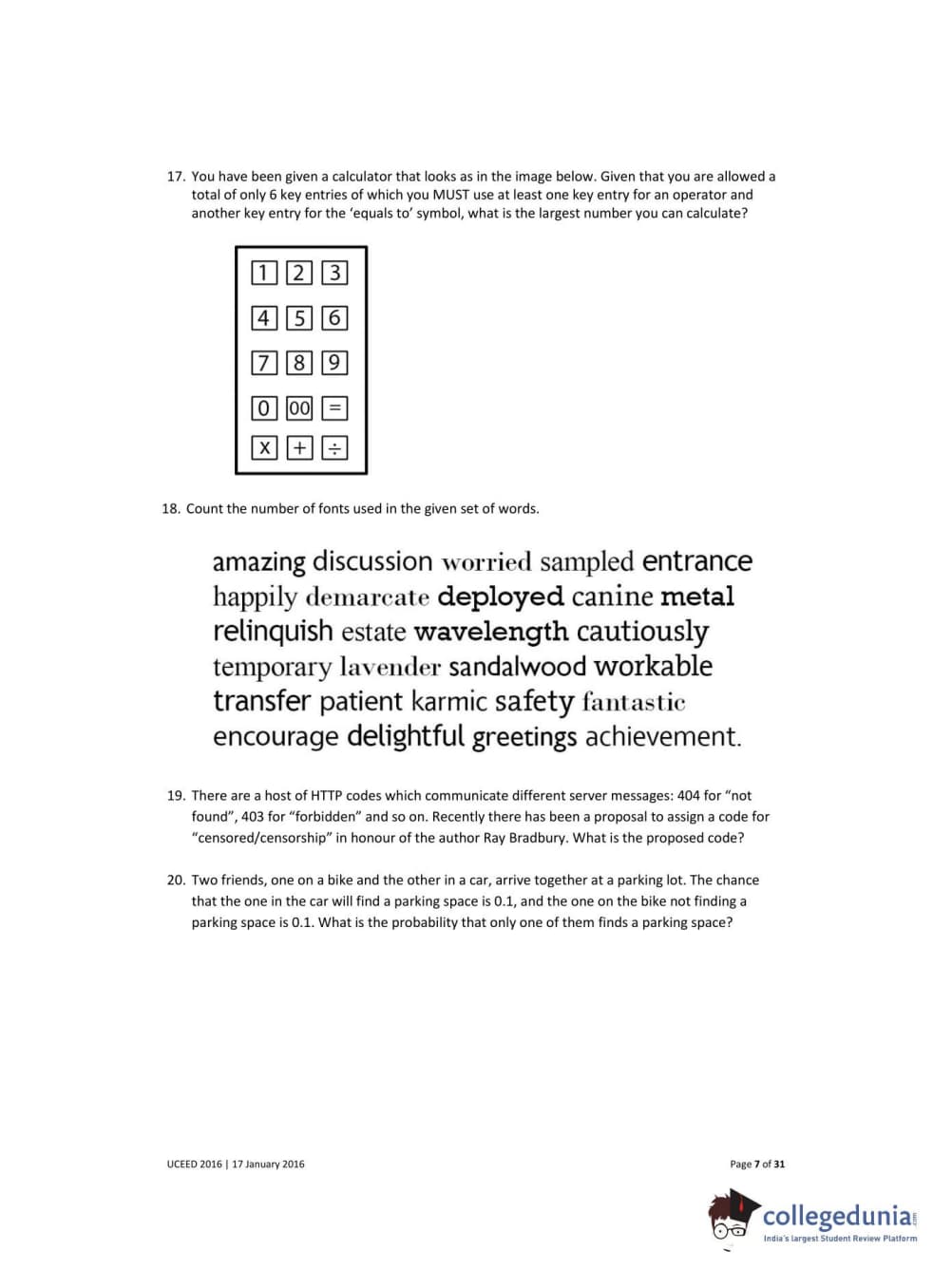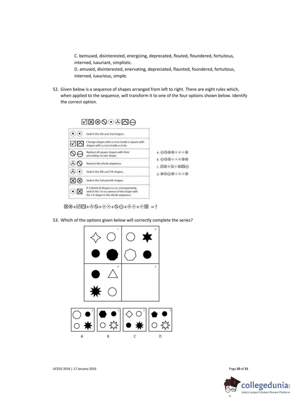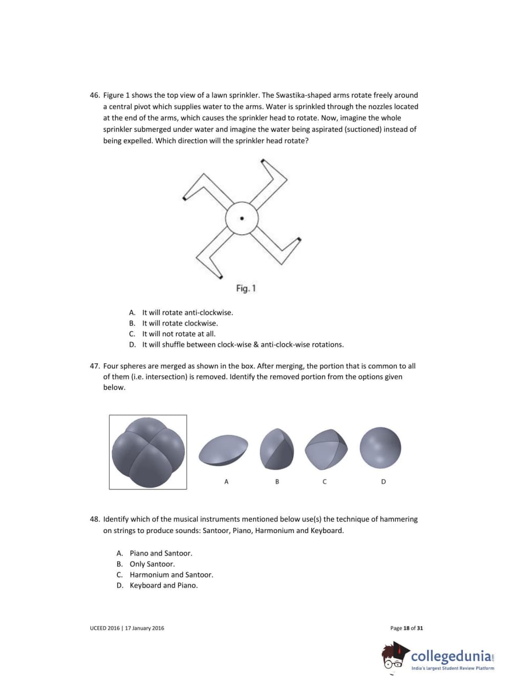 UCEED 2016 Question Paper with Answer Key PDFs