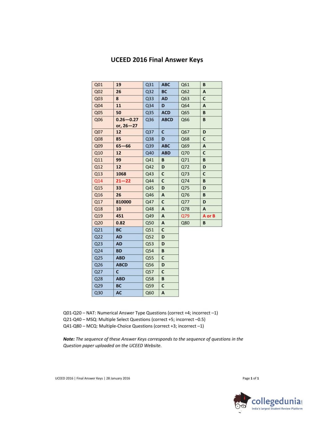 | UCEED 2016 Question Paper PDF | UCEED 2016 Answer Key PDF |