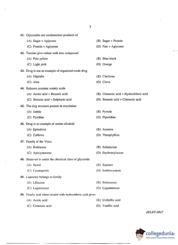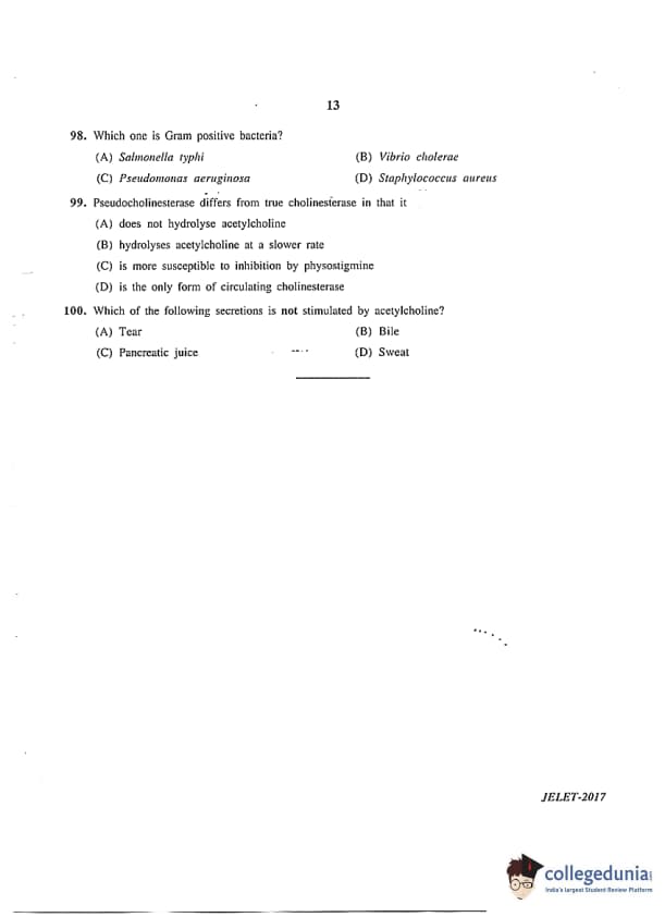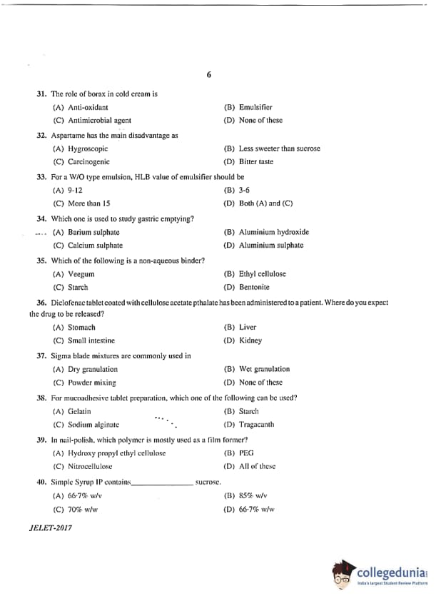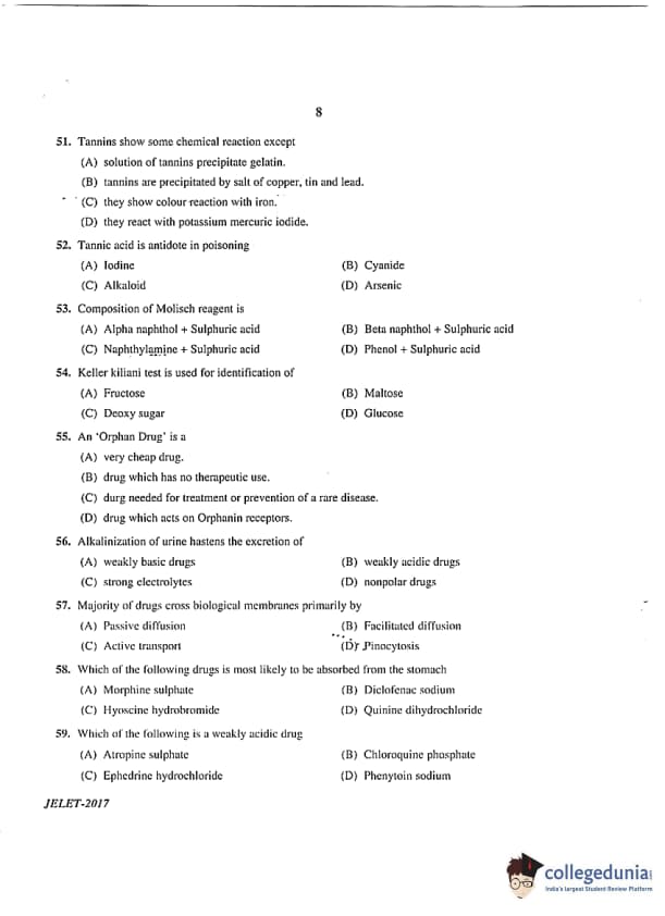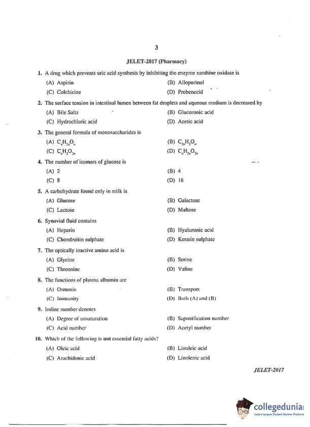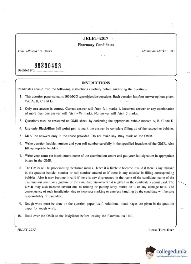 | JELET 2017 Pharmacy Question Paper PDF | JELET 2017 Pharmacy Answer Key PDF |