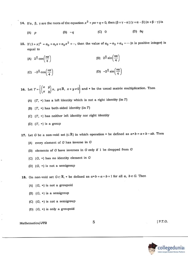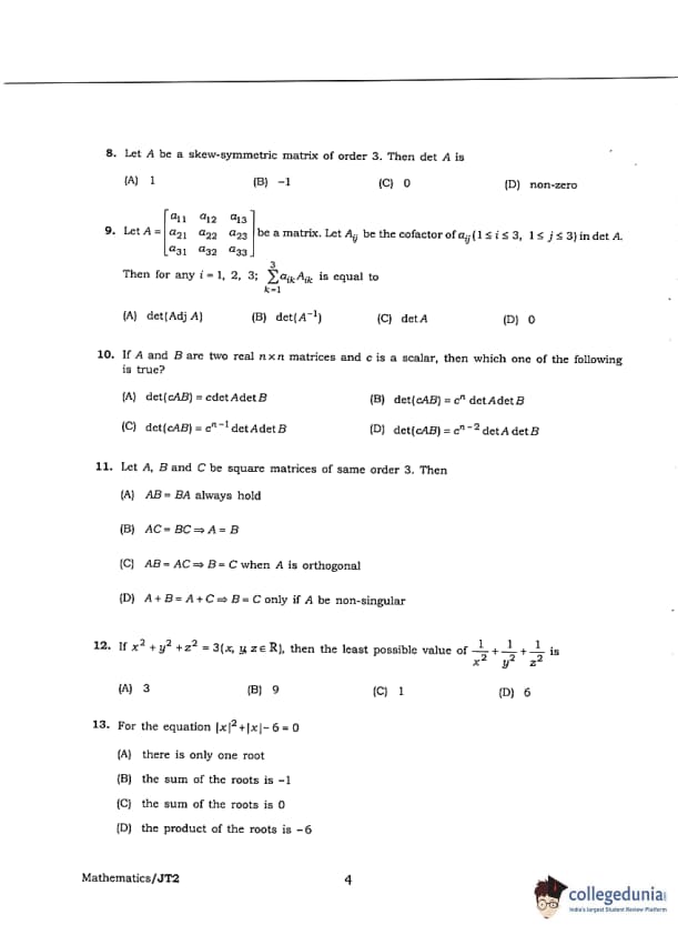 JELET 2018 B.Sc Question Paper with Answer Key PDFs