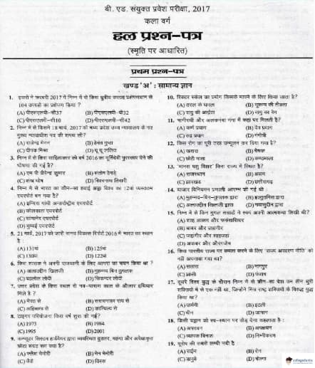 UP BED JEE 2017 ARTS Question paper with answer key pdf conducted on May 3 is available for download. The exam was successfully organized by Government of Uttar Pradesh. The question paper comprised a total of 100 questions.