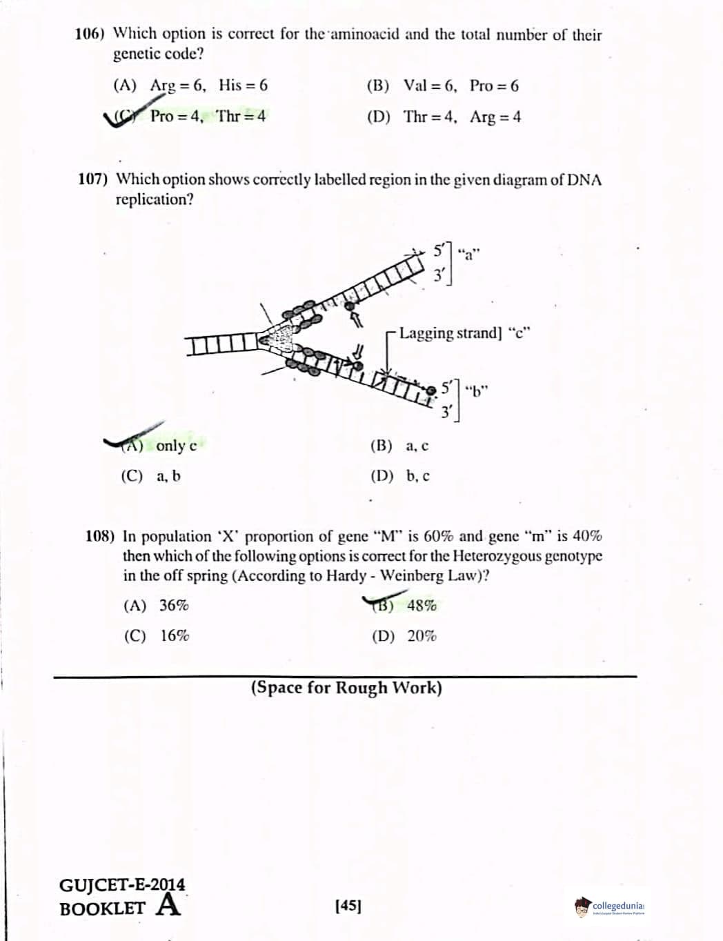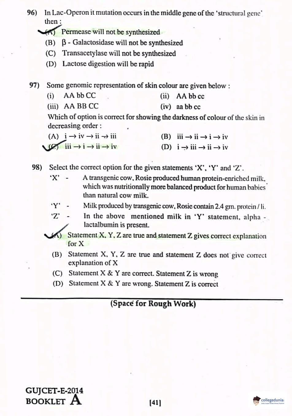 GUJCET 2014 Biology Question paper with answer key pdf conducted on May 8, 2014 is available for download. The exam was successfully organized by GSEB. The question paper comprised a total of 80 questions.