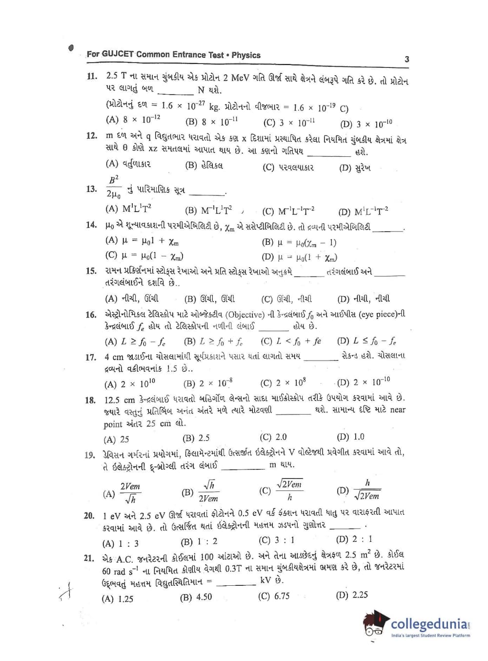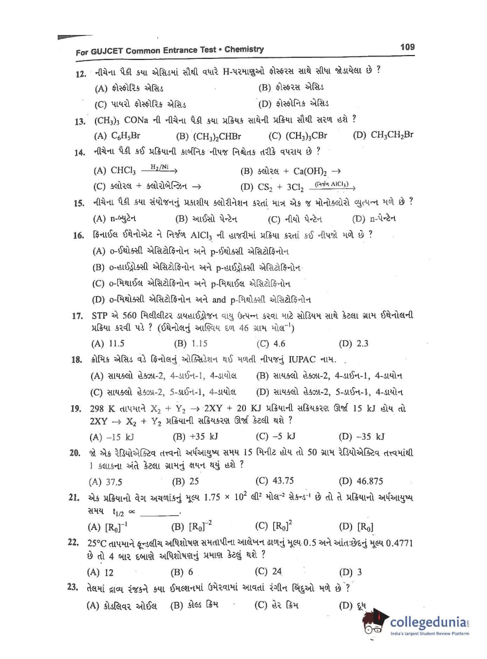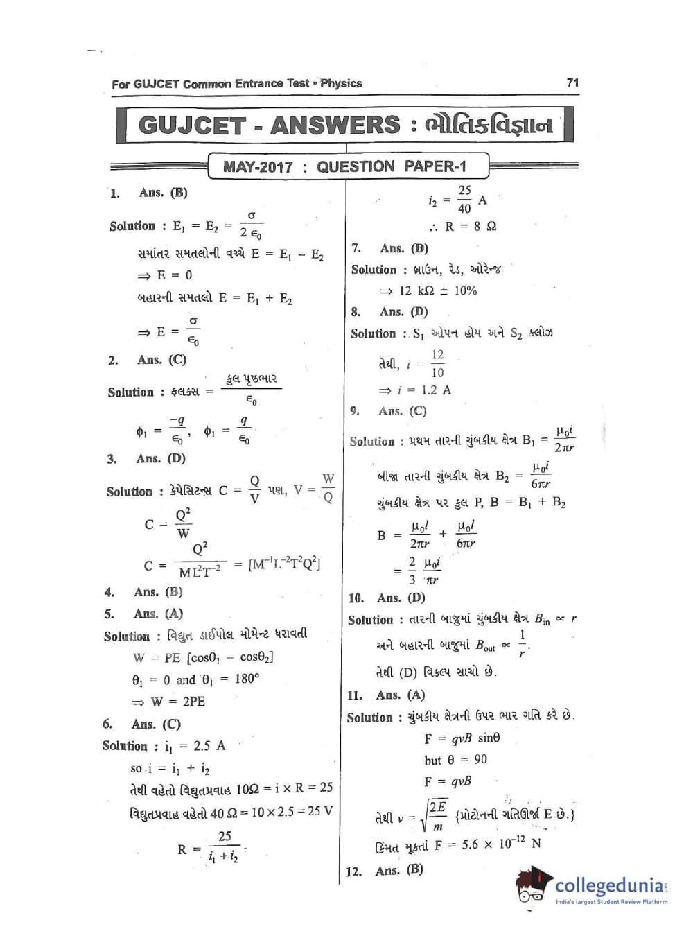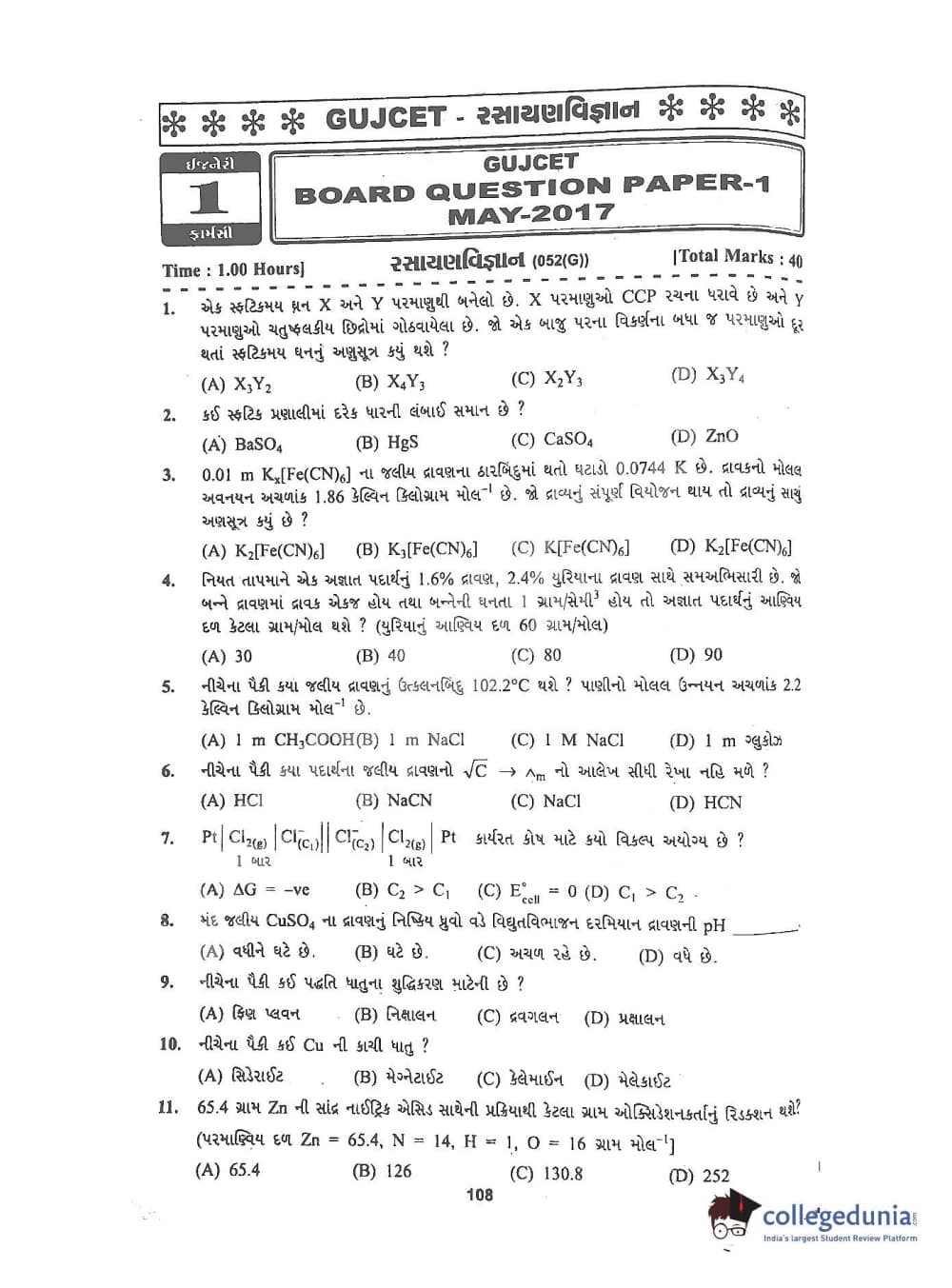 GUJCET 2017 Physics and Chemistry Question Paper with Answer Key PDFs in Gujarati