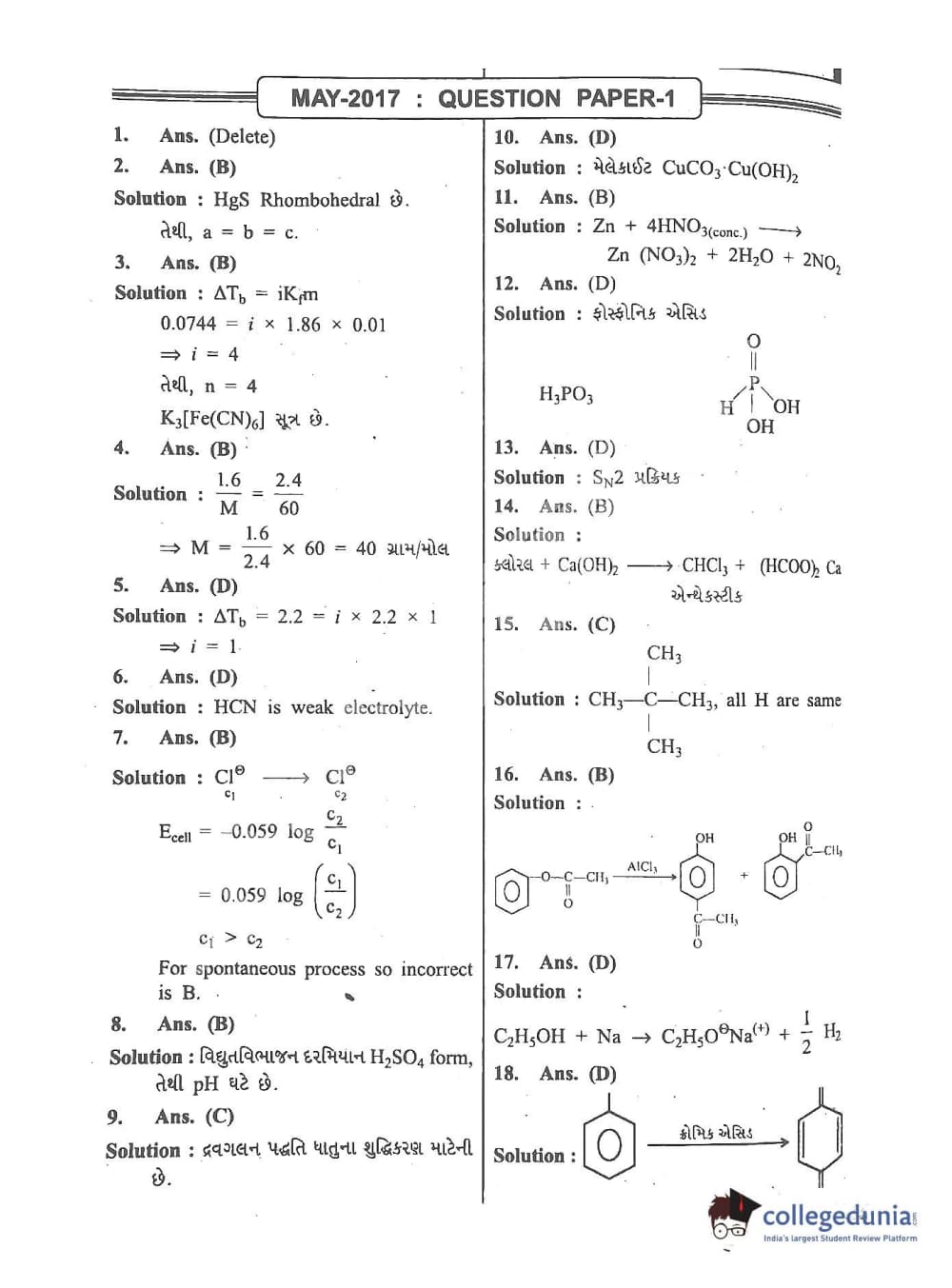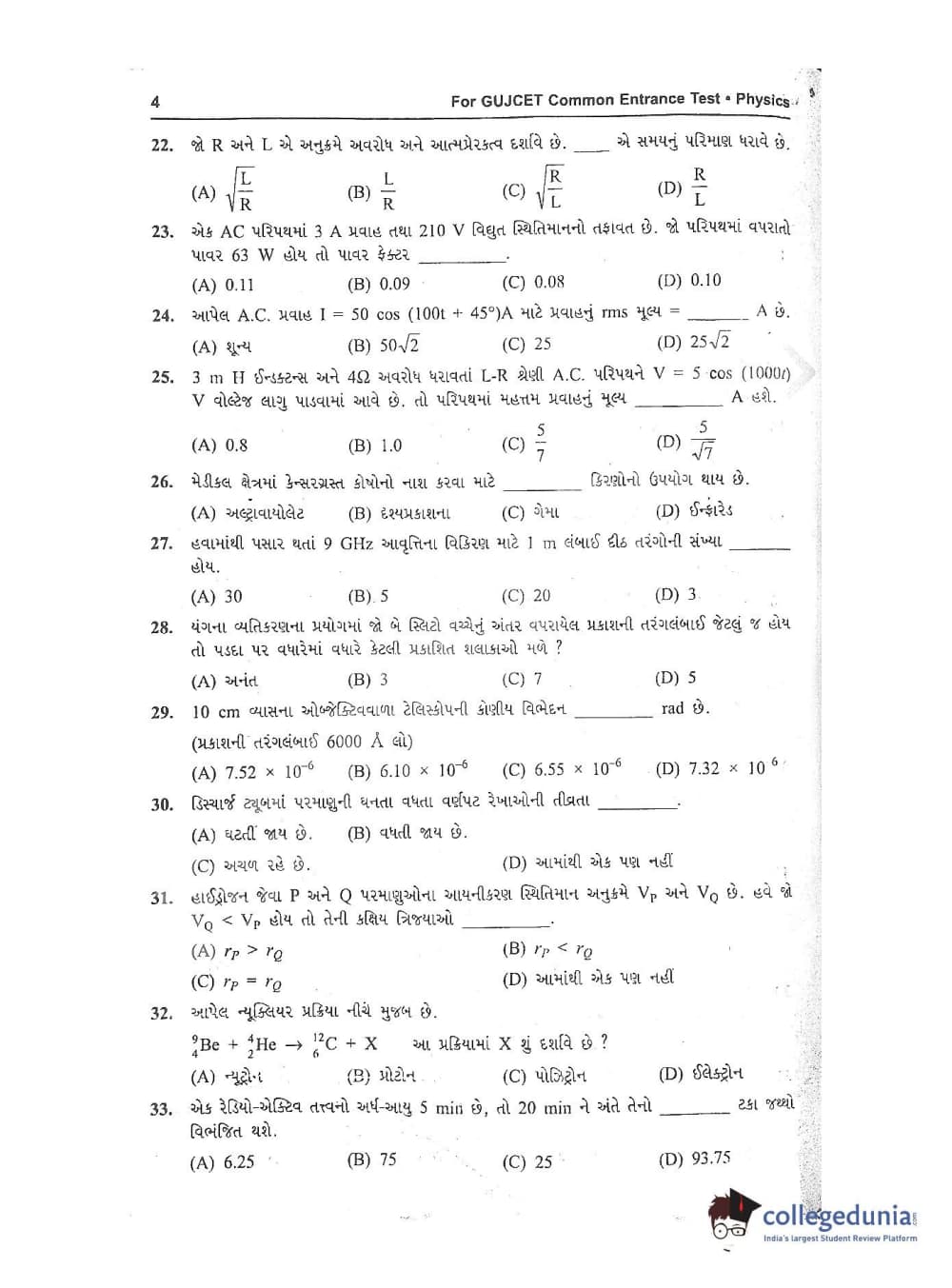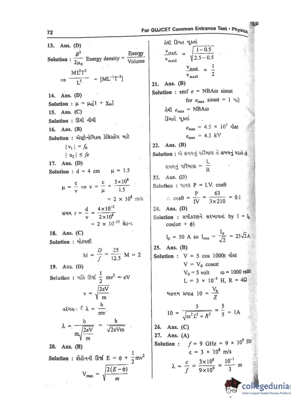 GUJCET 2017 Physics and Chemistry Question Paper with Answer Key PDFs in Gujarati