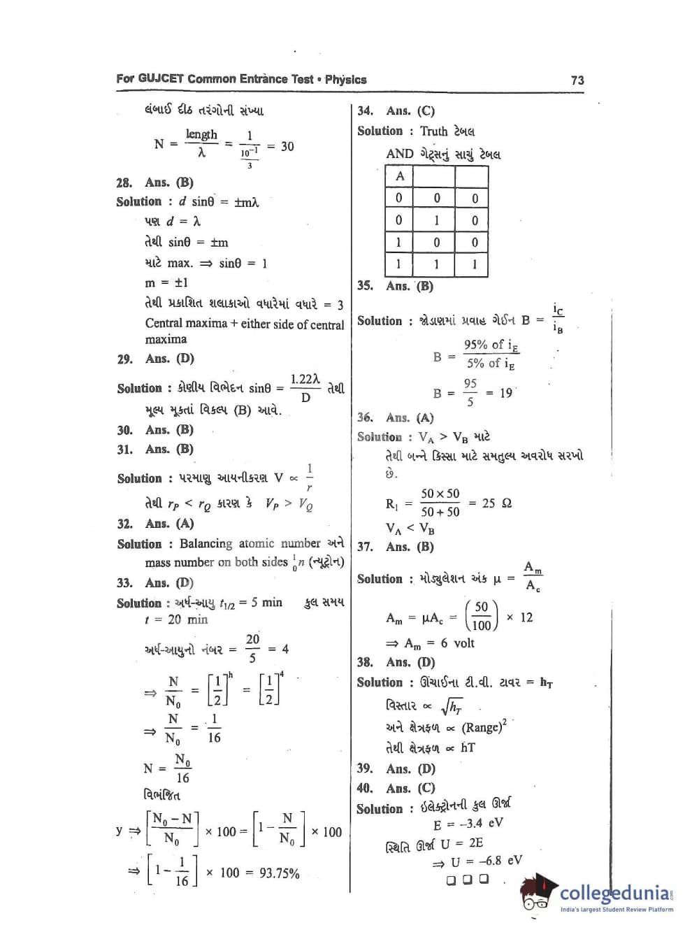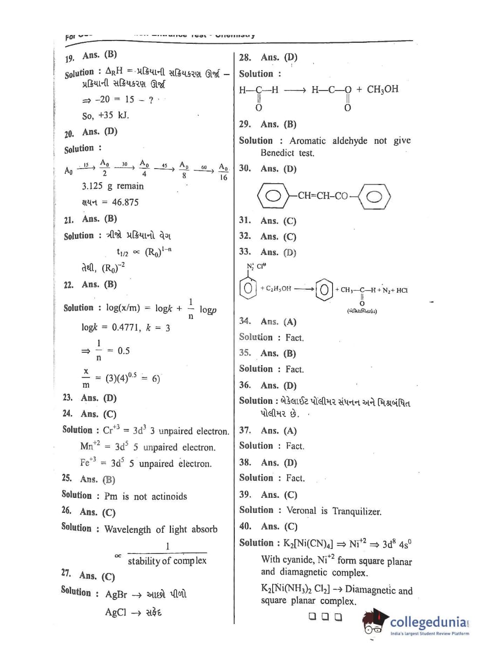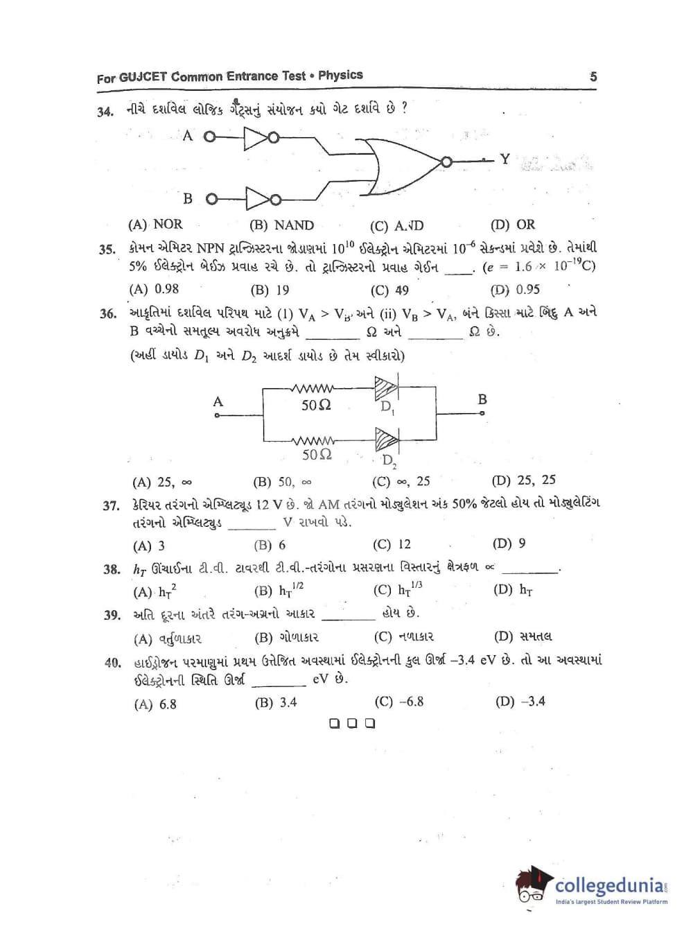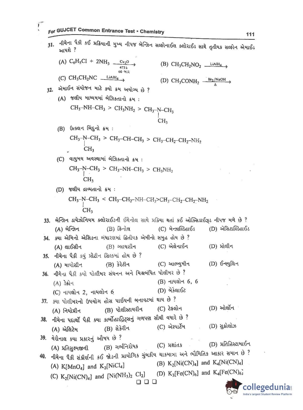GUJCET 2017 Physics and Chemistry Question Paper with Answer Key PDFs in Gujarati