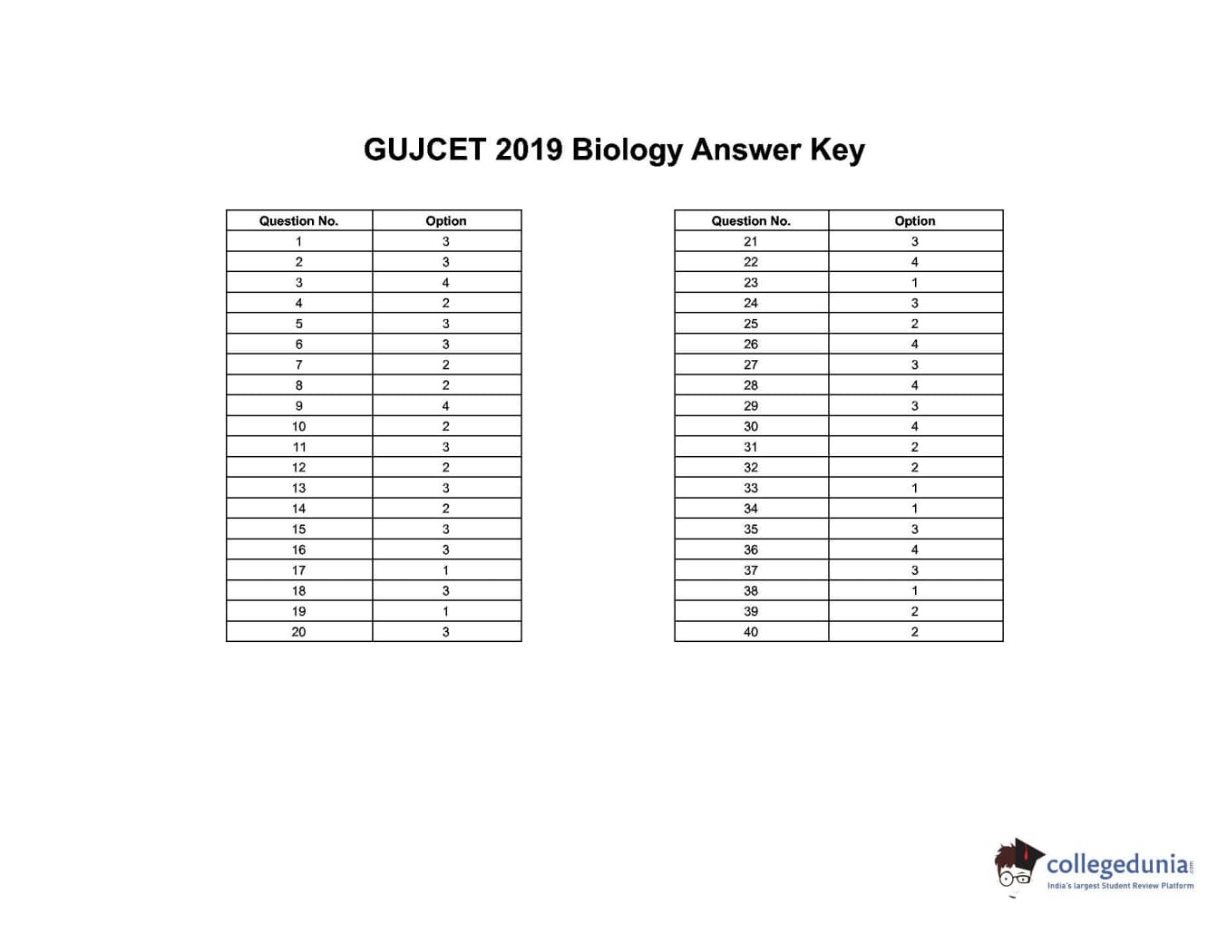 | GUJCET 2019 Biology Question Paper PDF | GUJCET 2019 Biology Answer Key PDF |