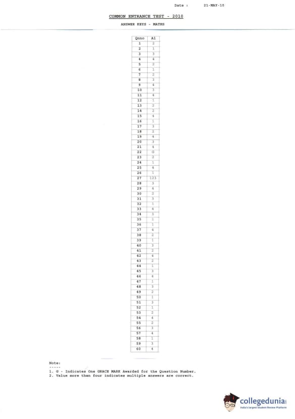| KCET 2010 Mathematics Question Paper 2010 PDF | KCET 2010 Mathematics Answer Key 2010 PDF |