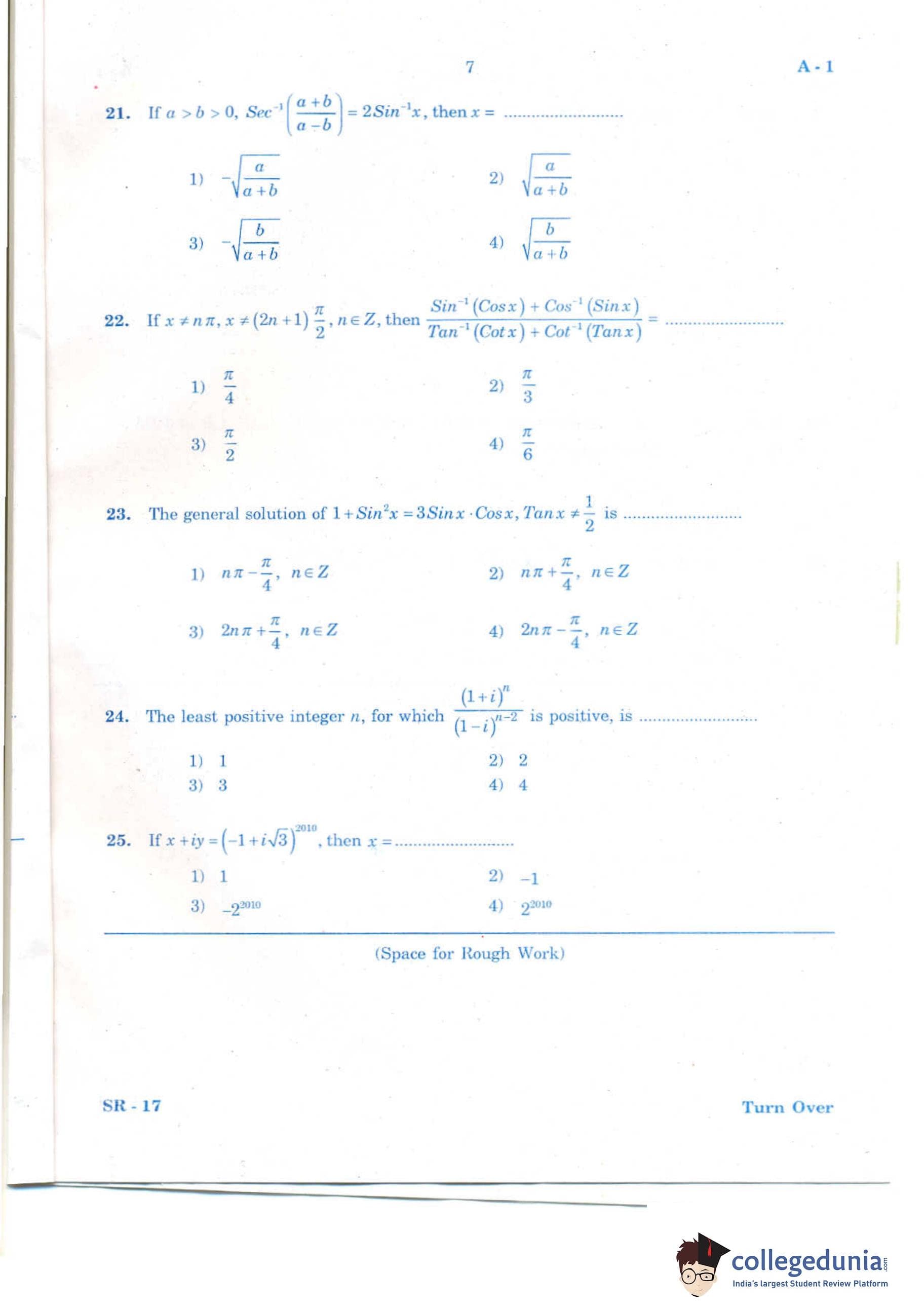 KCET 2010 Mathematics Question Paper with Answer Key PDF