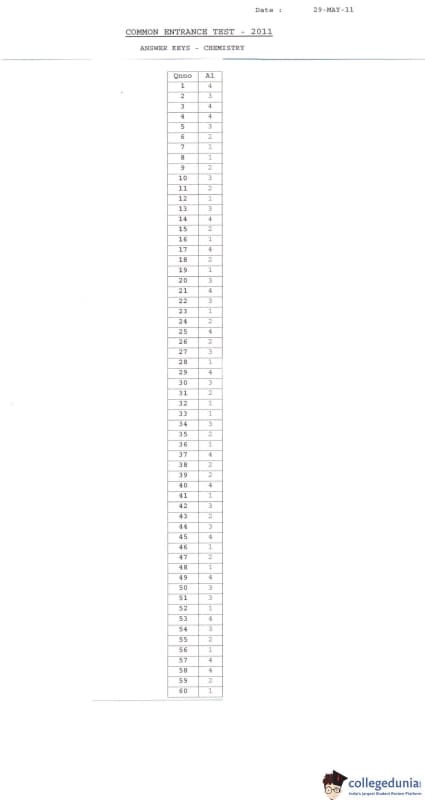 | KCET 2011 Chemistry Question Paper 2011 PDF | KCET 2011 Chemistry Answer Key 2011 PDF |