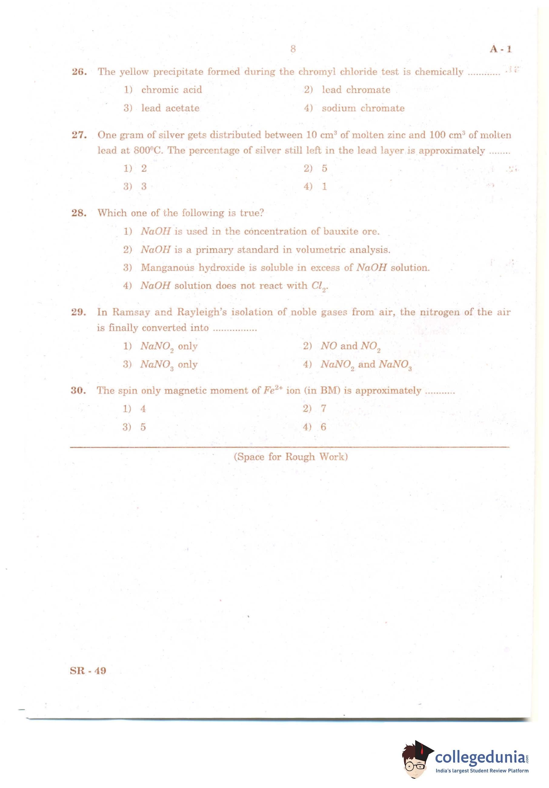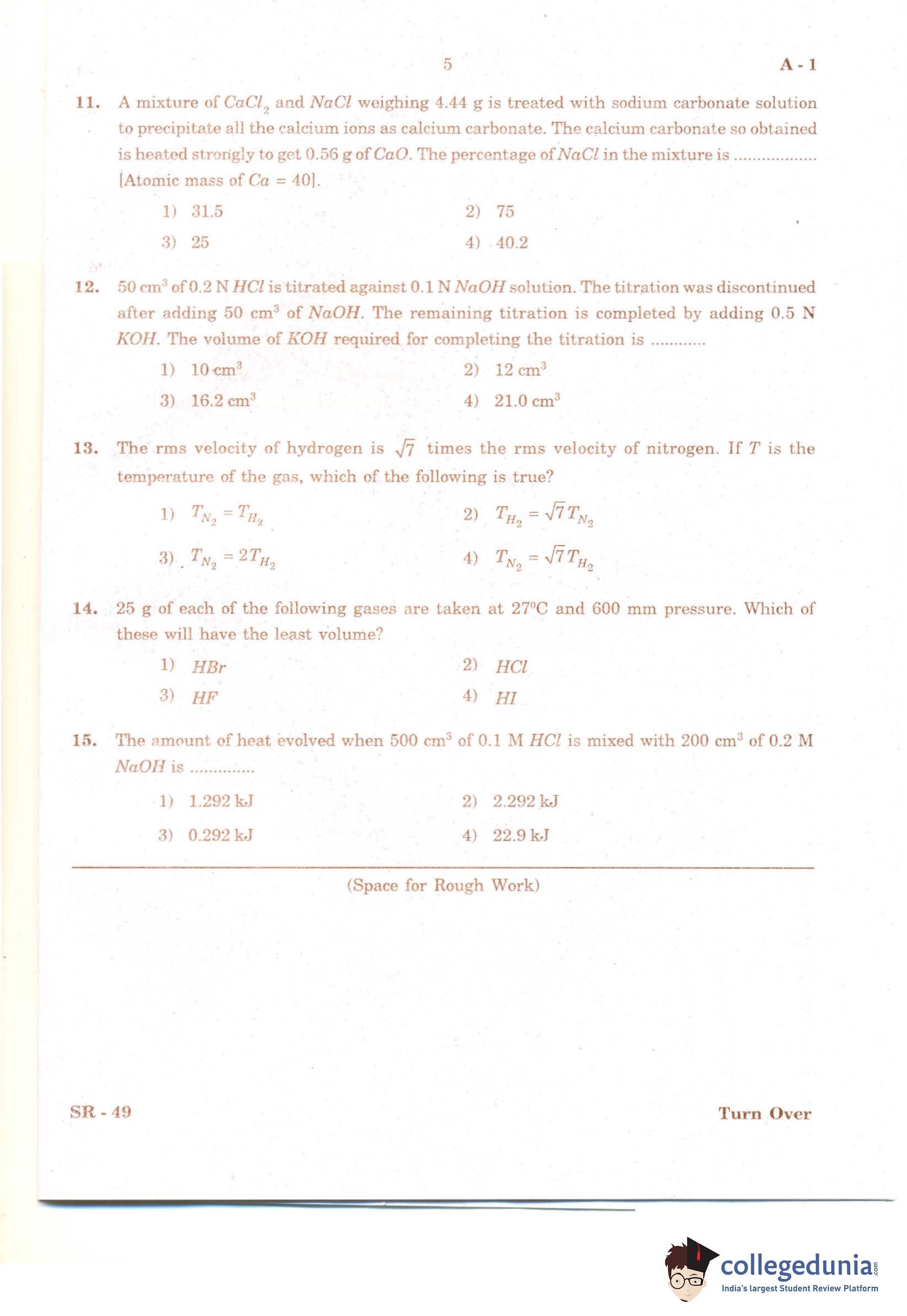 KCET 2011 Chemistry Question Paper with Answer Key PDF
