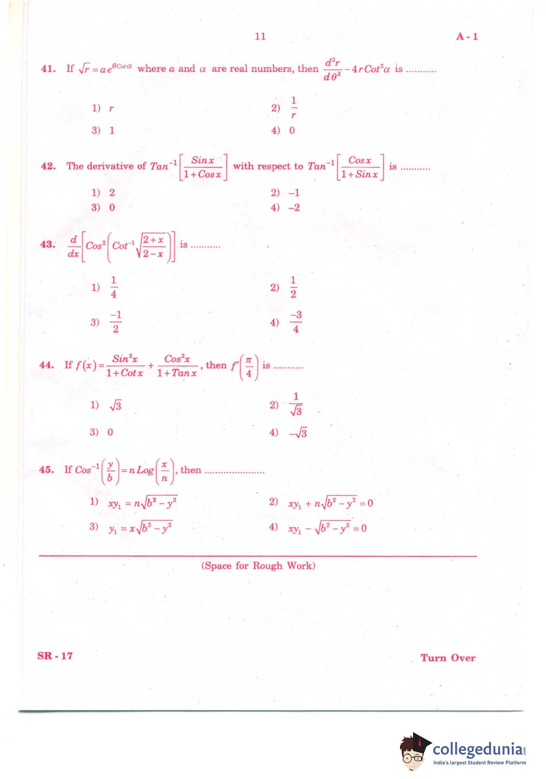 KCET 2011 Mathematics Question Paper with Answer Key PDF