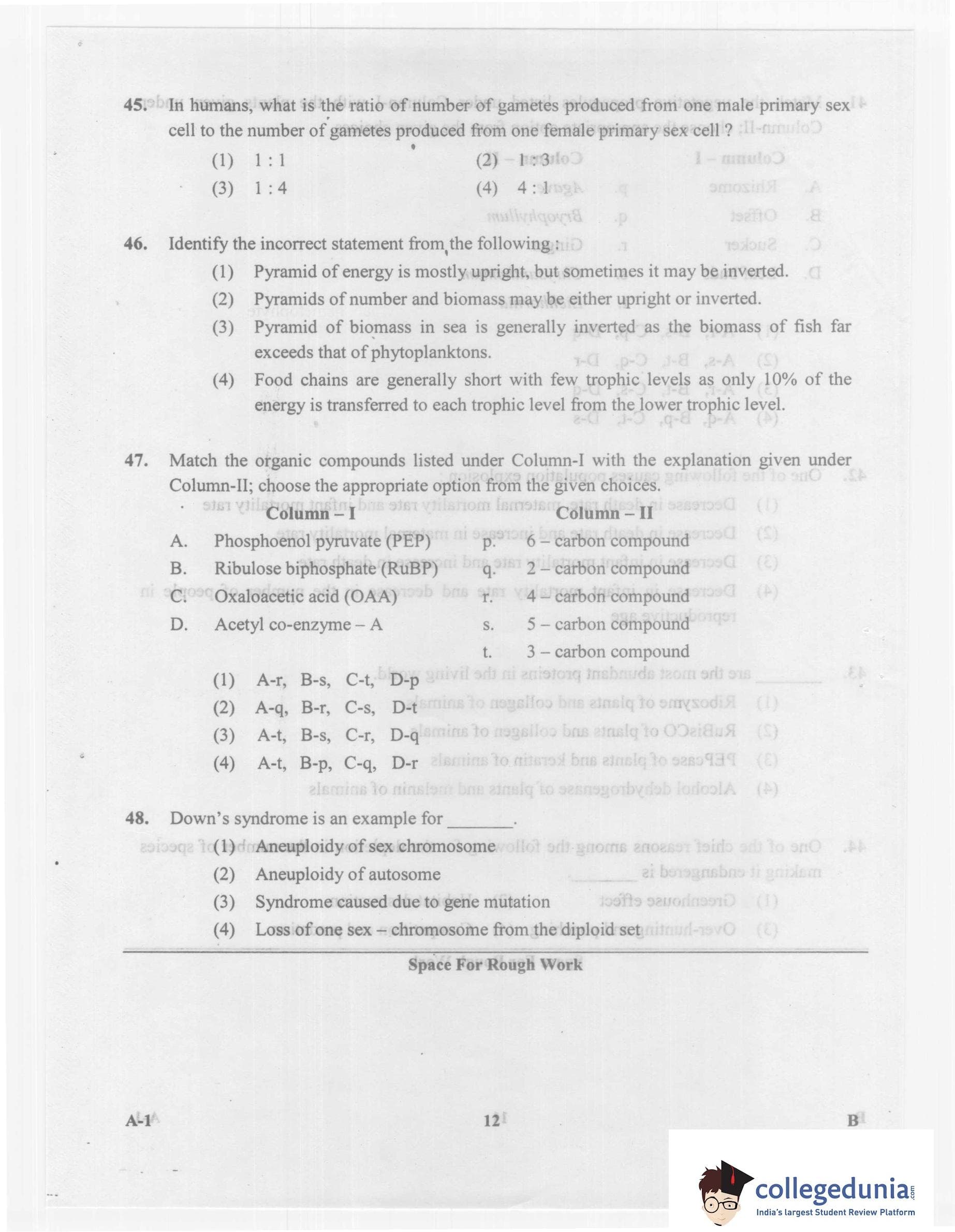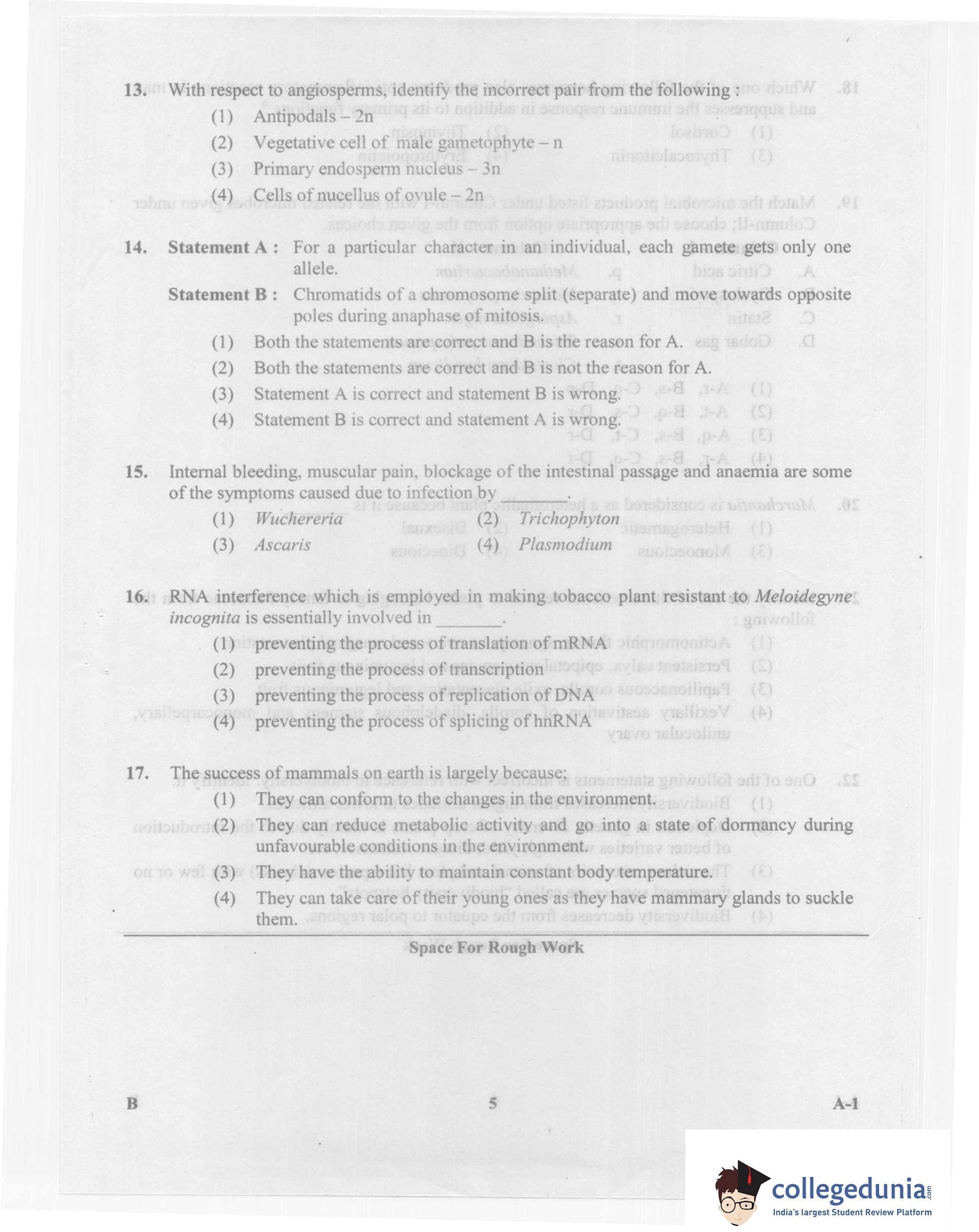 KCET 2014 Biology Question Paper with Answer Key PDF
