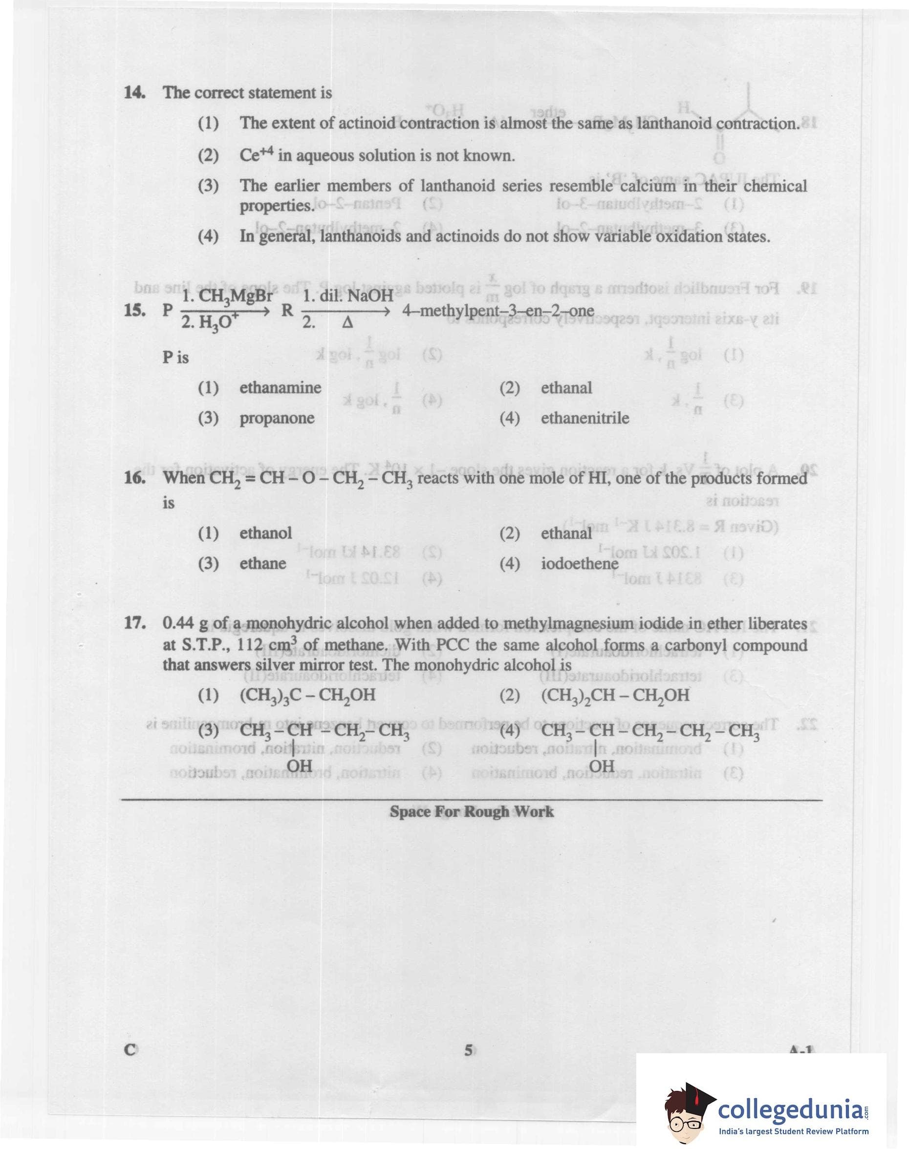 KCET 2014 Chemistry Question Paper with Answer Key PDF