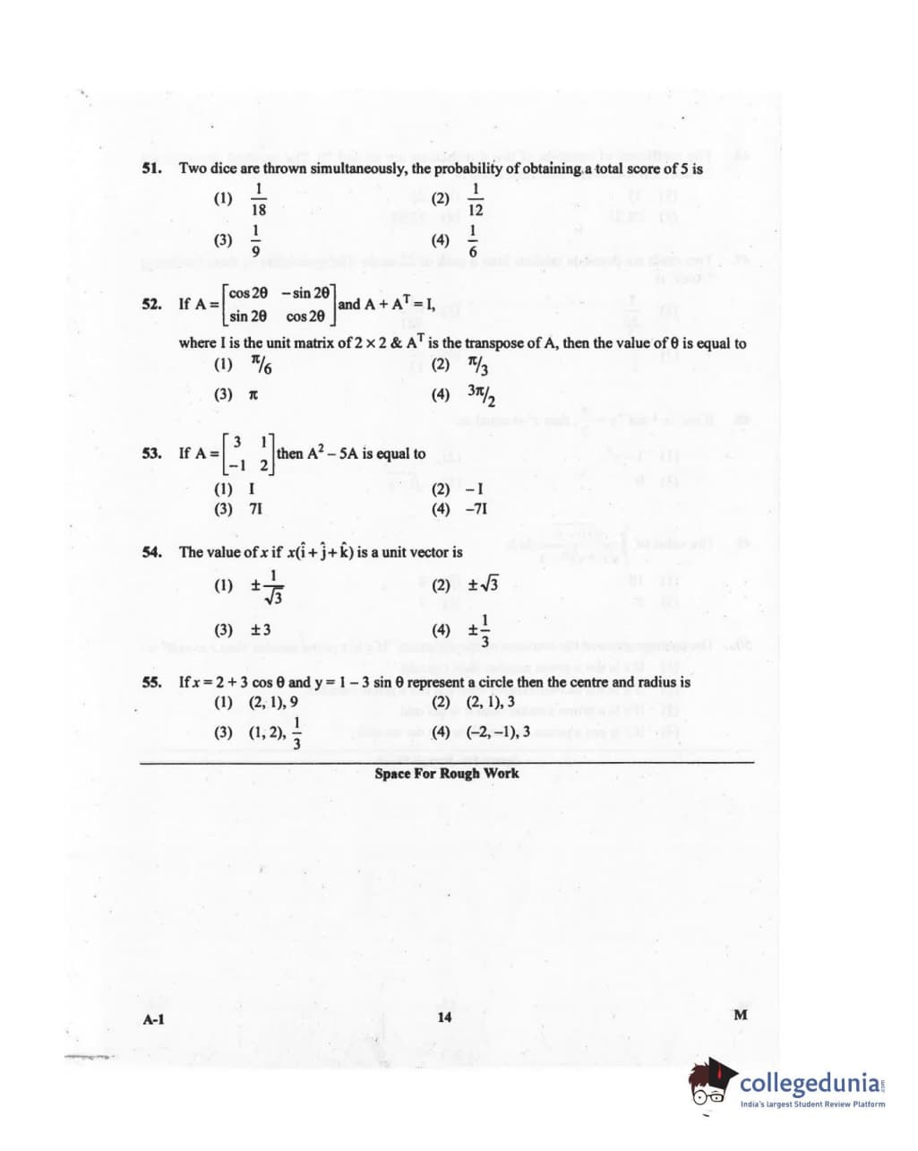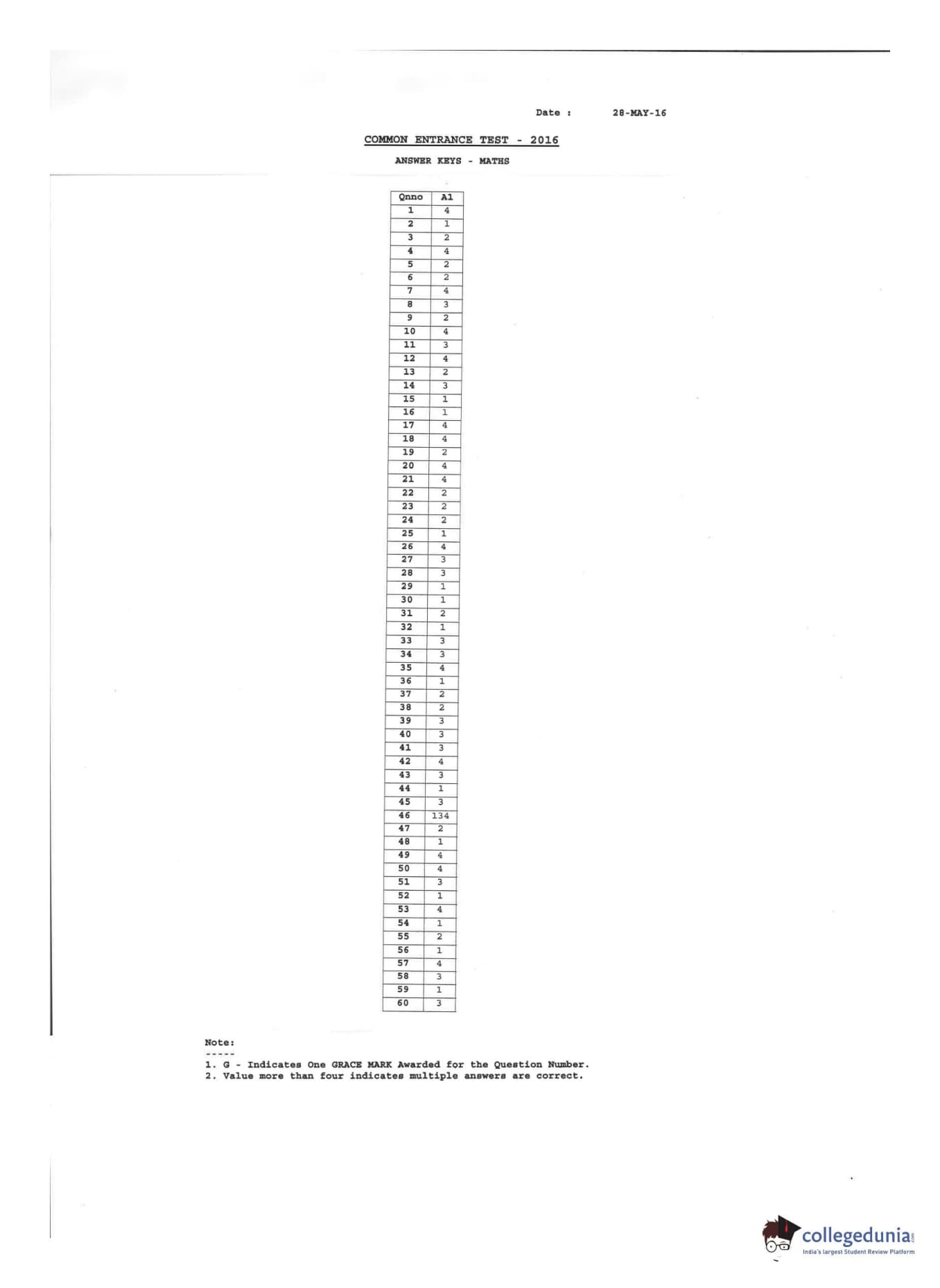 KCET 2016 Mathematics Question paper with answer key pdf conducted on May 4, 2016 in Afternoon Session 2:30 PM to 3:50 PM for A-1 is available for download. The exam was successfully organized by Karnataka Examinations Authority (KEA). The question paper comprised a total of 60 questions.