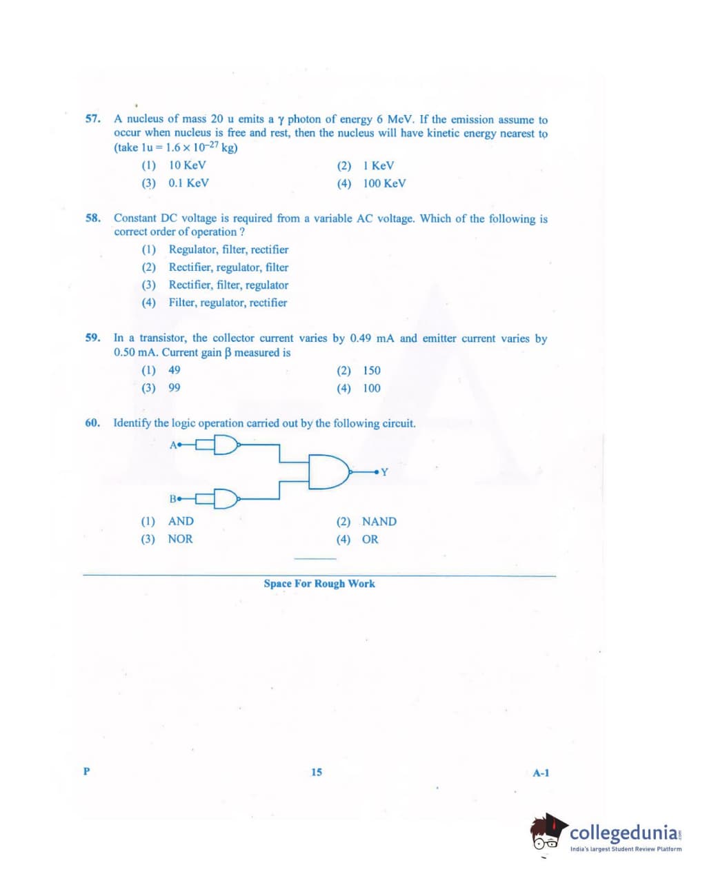 KCET 2016 Physics Question paper with answer key pdf conducted on May 5, 2016 in Morning Session 10:30 AM to 11:50 AM for A-1 is available for download. The exam was successfully organized by Karnataka Examinations Authority (KEA). The question paper comprised a total of 60 questions.