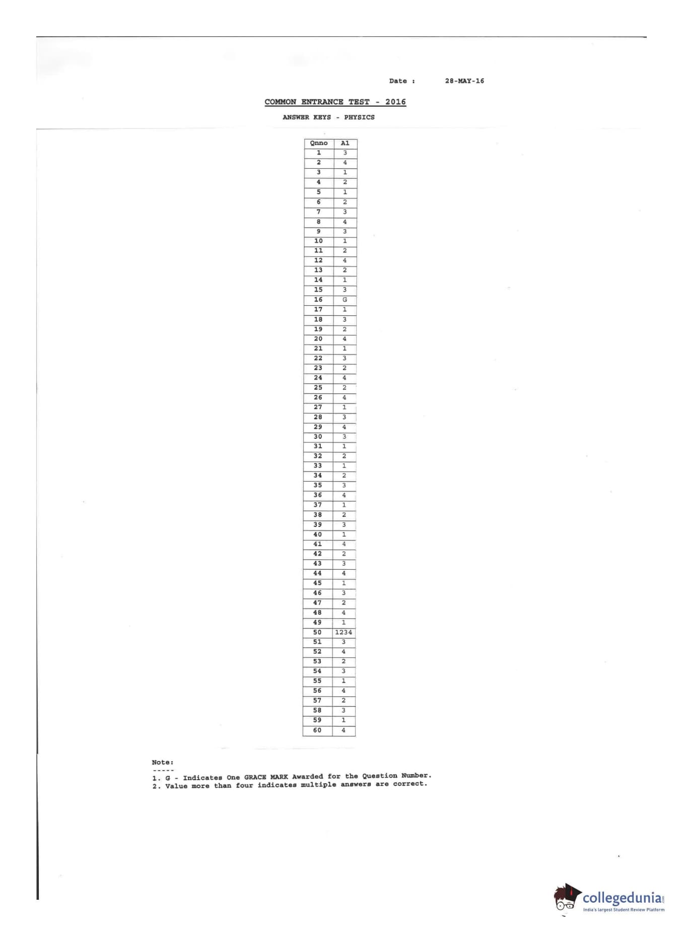 | KCET 2016 Physics Question Paper PDF | KCET 2016 Physics Answer Key PDF |