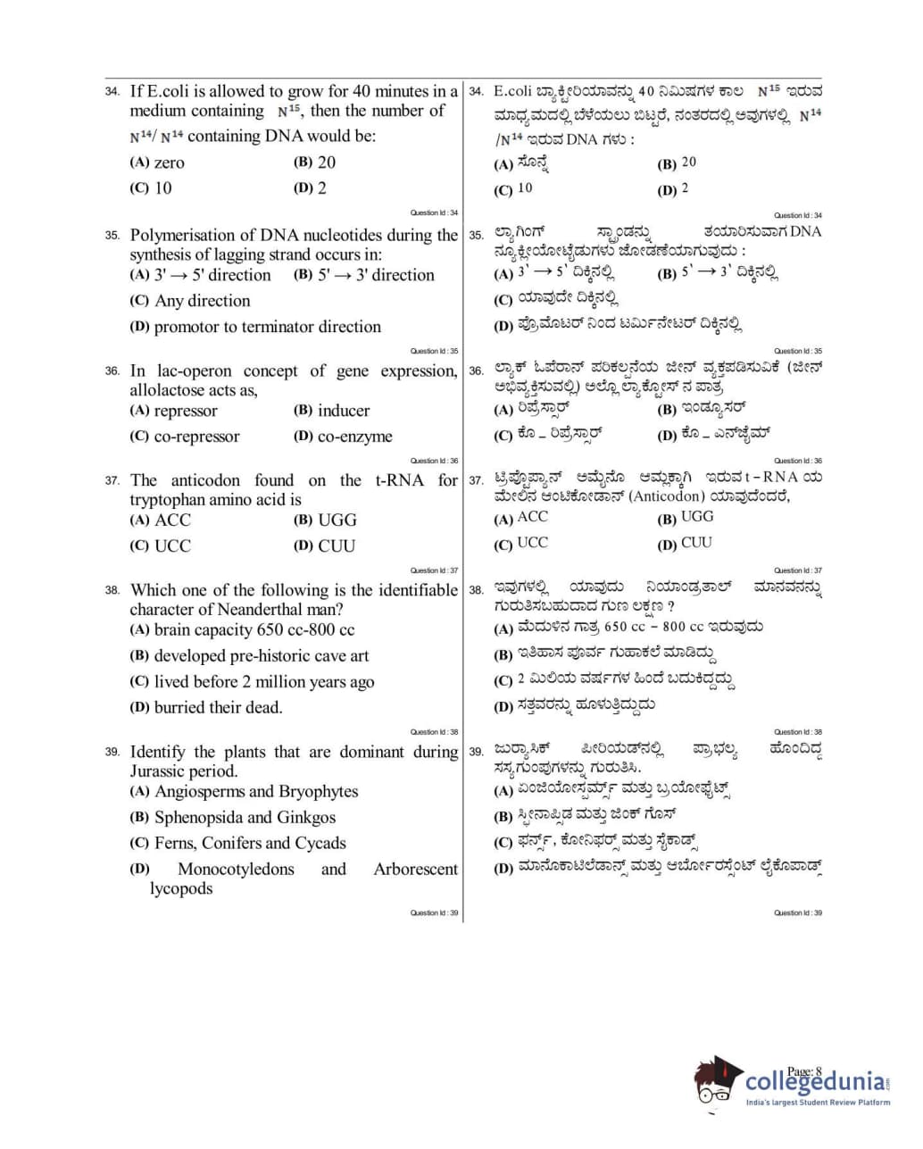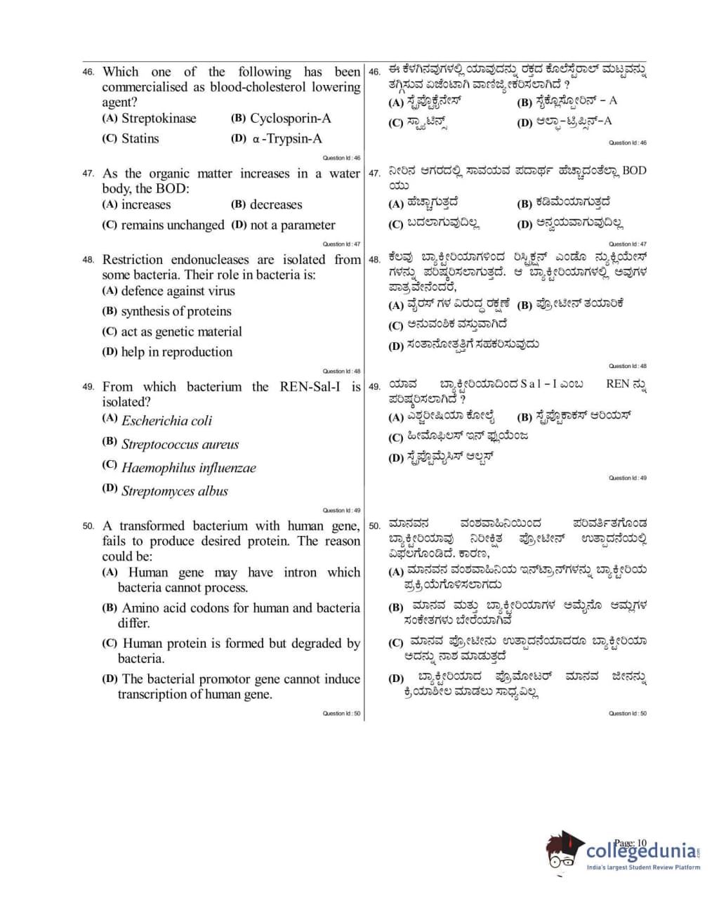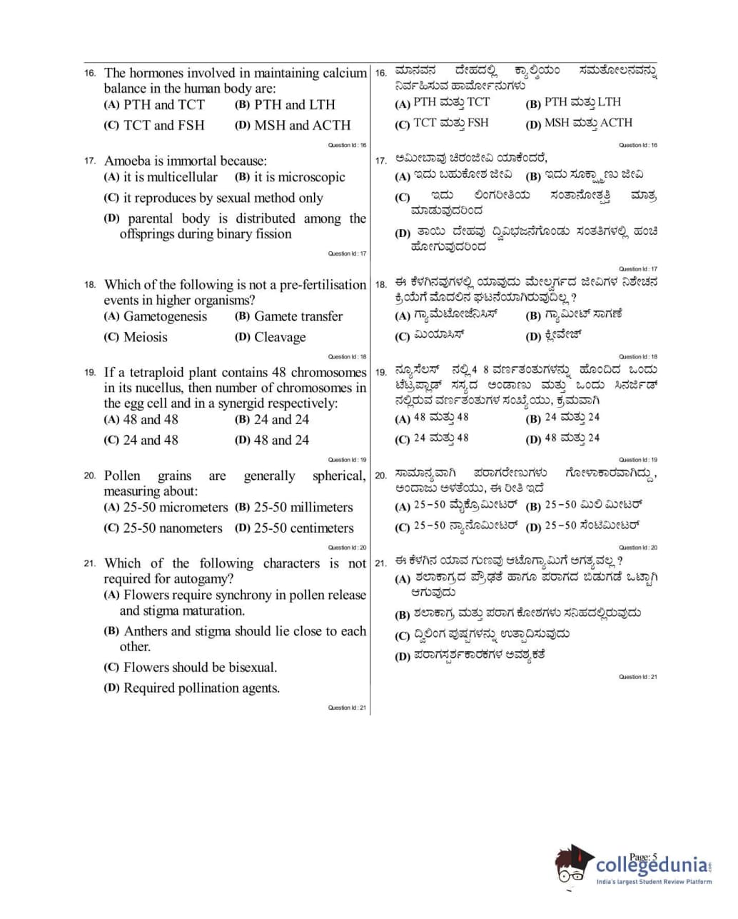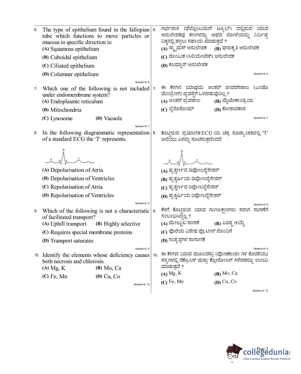 KCET 2017 Biology Question Paper with Answer Key PDF for Morning Session