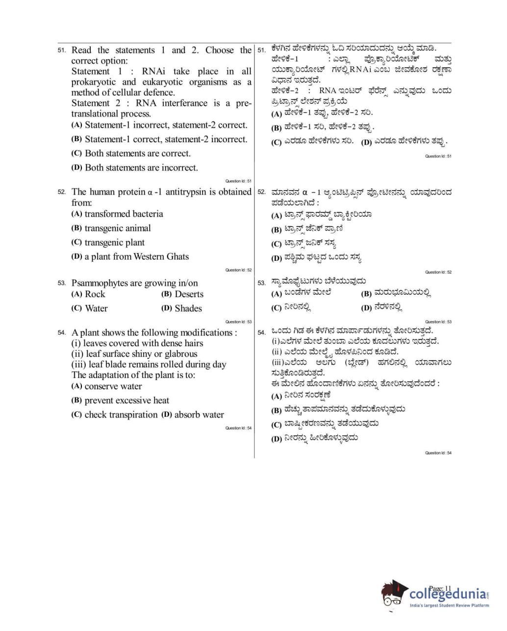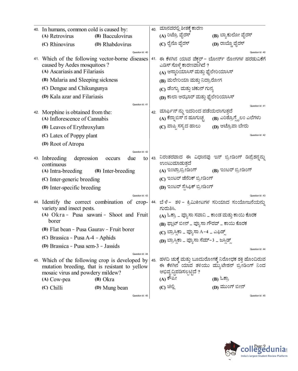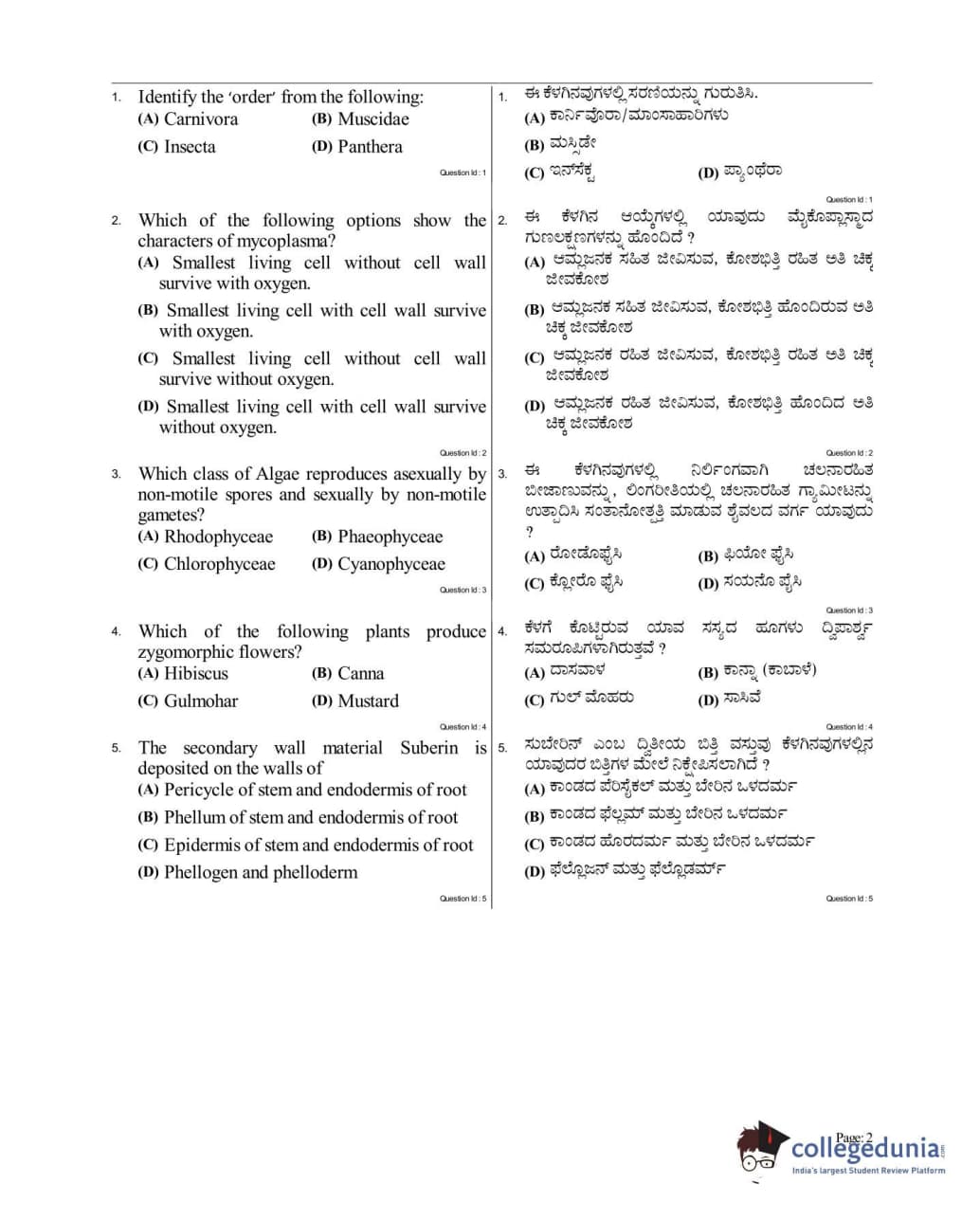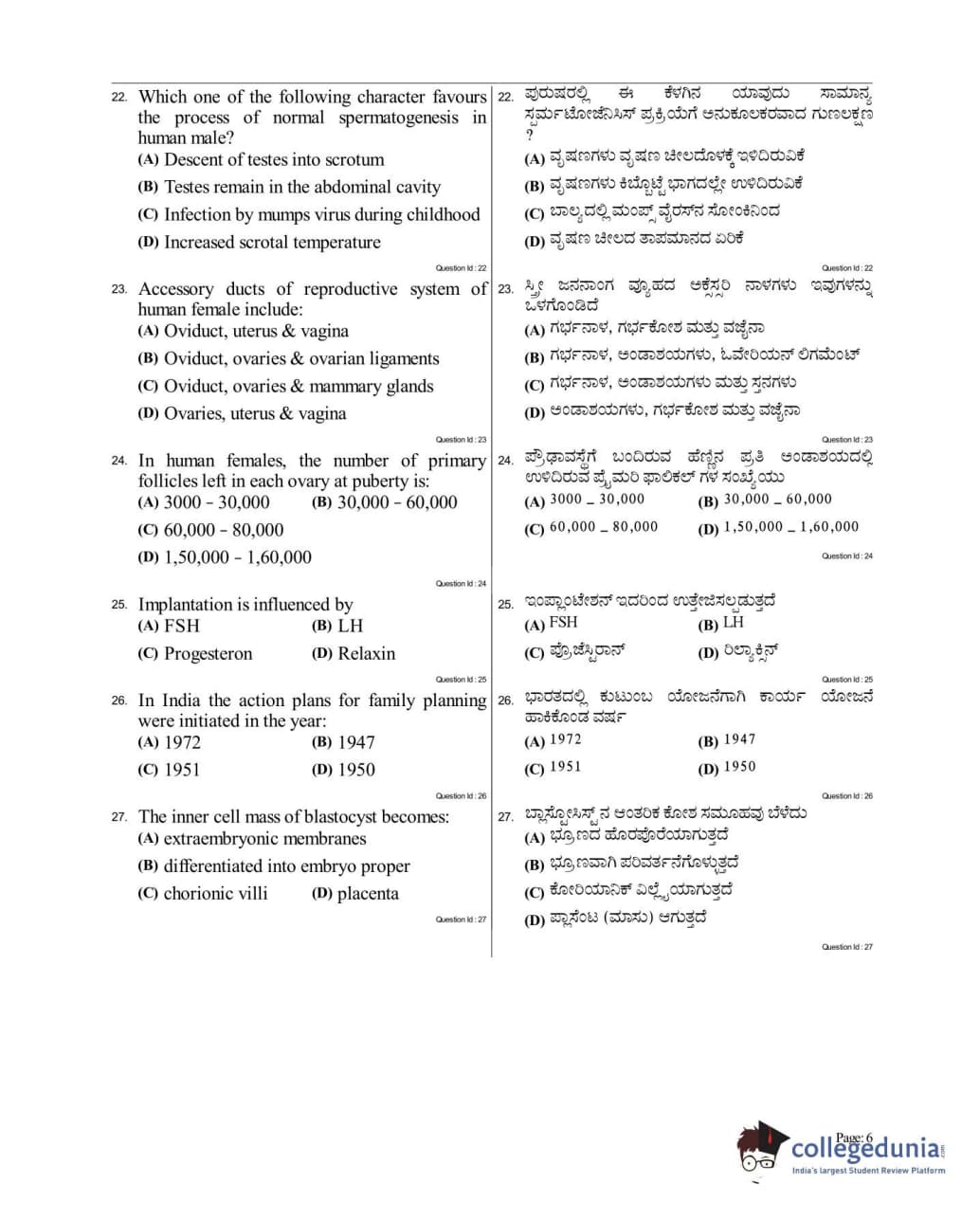 KCET 2017 Biology Question Paper with Answer Key PDF for Morning Session