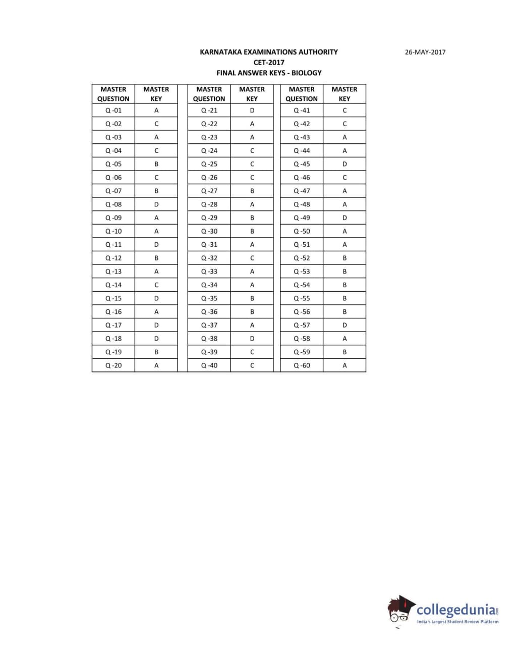 | KCET 2017 Biology Question Paper PDF | KCET 2017 Biology Answer Key PDF |