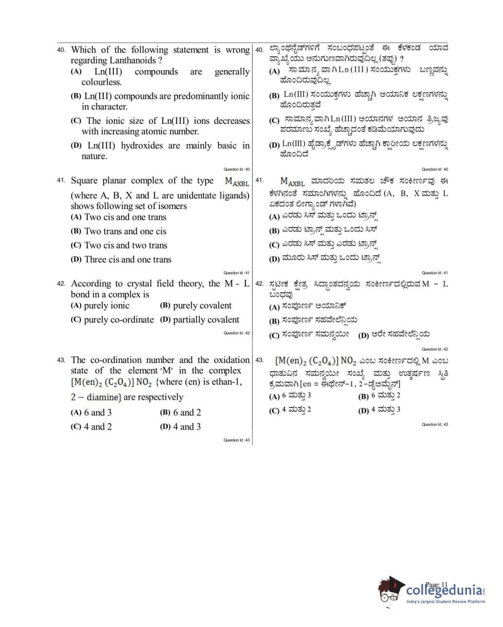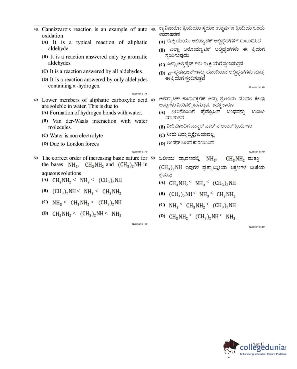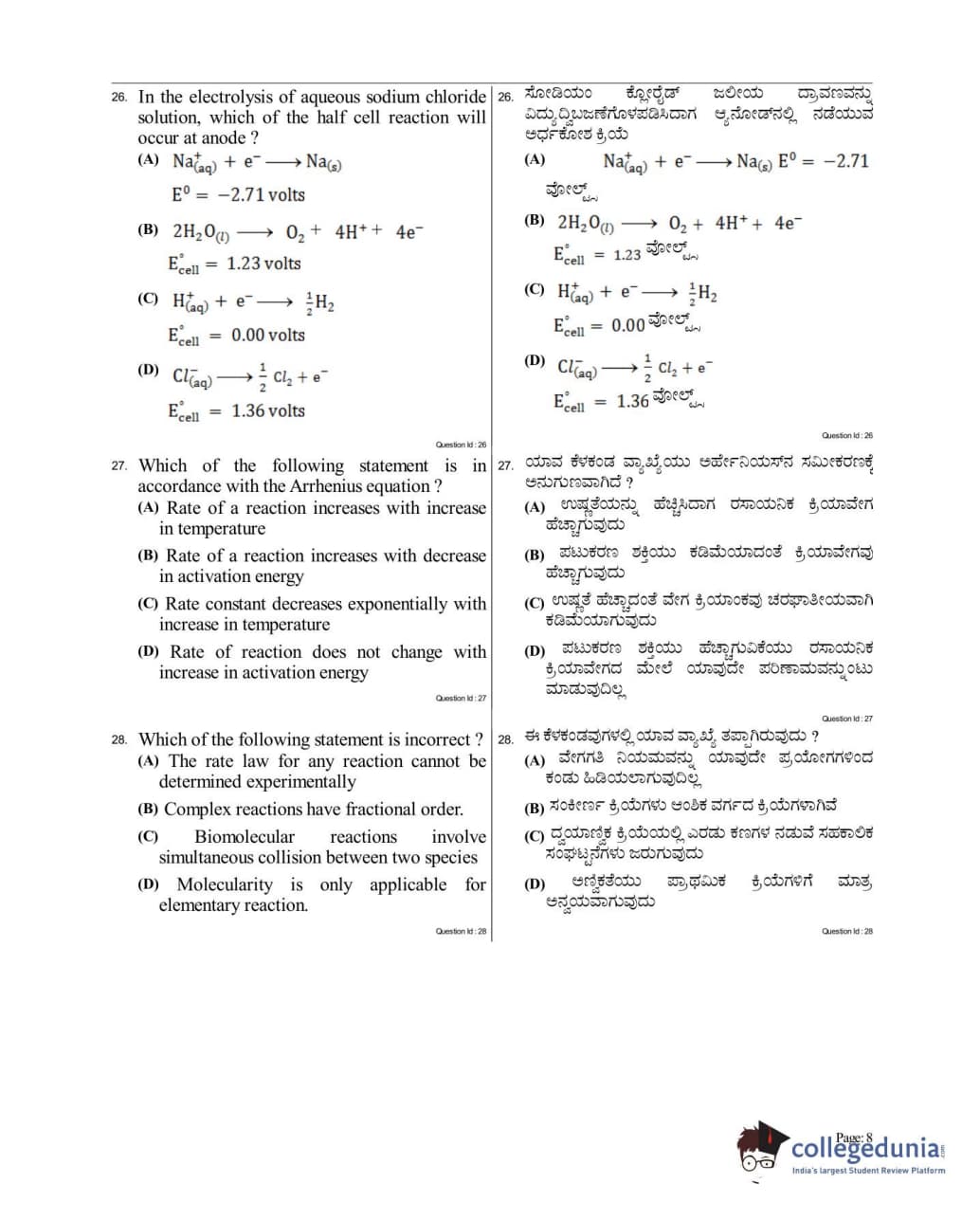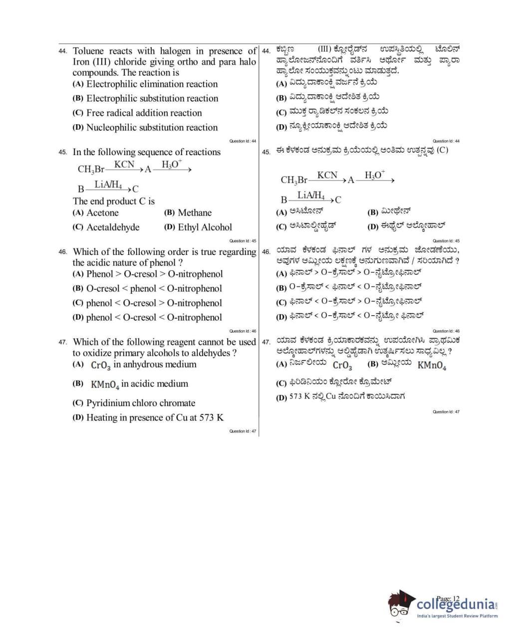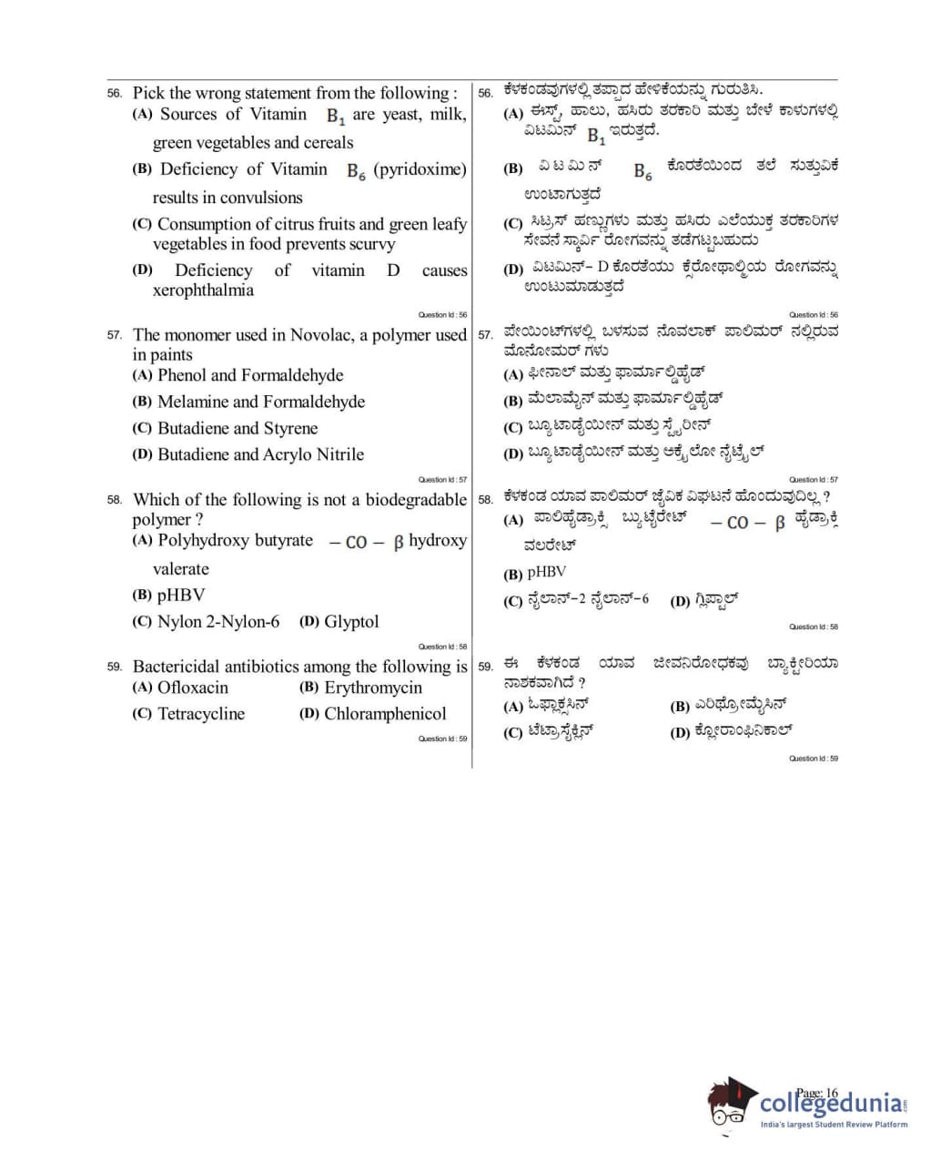 Collegedunia has provided KCET Previous Year Question paper pdf with answer key in the links given below: