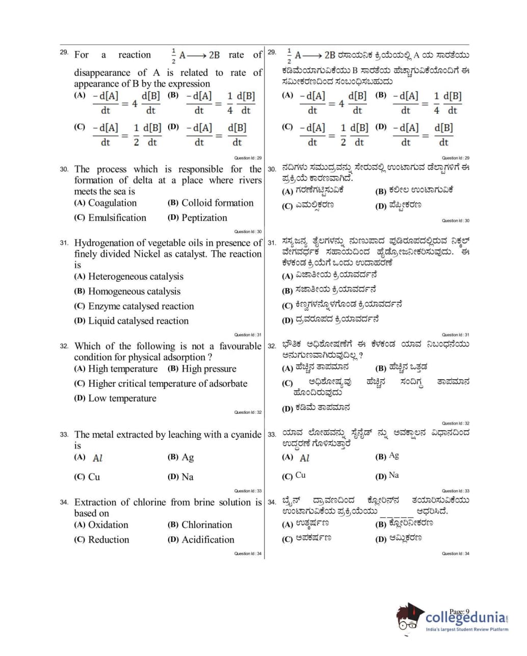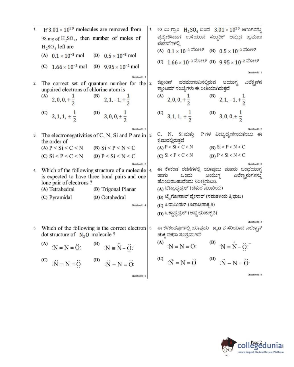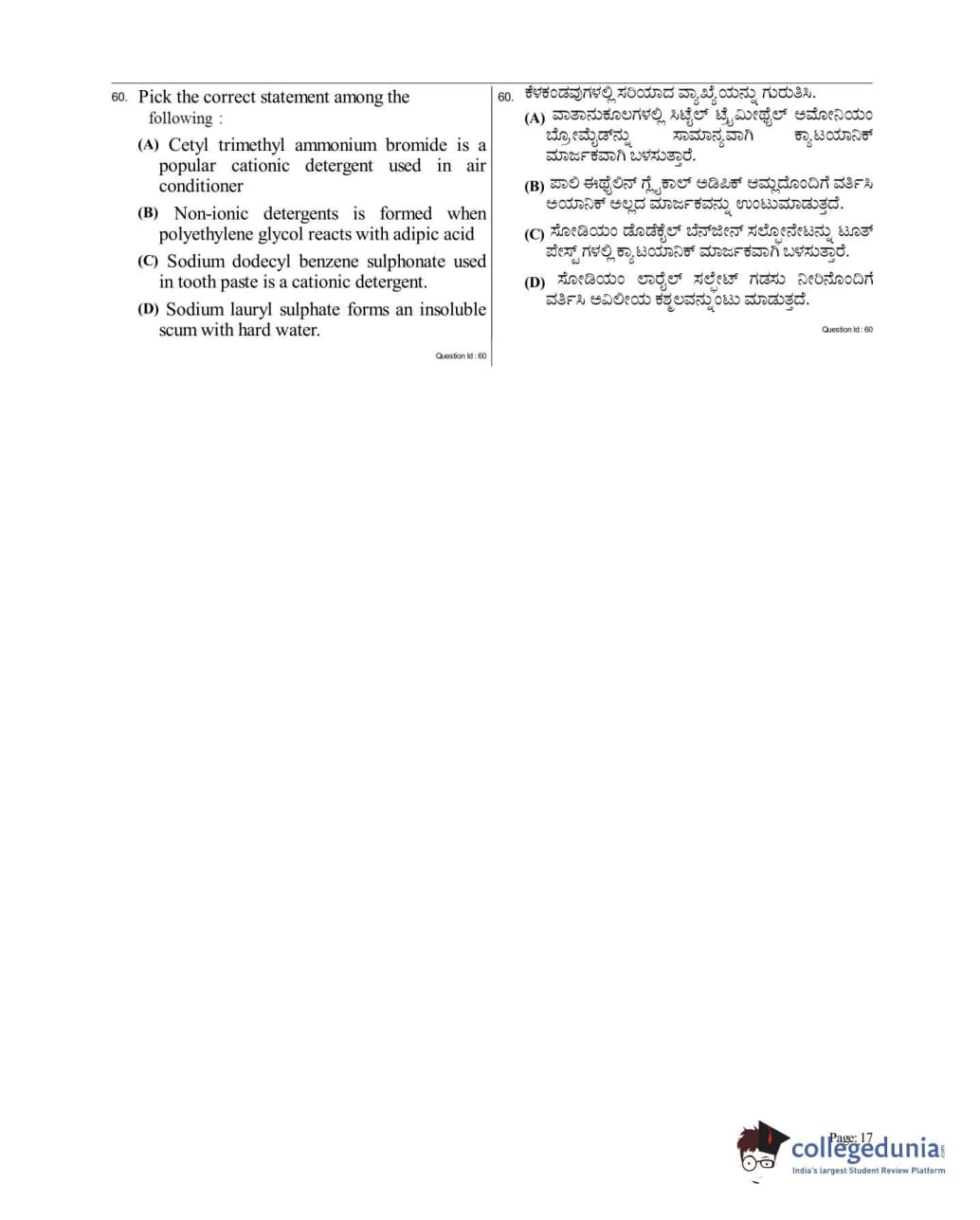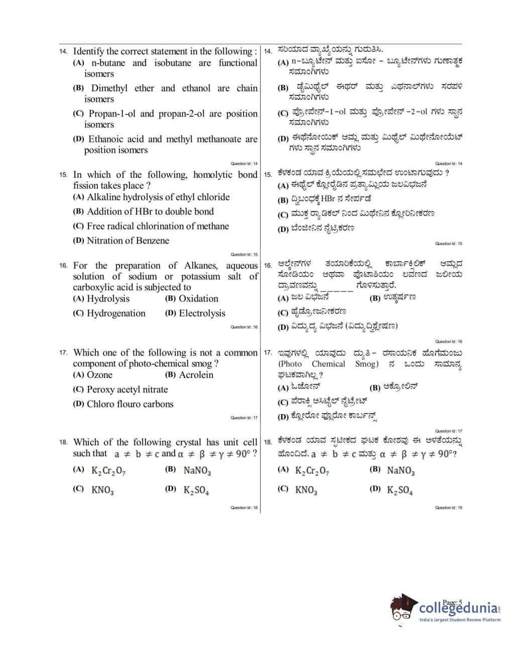 KCET 2017 Chemistry Question Paper with Answer Key PDF for Afternoon Session