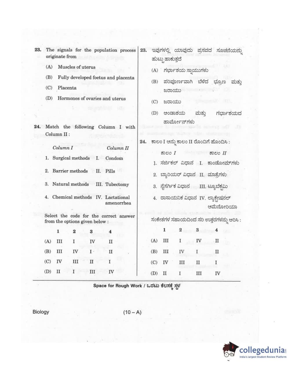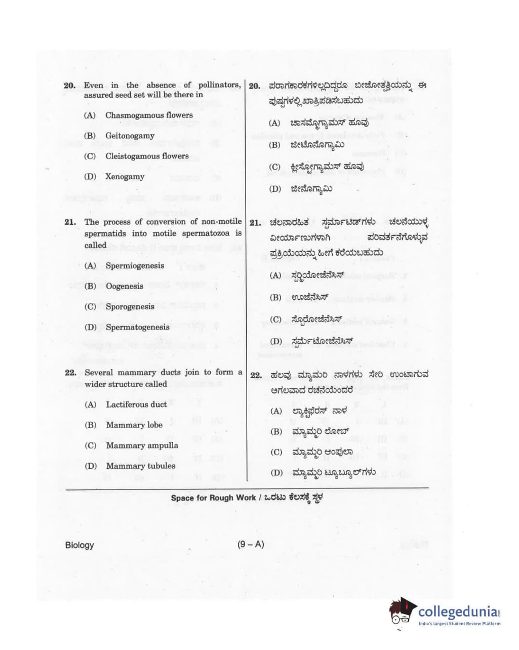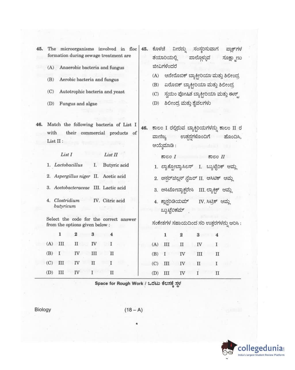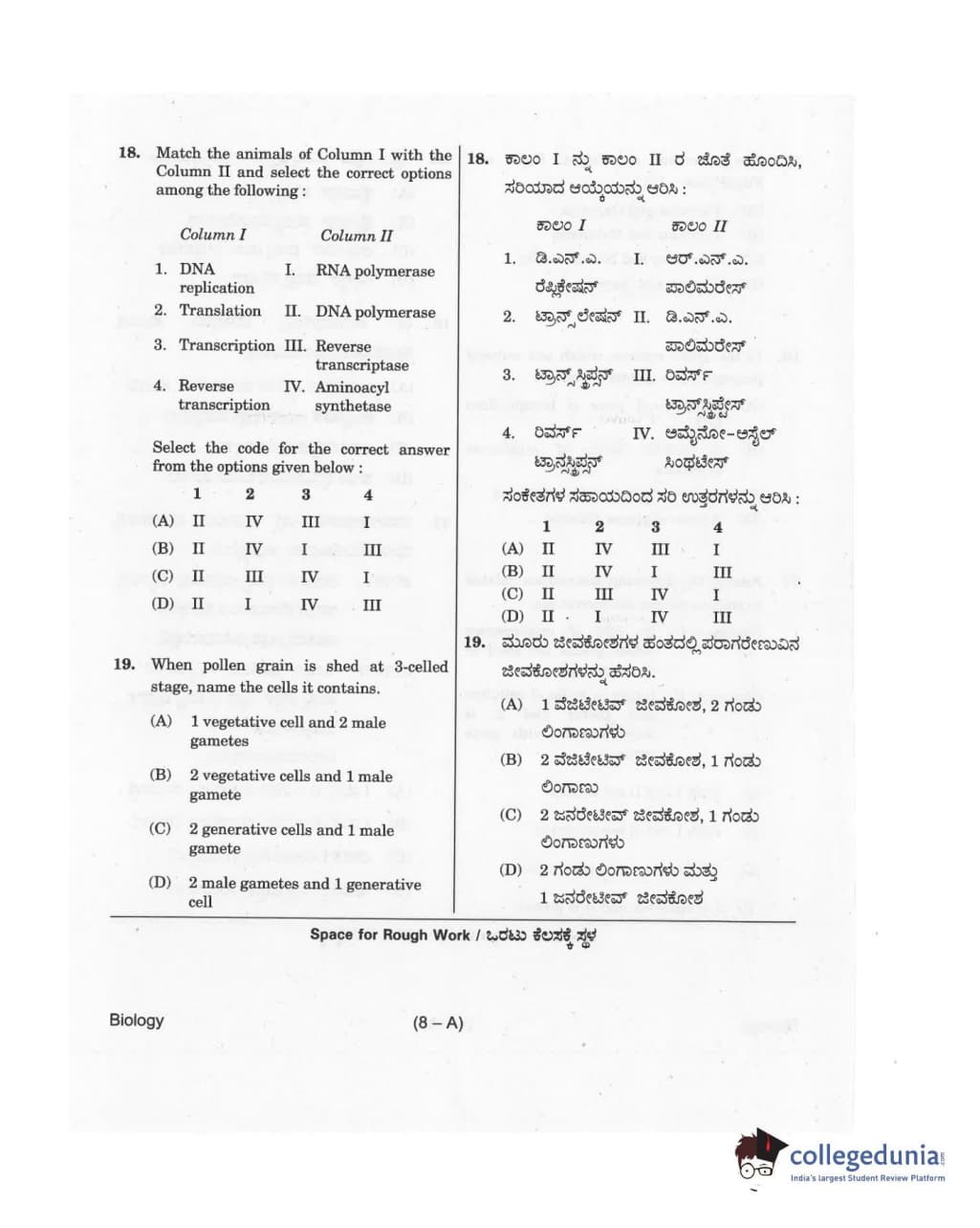 KCET 2018 Biology Question Paper with Answer Key PDF for Morning Session