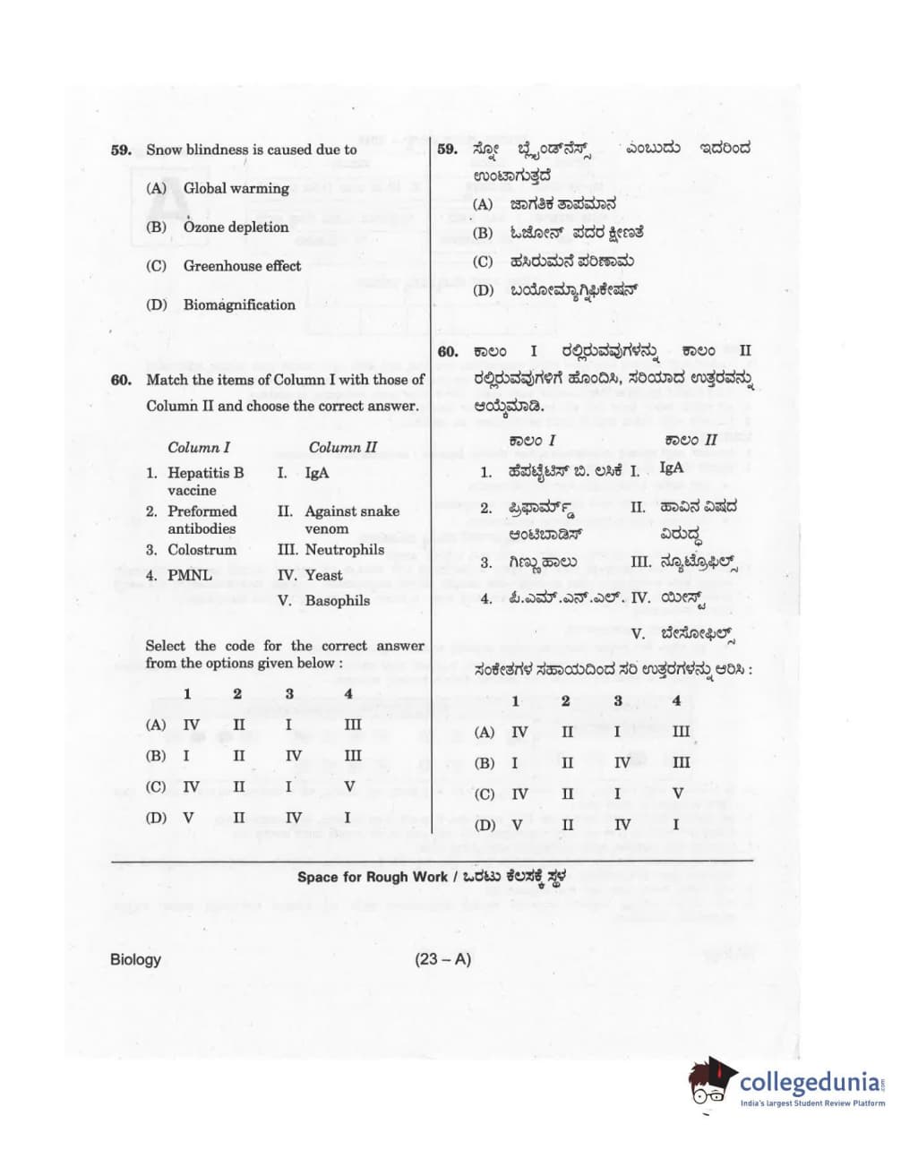 Collegedunia has provided KCET Previous Year Question paper pdf with answer key in the links given below: