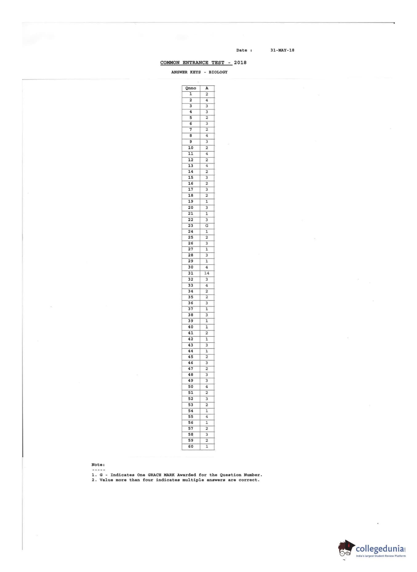 | KCET 2018 Biology Question Paper PDF | KCET 2018 Biology Answer Key PDF |