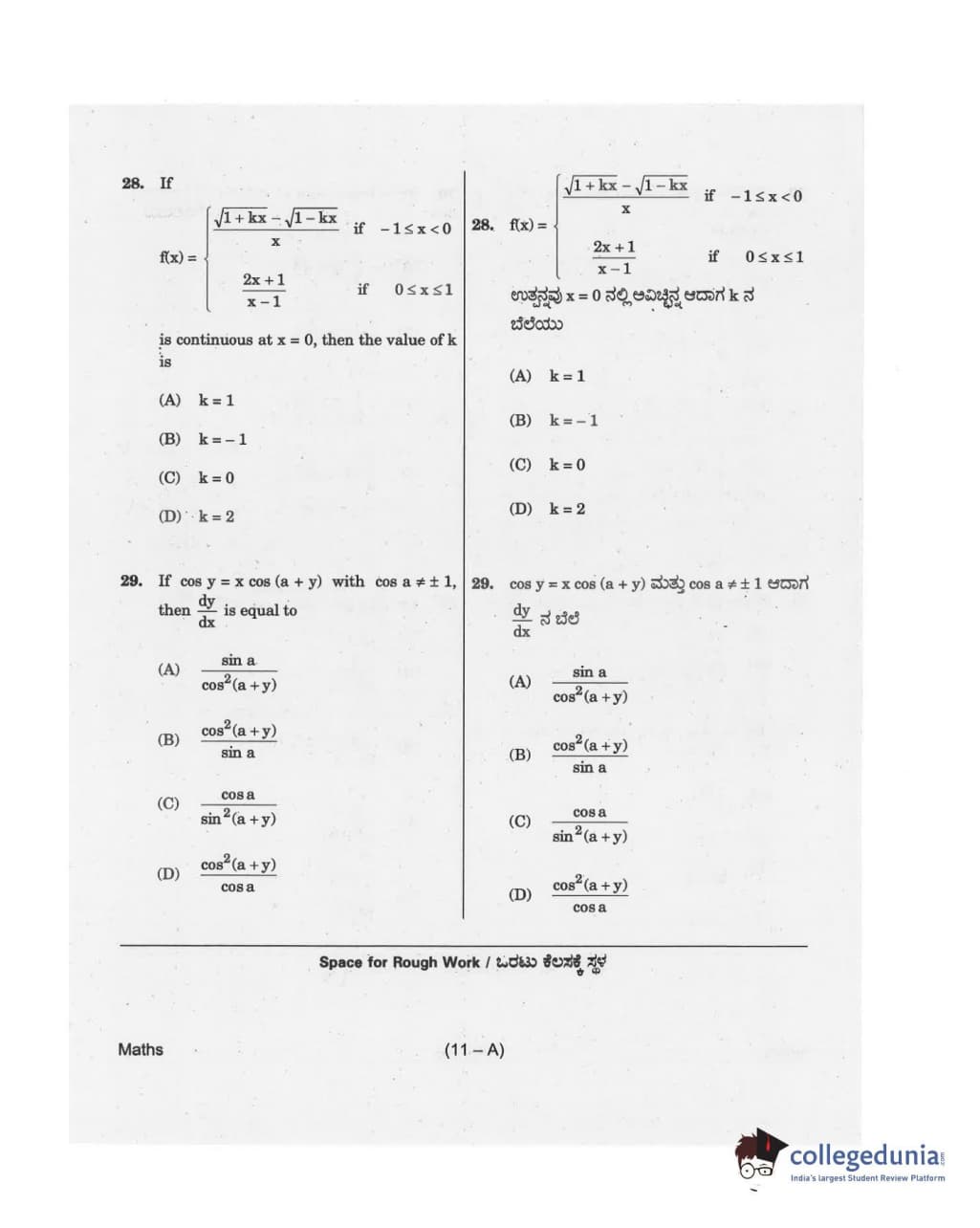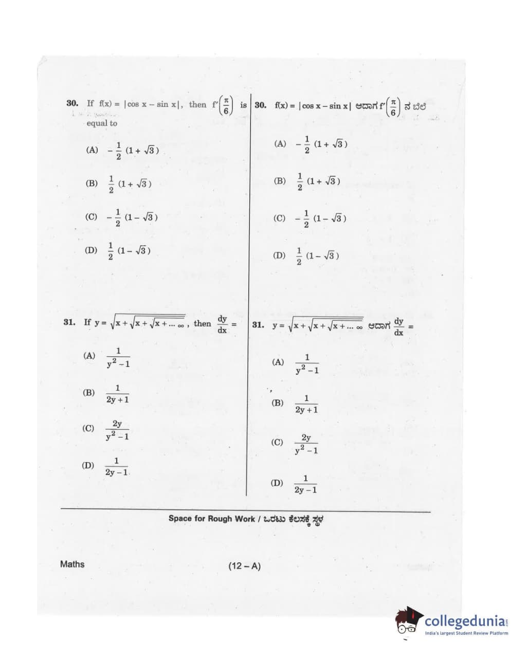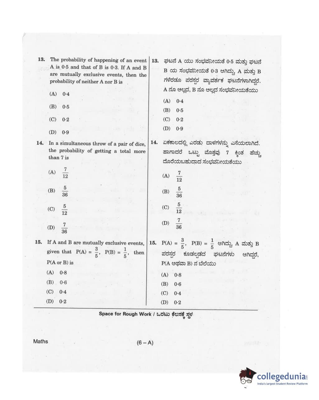 Collegedunia has provided KCET Previous Year Question paper pdf with answer key in the links given below: